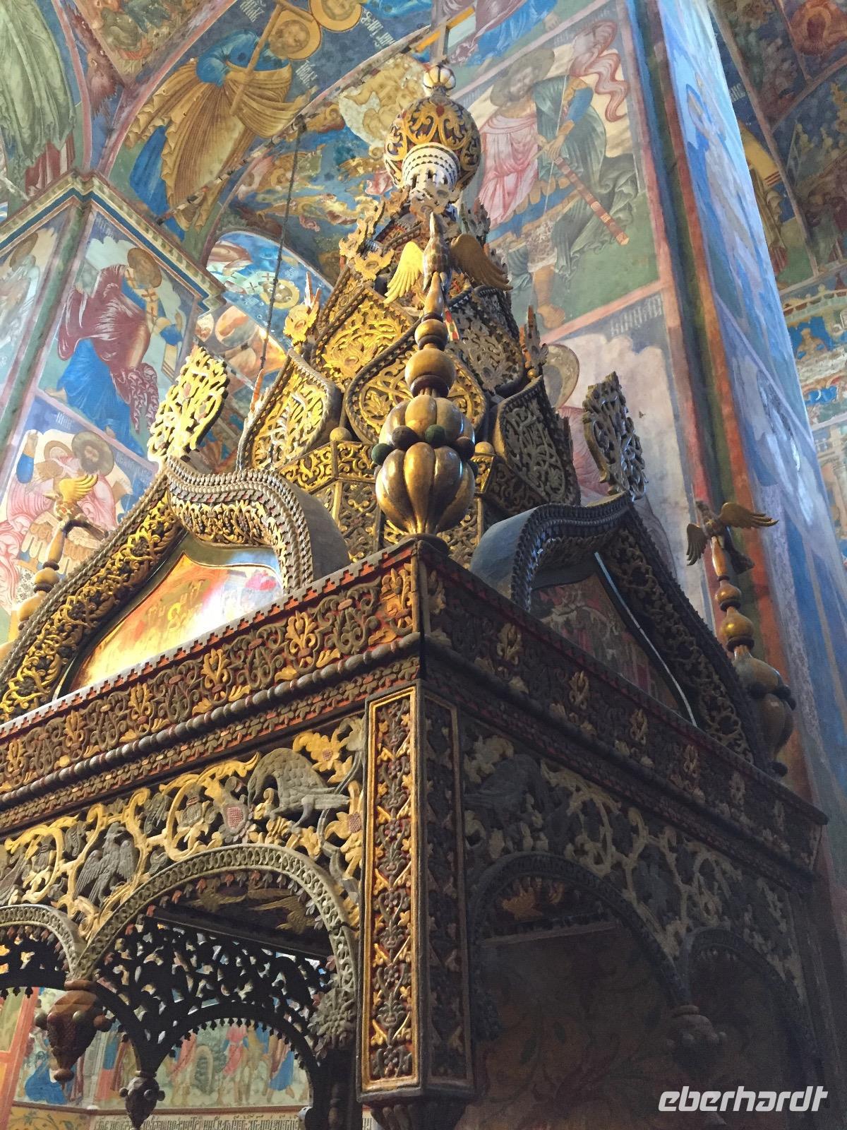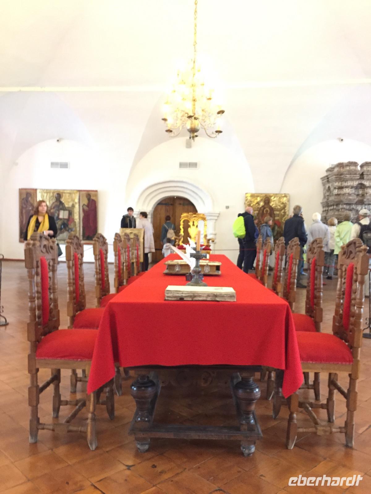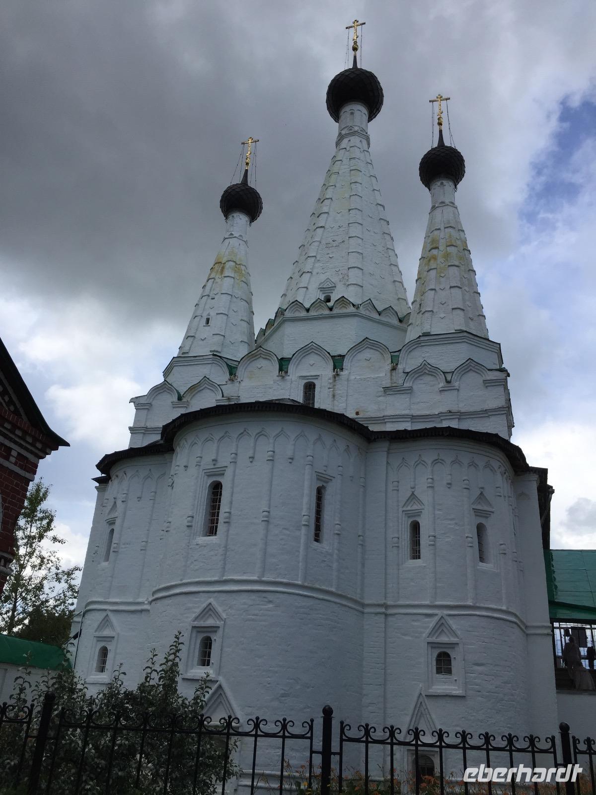 Und mit dem Alexandrow-Kreml begaben wir uns wieder auf seine Spuren, da er hier von 1564 bis 1581 residierte, schauten in die Privatkirche, das Zarenschlafzimmer als auch in den Speisesaal für wichtige Persönlichkeiten. Hier lies er seine Gäste mit bis zu 65 Gängen bewirten. Leider kamen wir nicht in den Genuss dieses gigantischen Menüs, aber es wartete ein Becher Kwass und Kuchen auf uns.Noch ein Abstecher nach Peresslawl Salesski und ein schöner Tag ging im Azimut-Hotel Forest zu Ende.