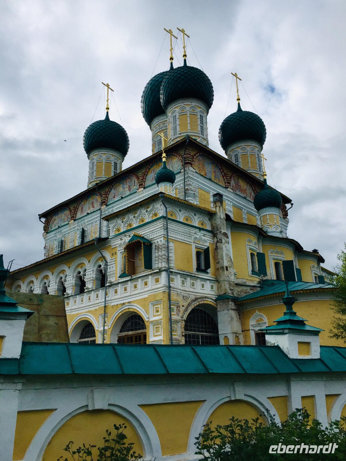 Mit unserem lokalen Guide Alexei, einem Deutschlehrer, der in seiner Freizeit interessierten Touristen wie uns teils laufend teils mit dem Bus seine Heimatstadt zeigt, entdecken wir die Hauptsehenswürdigkeiten ebenso wie die versteckten Ecken des Städtchens Jaroslawl. Diese Stadt ist definitiv eine meiner Favoriten der Reise, die zu Recht zum Unesco-Weltkulturerbe gehört. Als Gründer der Stadt gilt der Fürst Jaroslawl der Weise. Der Legende nach bezwang der Fürst im Jahr 1010 einen mächtigen Bären und gründete an dieser Stelle eine Festung. Ein auf zwei Beinen stehender Bär schmückt das Stadtwappen.