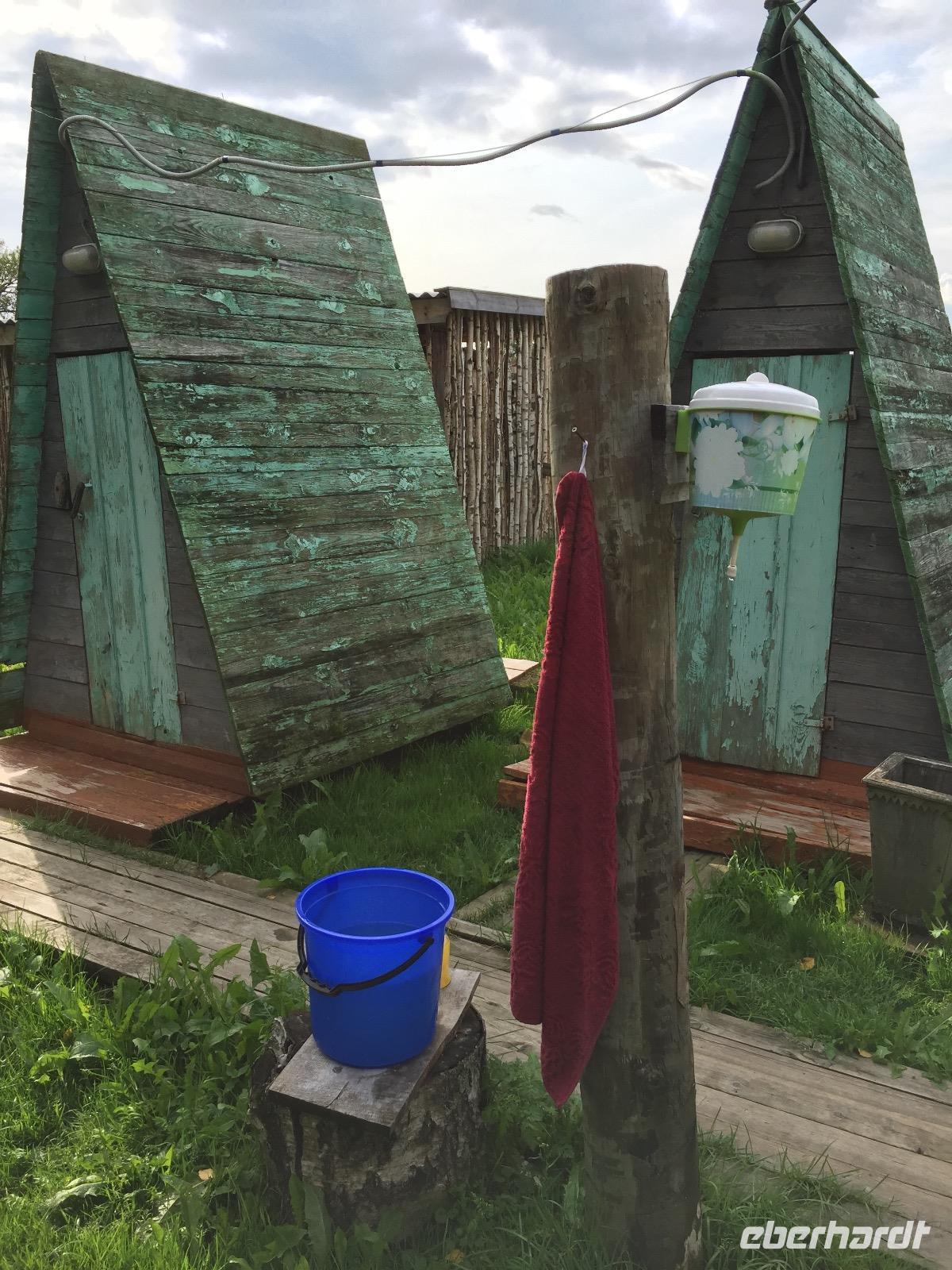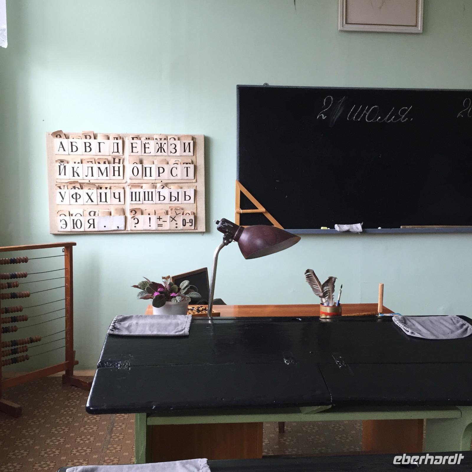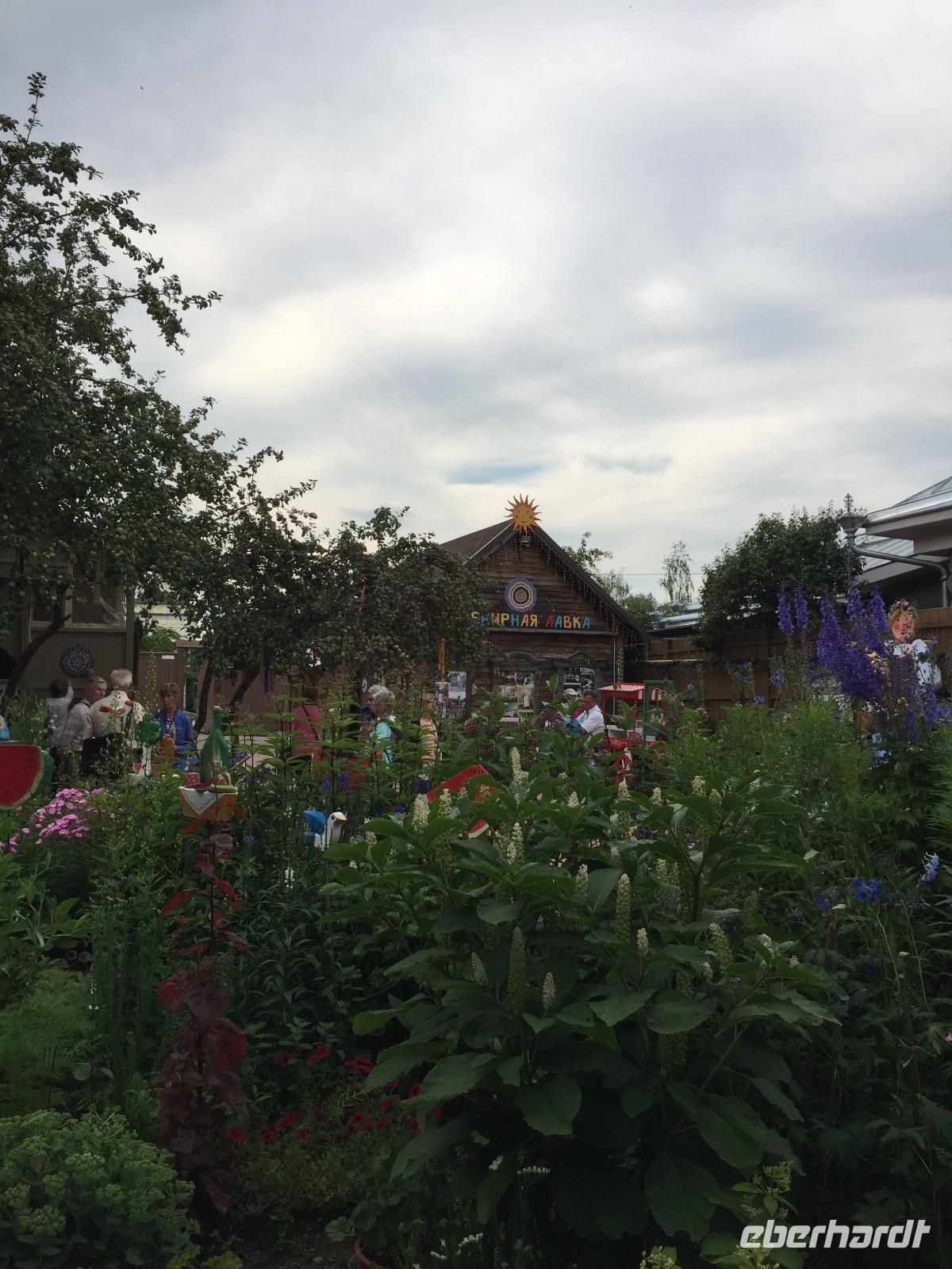 Nach dem Mittagessen schüttelten uns die russischen Strassen auf unserem Weg nach Martynowo gehörig durch. Eine Abwechslung von Reichtum und Fülle der Kirchen bietet der Besuch im ethnografischen Museum. Auch ohne des Russischen mächtig zu sein, versteht man die herzliche Begrüßung von Sergei. Die Dorfbewohner der subethnischen Gruppe der Kazakary lassen uns das Leben der einfachen Menschen auf dem Land nachempfinden, bieten uns im Ofen gegarten Kartoffelbrei mit Salz-Gurken und natürlich Tschai, den russischen Tee an. Die weit gerühmte Gastfreundschaft Russlands spürt man vor allem hier. Bei den kurzen lustigen Sketschen über Baba Maya, die Großmutter mit schlechtem Charakter, verstehen wir zwar nicht jedes Wort, jedoch ist die theatralische Gestik universell. Und vielleicht hätte meine Reiseleiter-Tätigkeit hier geendet, wenn Baba Maya mit mir als deutscher Braut einverstanden gewesen wäre. So tauchten wir ein ins bäuerliche Leben des 19. Jhds., auf du und du mit Truthahn und Gans, versunken in den Anblick der alten Holzhäuser mit den verzierten Fensterrahmen, und in die Realität zurückgewünscht nach der Benutzung der Latrinen.