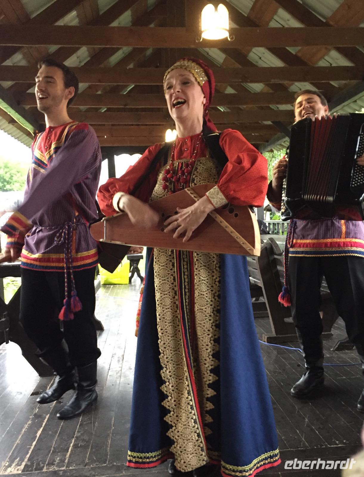 Am Abend erwartete uns neben dem Abendessen, Wodka und russische Folklore mit melancholischen Melodien, leidenschaftlichen Gesängen, hervorragend dargebotenes Spiel auf der Säge und der Zitter und etwas Tanz auch unterstützt von unseren Gästen. Und zum Abschluss sangen, klatschten und summten fast alle mit beim wohl bekanntesten aller russischen Lieder: „Kalinka".
