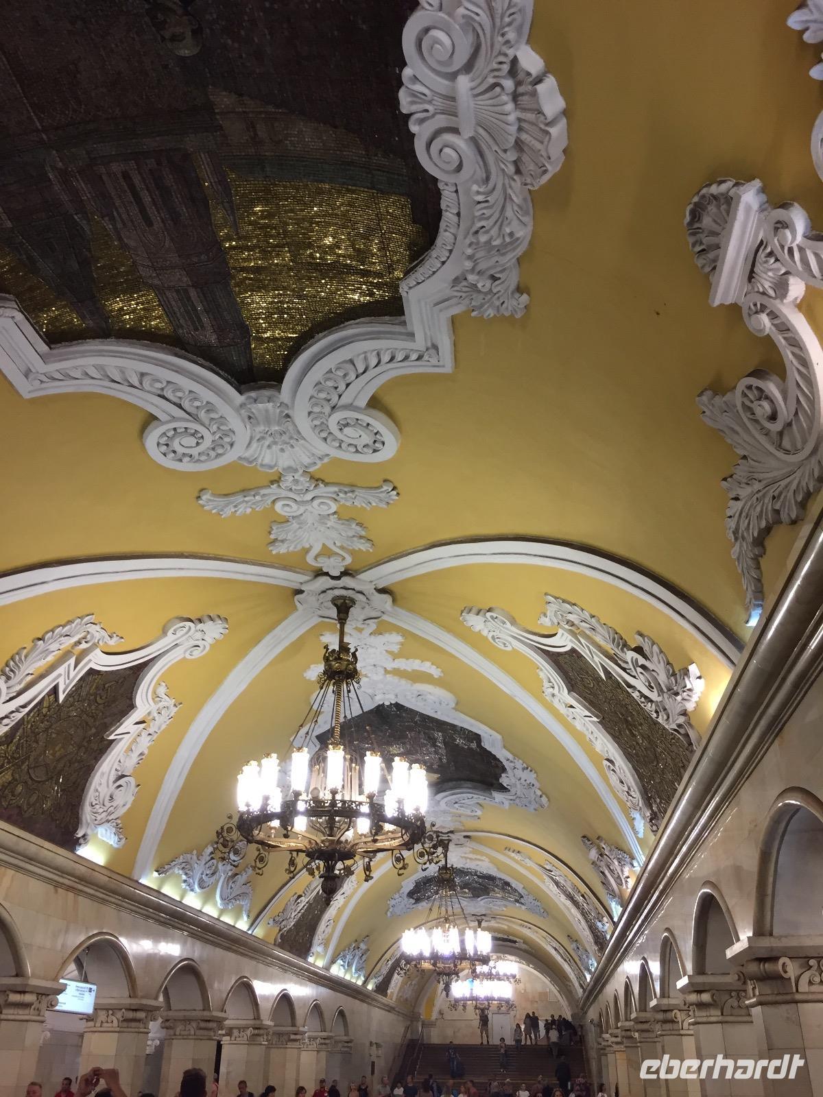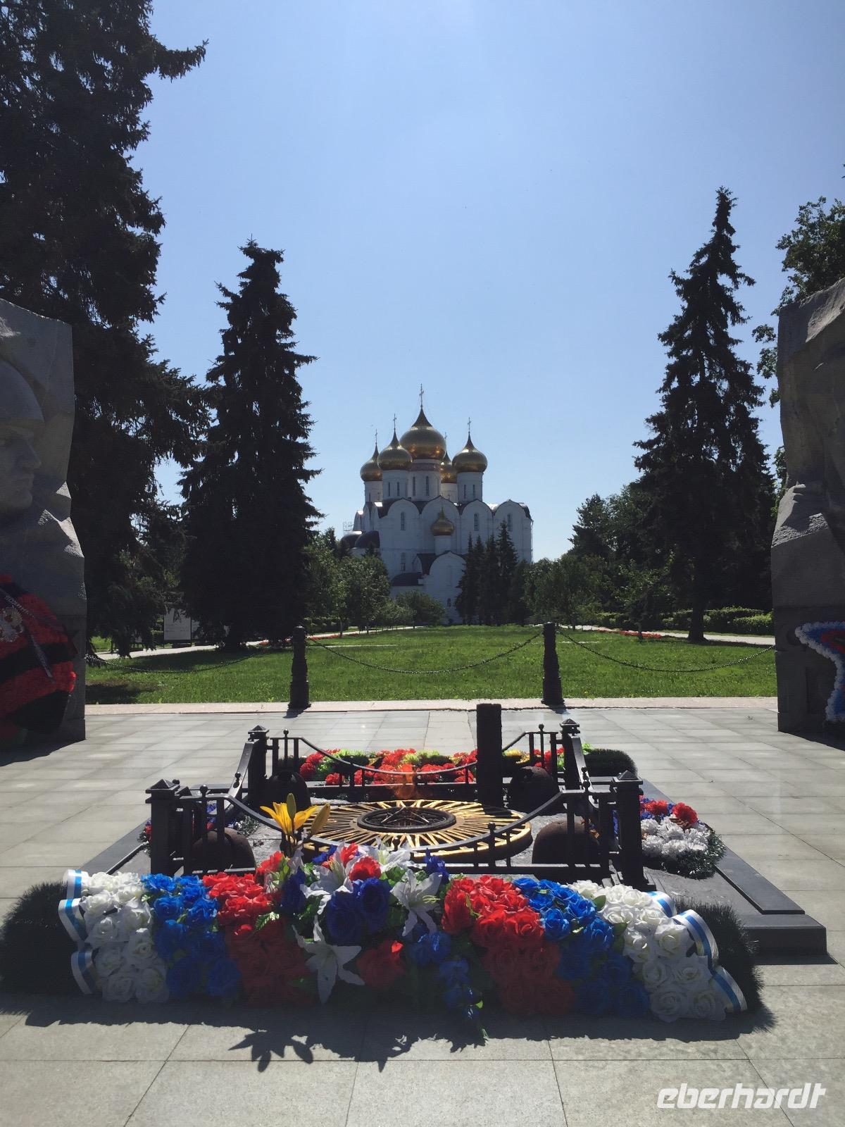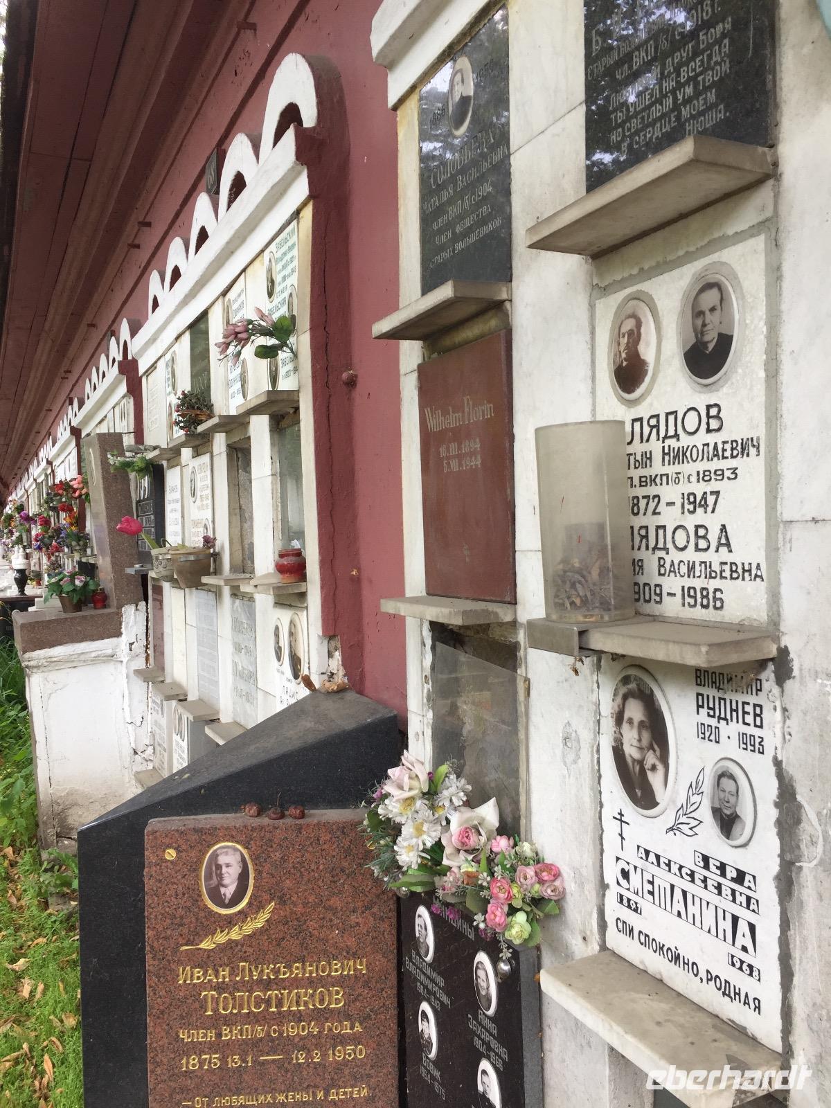 Wir fuhren durch die schöne saubere Metropole, begannen am Novopassky-Kloster aus dem 14. Jhd. Das mit etwa 40 Mönchen aktiv geführte Kloster ist eine ruhige Oase mitten in der quirligen Hauptstadt. Eng verbunden mit der Geschichte der Romanows, bildet es einen schönen Abschluss für die Reise entlang am Goldenen Ring. Geschichte, Tausende von Jahren Geschichte zogen an uns vorüber und es schloss sich der Kreis von Iwan, dem Schrecklichen bis hin zu Alexa und den Romanows, hier in der der Krypta, der Kathedrale der Transfiguration. Weiter zu den Sperlingsbergen mit einem fantastischen Ausblick auf die Skyline von Moskau, im Hintergrund die im Jahr 1755 gegründete Staatliche Universität, die Lomonossow Universität, welche neben Gorbatschow noch 10 weitere Nobelpreisträger hervorbrachte. Immer wieder über den Fluss Moskau fahrend, vorbei an Gebäuden im Zuckerbäckerstil erbaut, hin zum Novodewitschi-Ehrenfriedhof, wo wir durch eine Allee von Grabmonumenten und Skulpturen wandelten. Kein Grabstein gleicht dem anderen, jeder erzählt ein wenig aus dem Leben des Verstorbenen, z.B. der von Tatjana Samoilowa, der Schauspielerin im Film "Anna Karenina" aus dem Jahr 1967 bis hin zu Nikita Chruschtschow. Unsere Fahrt führte uns weiter vorbei am Monument Yuri Gagarins. Auch hier schließt sich der Kreis vom ersten Mann, der die Welt umrundete, zur ersten Frau im All, Valentina Tereschkowa, die in der Nähe von Tutaew geboren wurde. Und immer wieder verschmilzt hier alte Geschichte mit neuer Historie, mit Wissenschaft und Technik.