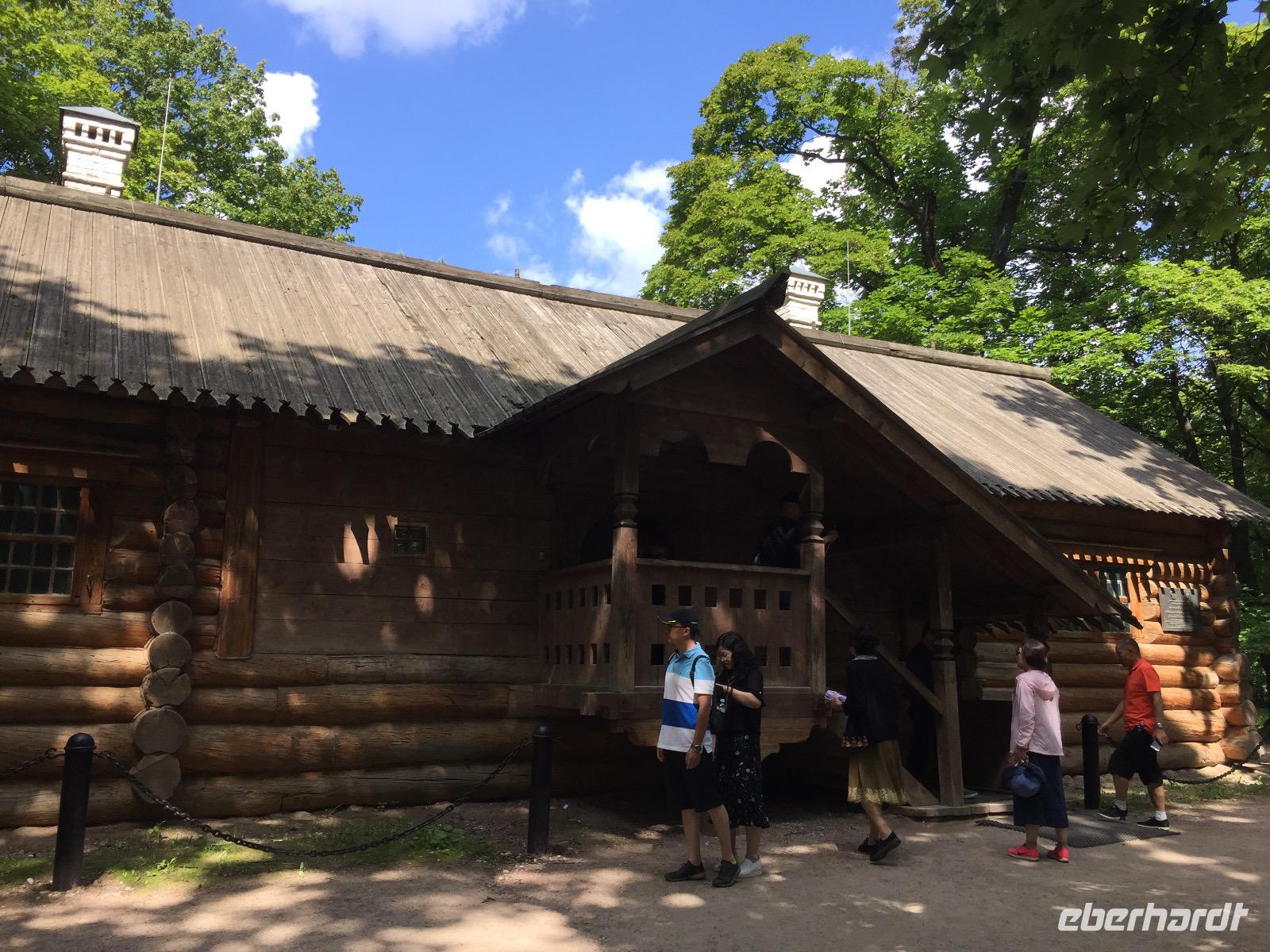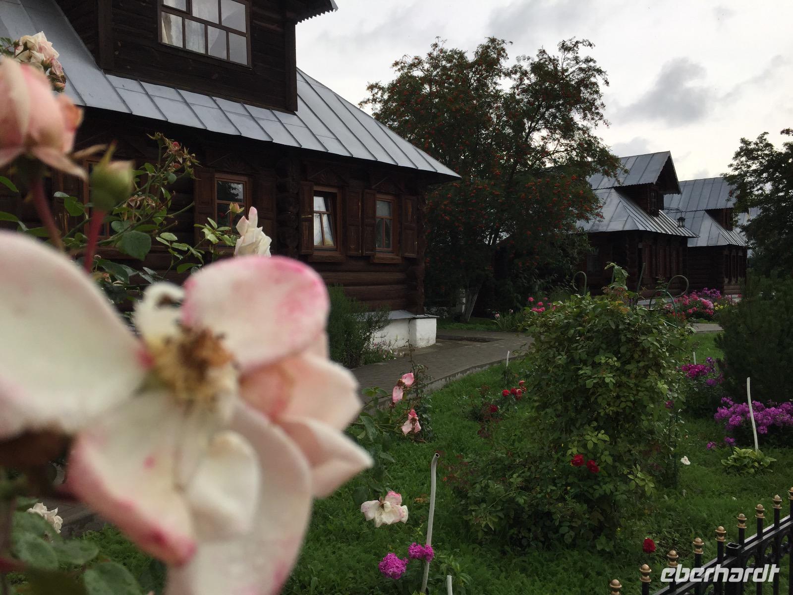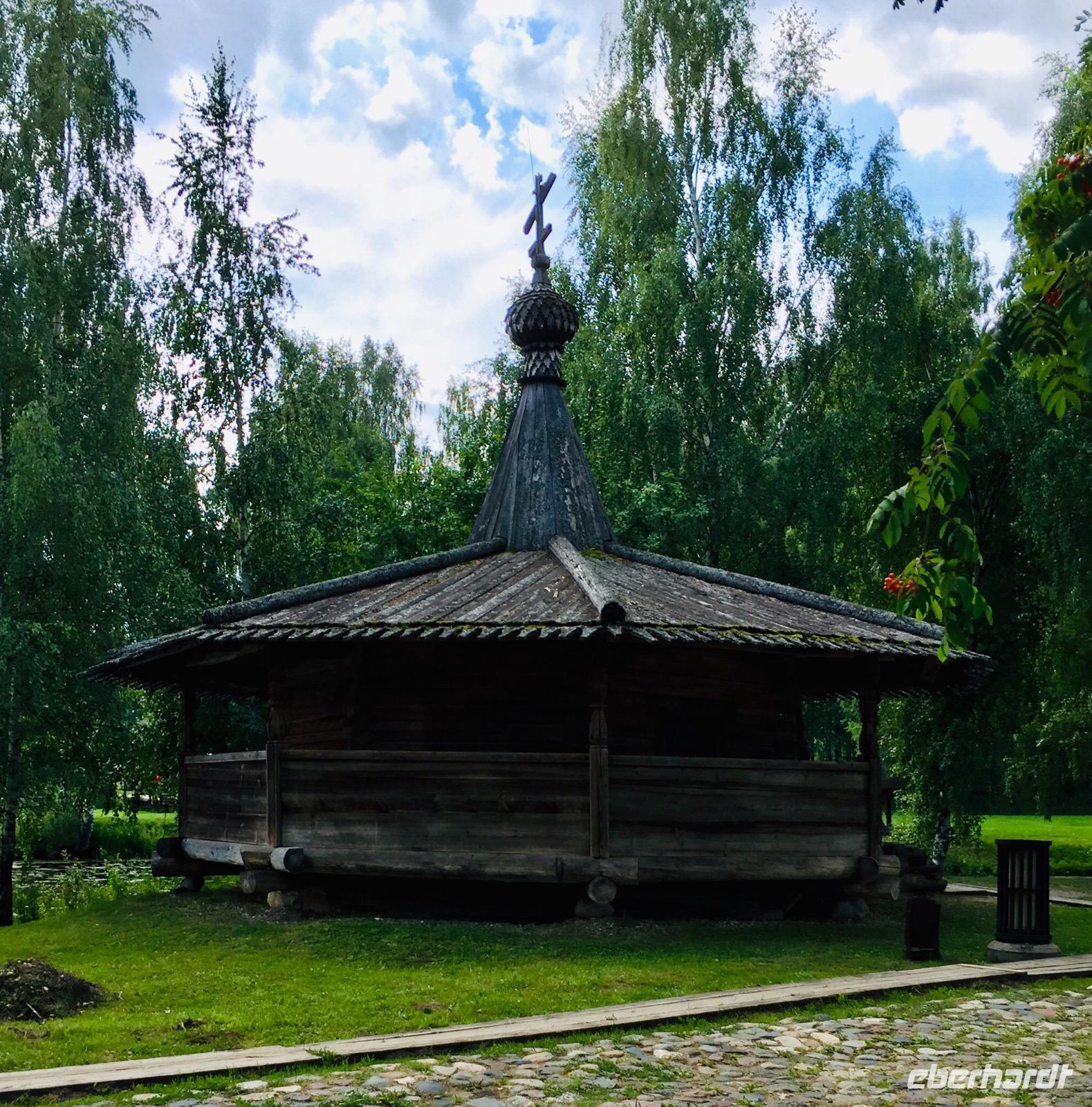 Gleich nebenan wartete schon die nächste Attraktion, die Kostromskaja Sloboda, das 1960 eröffnete Freilichtmuseum für Holzbaukunst. Unser Fremdenführer bedauerte es sehr, das wir so wenig Zeit mitbrachten. Gern hätte er uns mehr über die wunderbaren Holzbauten von armen und reichen Bauern- und Kaufmannsfamilien erzählt.