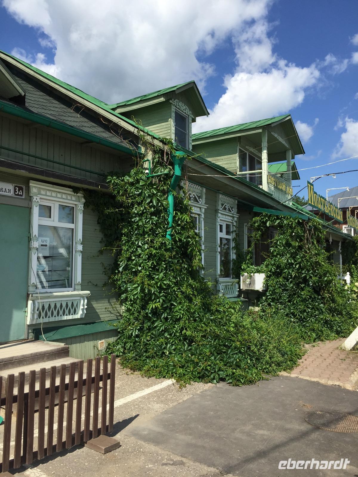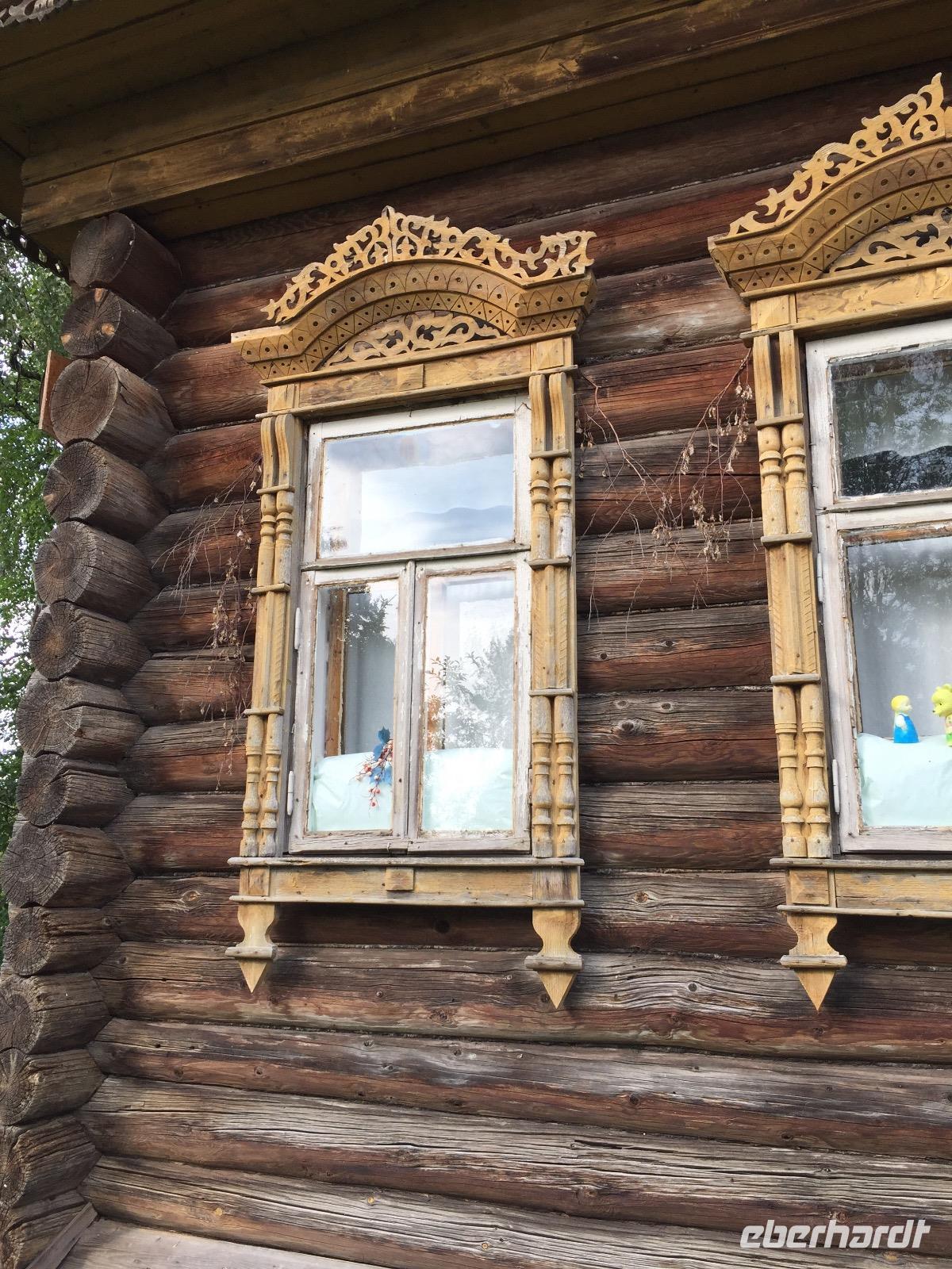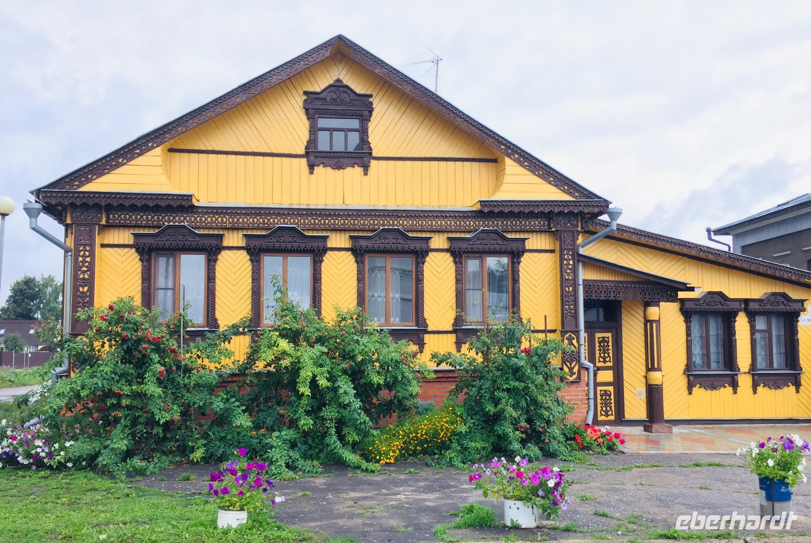 Gleich nebenan wartete schon die nächste Attraktion, die Kostromskaja Sloboda, das 1960 eröffnete Freilichtmuseum für Holzbaukunst. Unser Fremdenführer bedauerte es sehr, das wir so wenig Zeit mitbrachten. Gern hätte er uns mehr über die wunderbaren Holzbauten von armen und reichen Bauern- und Kaufmannsfamilien erzählt.