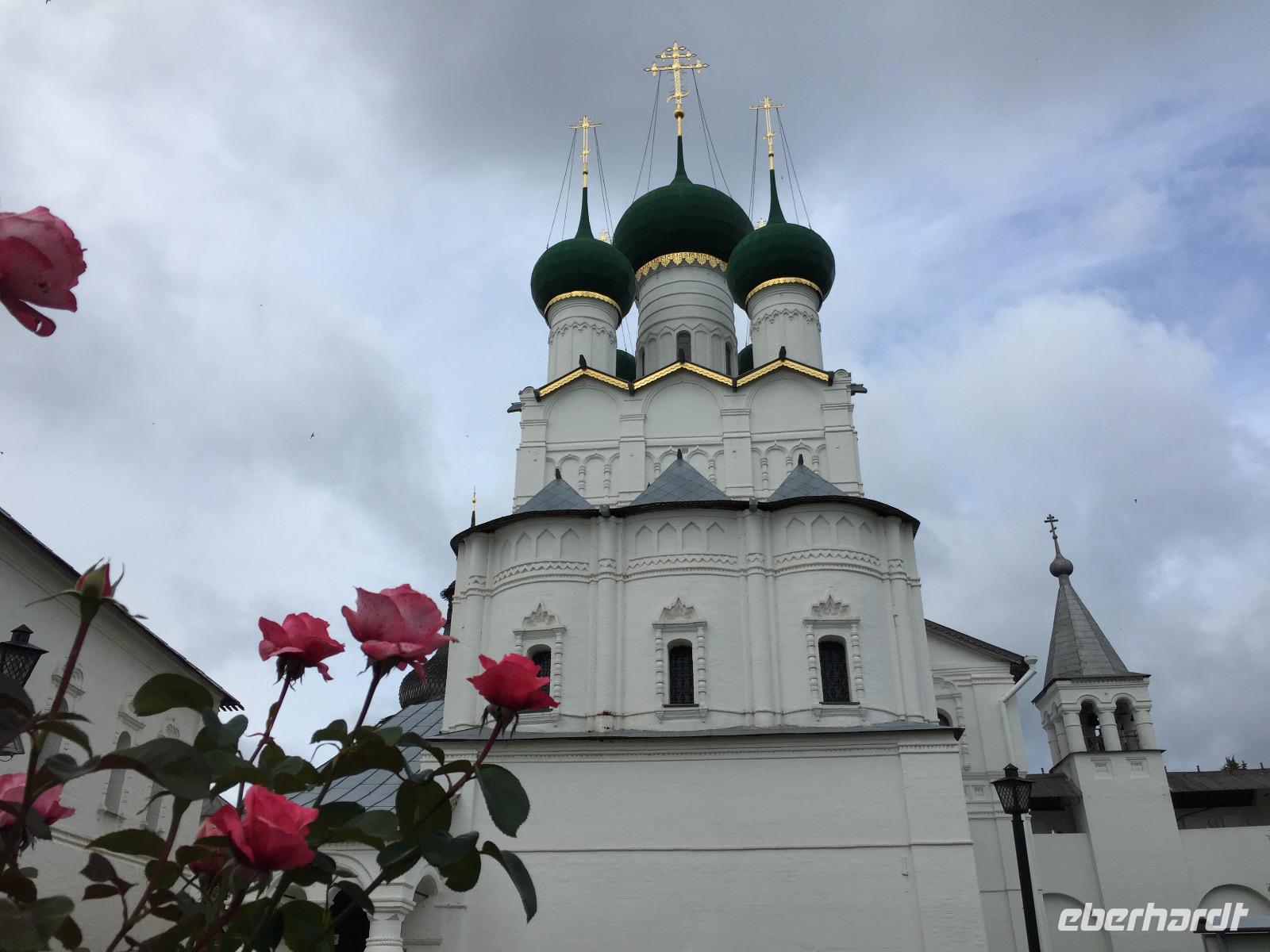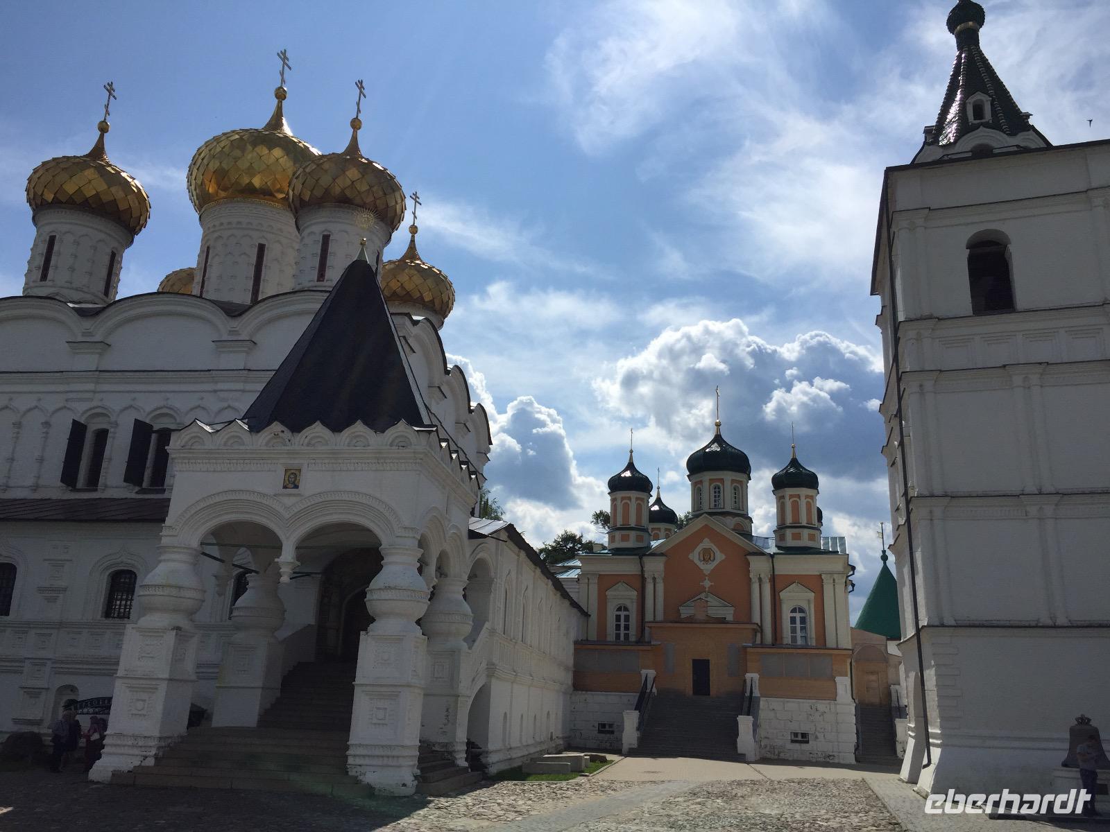 Es erwartet uns ein Besuch des malerisch an der Mündung der Kostroma in die Wolga gelegenen Ipatios-Klosters. Die Frauen leihen sich Kopftücher und Wickelröcke, ohne die "Frau" keinen Eintritt erhält, um im Kloster, welches von Boris Godunows gegründet wurde, weiter den Spuren der Romanows folgen zu können, denen dies eine Zeitlang als Unterkunft diente.