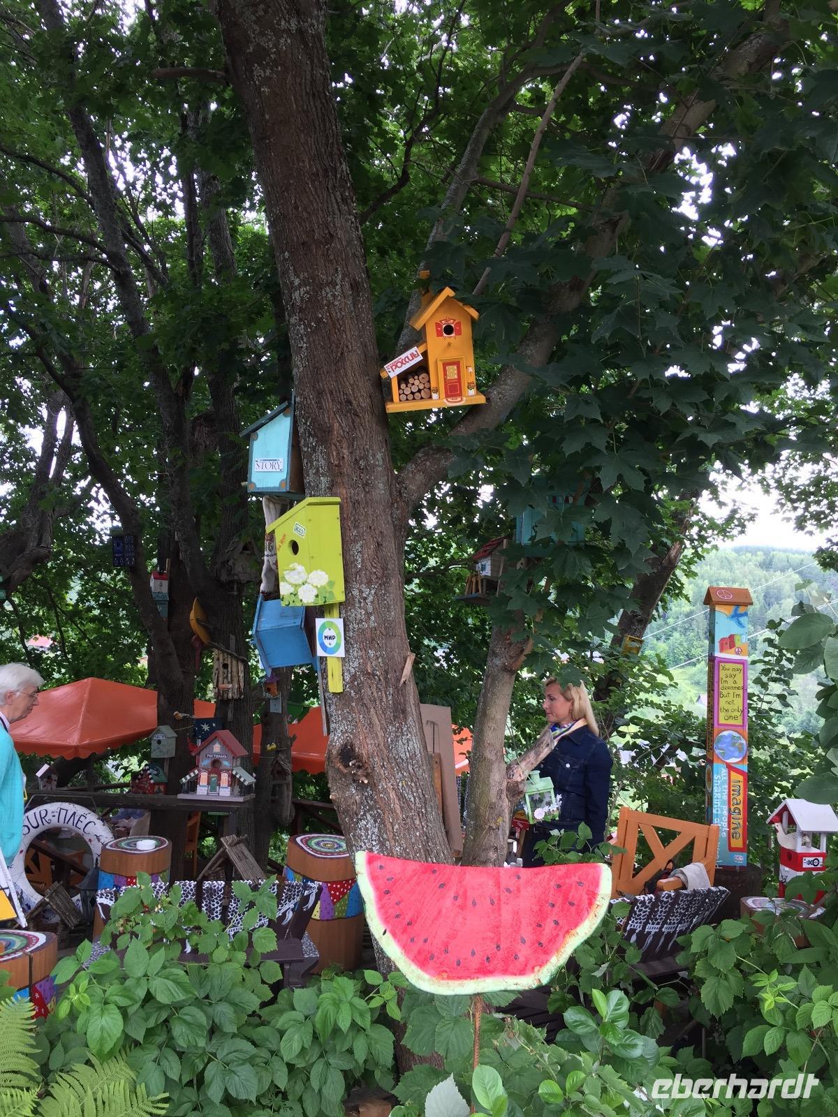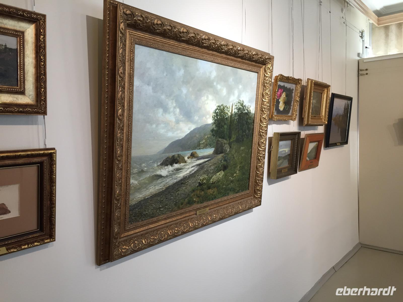 Ein Stück im Bus fahrend, über das Gehörte sinnierend, stiegen wir in Pljos aus und fielen in eine Traumwelt hinein -in einen verwunschenen Garten mit kleinen Details, die immer wieder zum Fotografieren einluden - das Restaurant "Chastny Visit" für unsere Teezeremonie mit russischem Gebäck und Waldbeerenmarmelade. Wer kann da schon widerstehen? Ein kleiner Spaziergang durch die "Russiche Schweiz", wie Pljos auch genannt wird, lässt uns daran denken, einmal für einen Woche hierher zurück zu kehren. Vielleicht ergänge es uns dann wie dem impressionistischem Maler Isaak Lewitan, der sich zu Recht in dieses Stückchen Erde verliebte. Das in diesem kleinen Örtchen entstandene Bild "Abendstimmung im goldenen Pljos" bewundern wir genauso wie früher Lewitans Freund, der Schriftsteller Anton Tschechow.