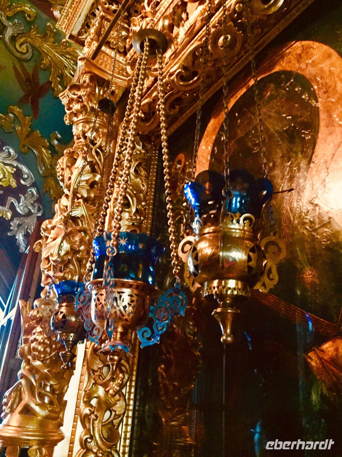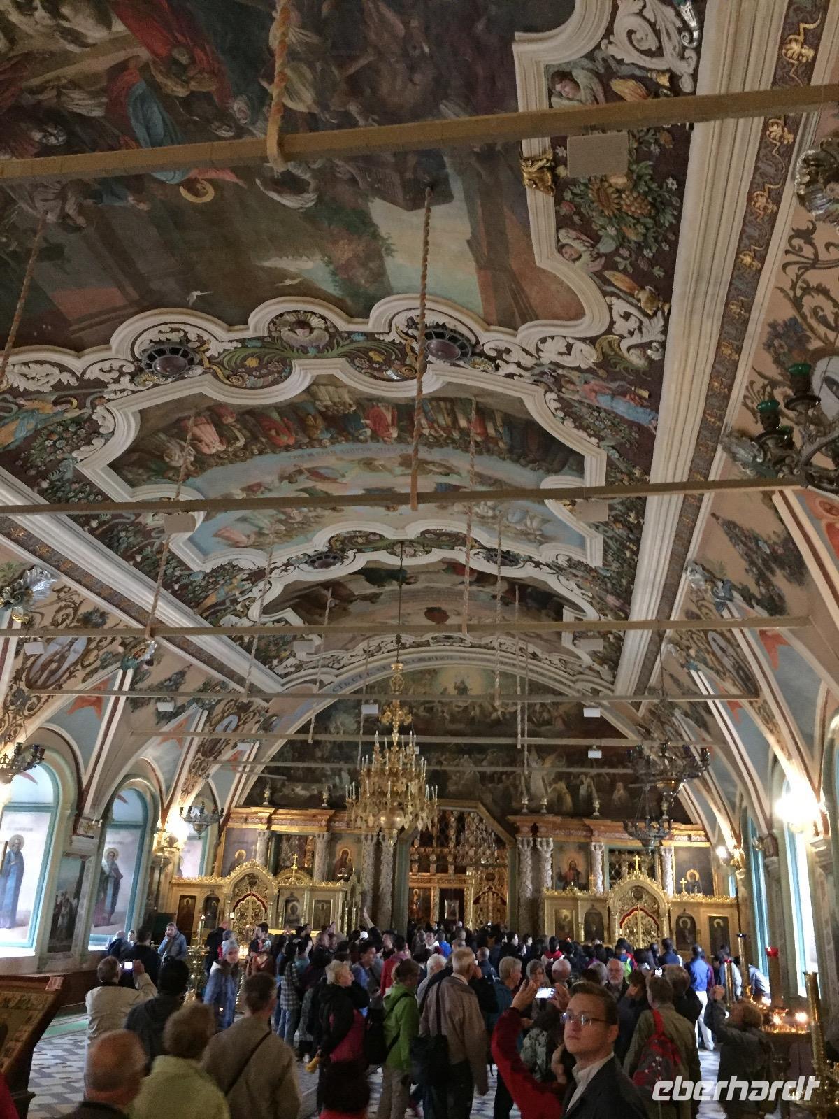 Die goldenen Kuppeln, die Pracht und Ikonen-Malerei sind fast nicht zu überbieten. Nun, sagen wir bis zu diesem Moment, denn Moskau wartet ja noch auf uns. Aber nicht nur geistige Nahrung braucht der Mensch, deshalb stärkten wir uns am Buffet einer Supermarktkette. Die anschließende Fahrt nach Moskau nutzten viele Gäste zu einem Nachmittags Schläfchen. Zuhören und das Verarbeiten so vieler Eindrücke ist anstrengend.