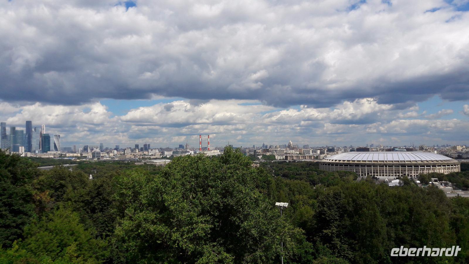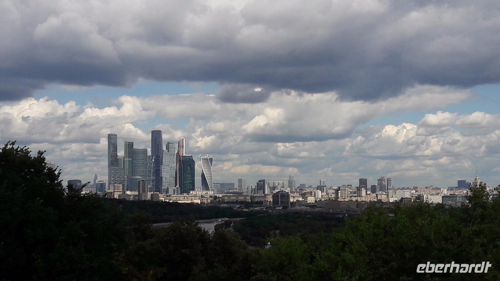 Von hier brachte uns der Bus zu den Spatzenbergen. Von der Höhe der Lomonosow-Universität konnten wir eine schöne Aussicht auf Moskau genießen.