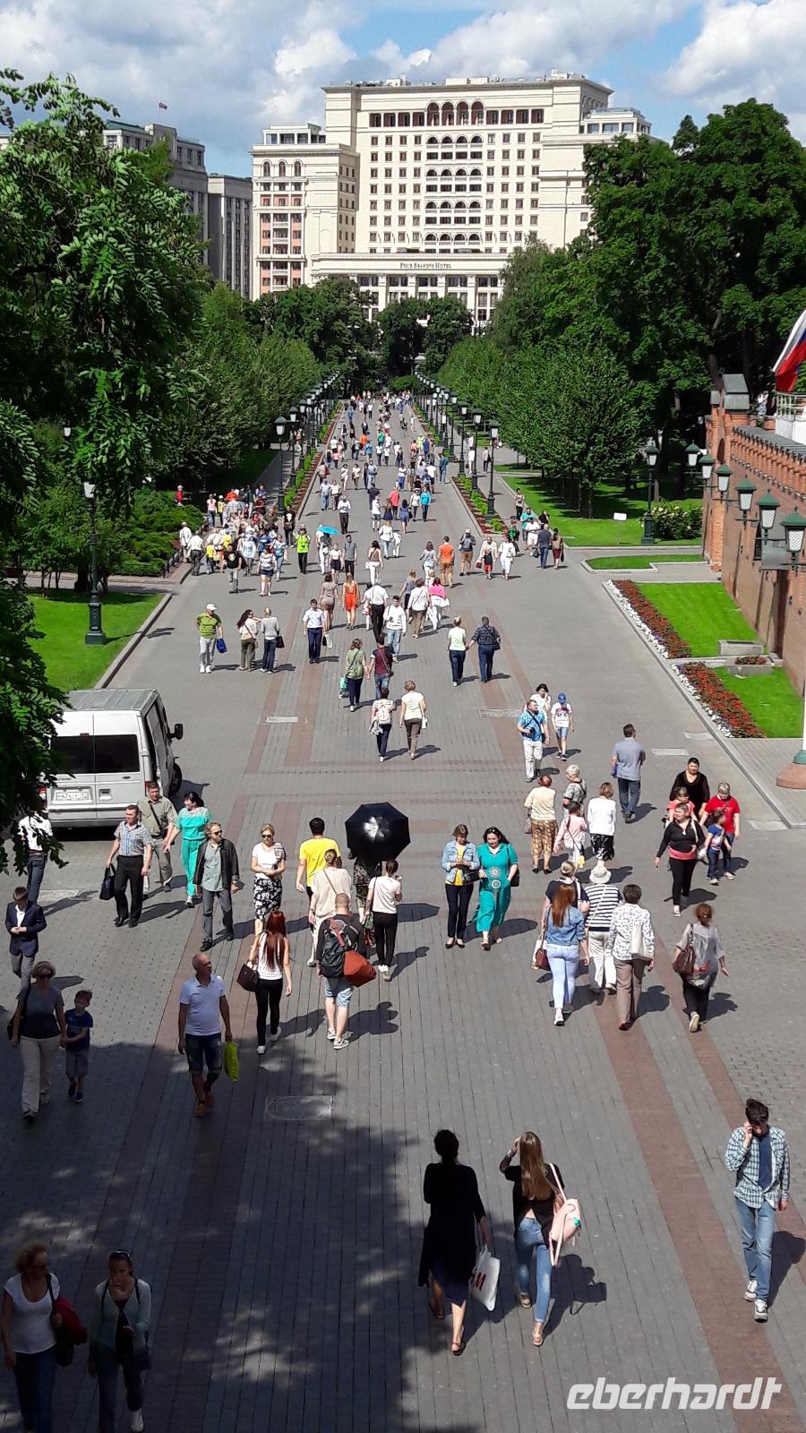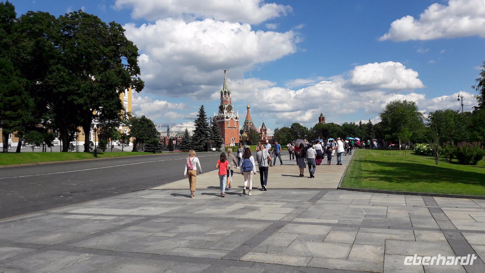 Ein riesiger, offener Platz, gepflegtes, kunstvoll eingelegtes Pflaster, rundum die herrlichsten Bauten, geschichtsträchtige Kirchen, jede Menge Türme mit Zwiebelkuppeln, die berühmte Basilius-Kathedrale.