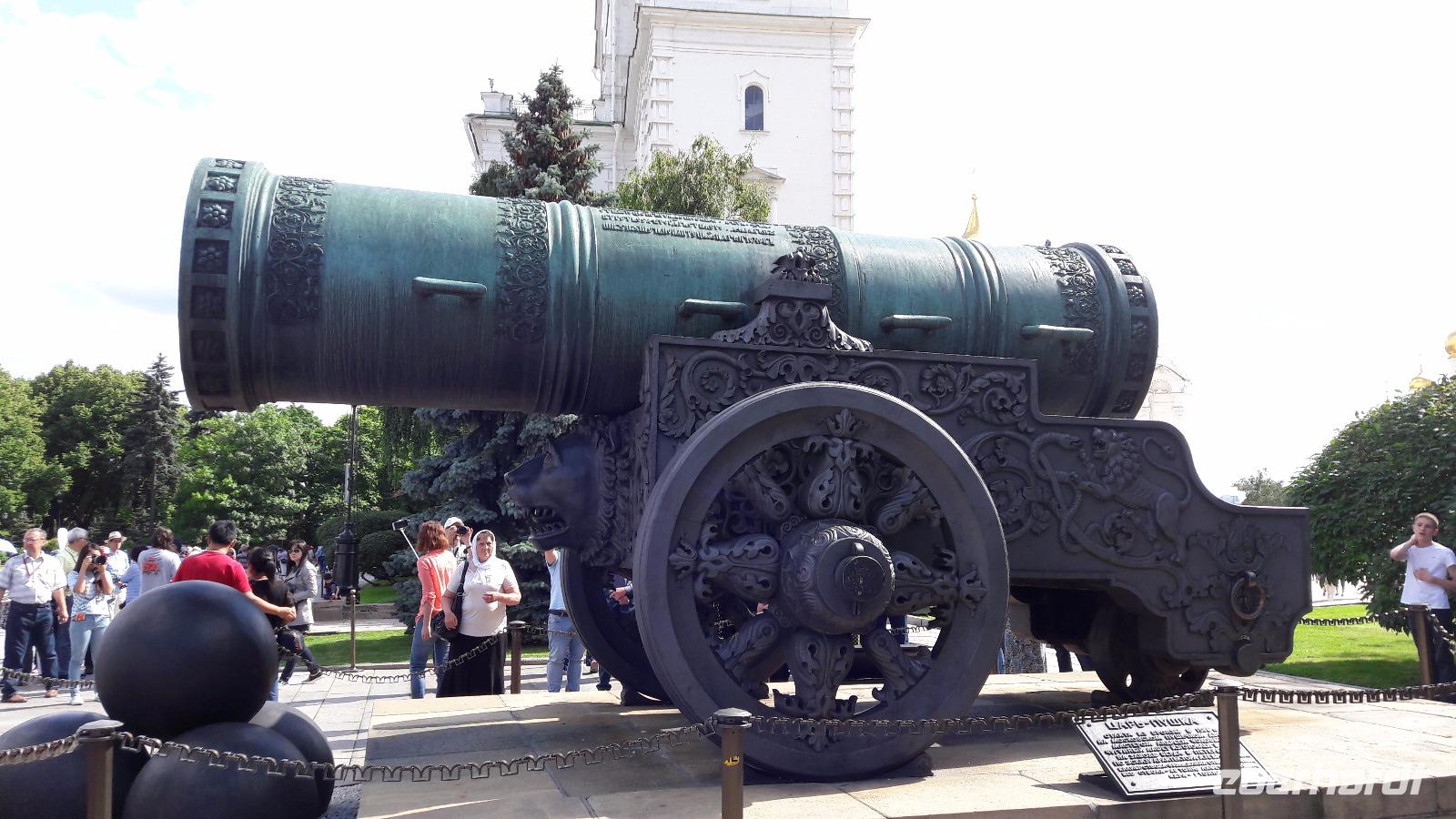 Vorbei am Kremlpalast kommen wir zur Zarenkanone, das wohl größte Geschoss seiner Art. In der Nähe, in einer kleinen Parkanlage machen wir eine Rast und gönnen uns das berühmte Moskauer Eis Wir sitzen eine Weile im Schatten, essen Eis und genießen das schöne Panorama. Natürlich - ein Gruppenfoto im Kreml darf nicht fehlen.