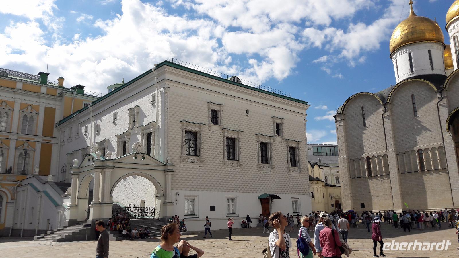 Hinter der Mauer verbergen sich die prächtigsten Wunderwerke russischer Baukunst. Kirchen und Kathedralen mit langer Geschichte, dazu überwältigende Paläste und Gemächer, die vom Prunk der Zarenzeit zeugen. Architektonische Meisterleistungen von eindrücklicher Schönheit,