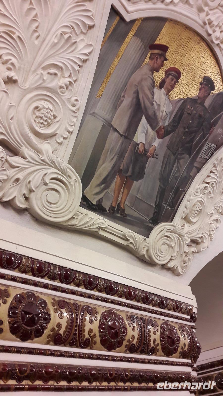 Wir fuhren zunächst auf der Ringbahnstrecke und staunten über die Pracht der Stationen Kiewskaja, Bielorusskaja, Komsomolskaja und auf der blauen Linie über die heroischen Figuren am Platz der Revolution.