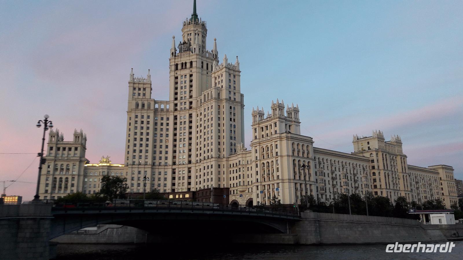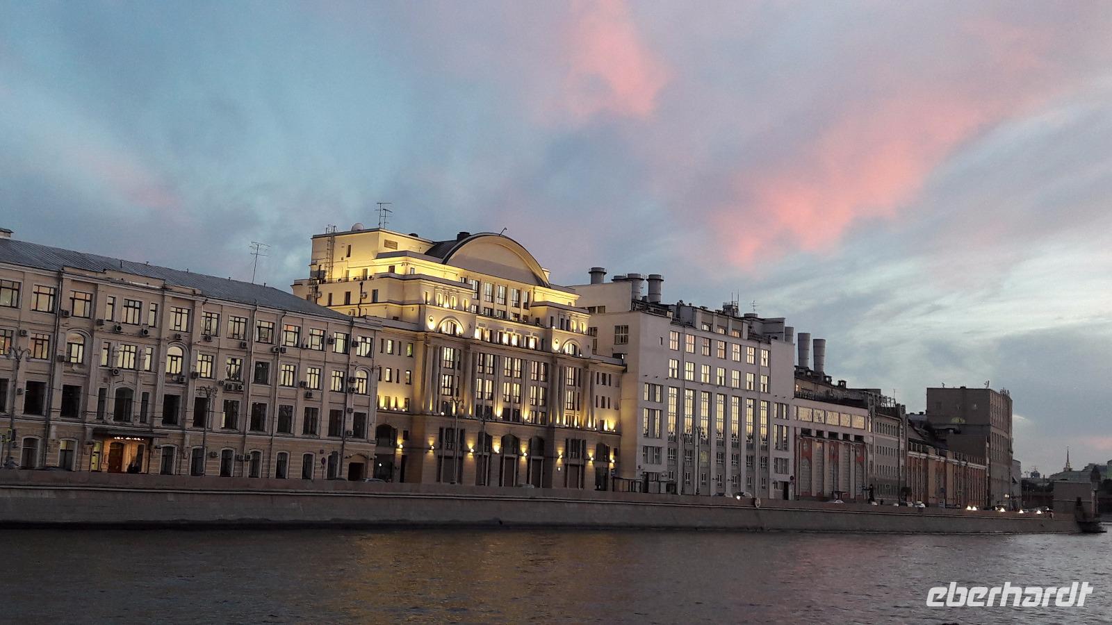 Kurz vorm Sonnenuntergang gingen wir zur Anlegestelle in der Nähe des Hotels und unternahmen eine sehr schöne Schifffahrt auf dem Moskwa-Fluss. Ein einzigartiges Panorama von Moskau vom Wasser mit wunderschön beleuchteten Kirchen und Gebäuden bleibt in unseren Erinnerungen.