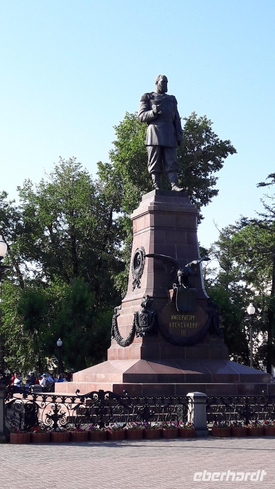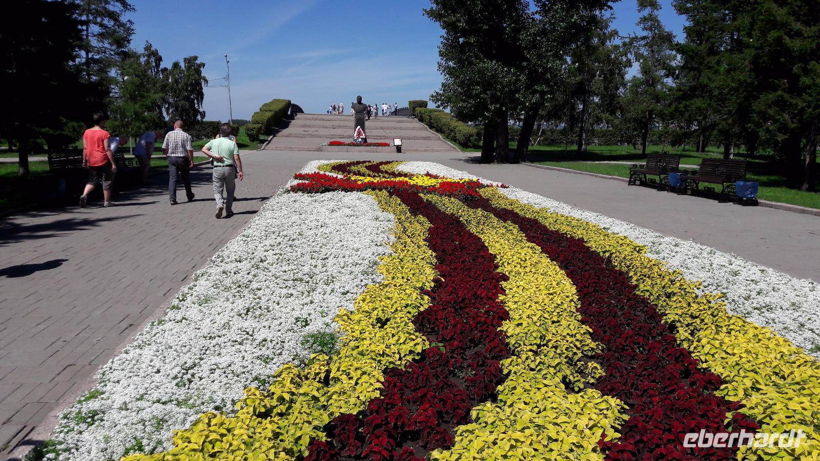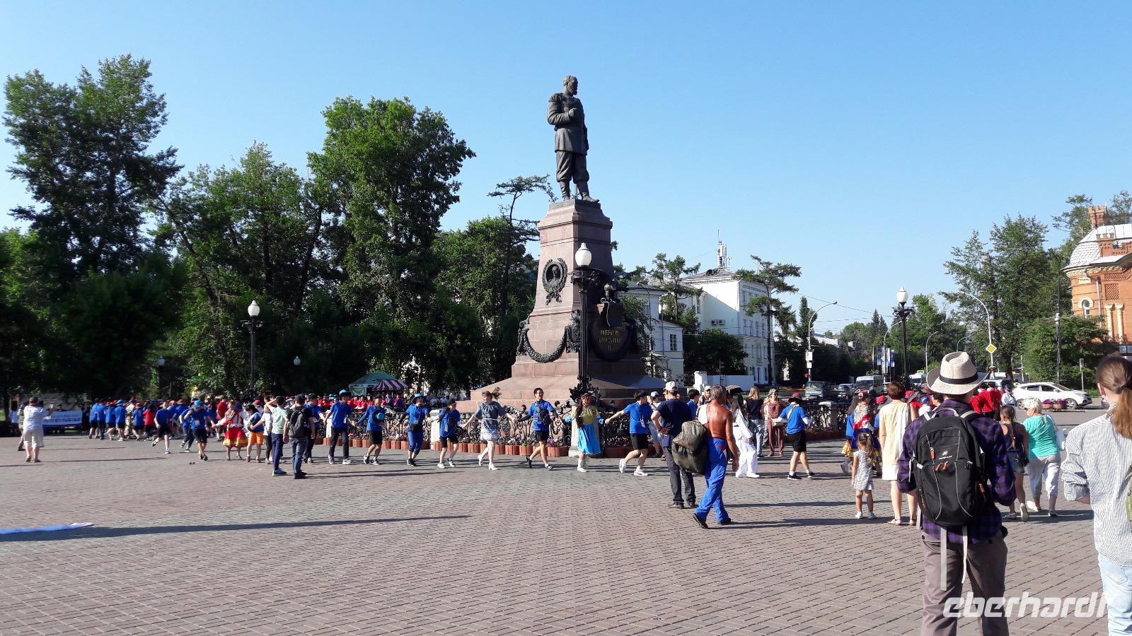 Danach fuhren wir zum Kirowplatz mit der Ewigen Flamme. Irkutsk ist eine von 21 Städten in Russland, wo das Ewige Feuer brennt. Es erinnert an die Gefallenen des Zweiten Weltkrieges. Es wurde zum 30. Jubiläum des Sieges am 9 Mai 1975 entfacht. Anschließend machten wir einen Bummel zur Angara. Hier hat sich eine Metropole entwickelt, die nicht zu Unrecht das Paris des Ostens genannt wird.