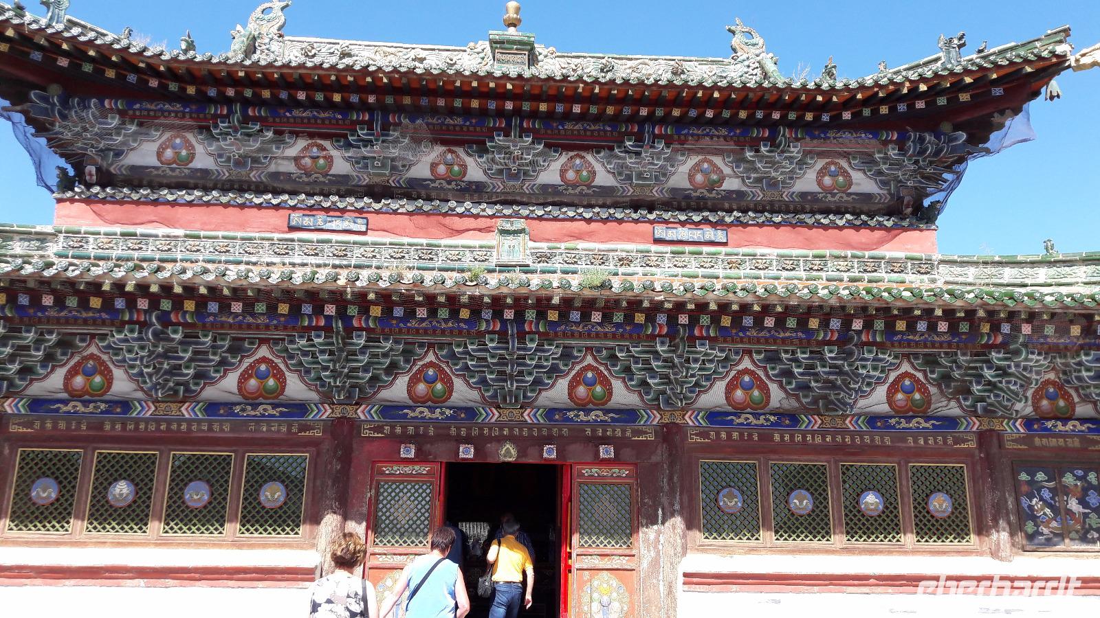 Erstes was wir sehen bei der Anfahrt zum Klostergelände sind hunderte von Tauben am Vorplatz. Das Füttern der heiligen Tauben ist für die Mongolen ein festes Ritual bei einem Klosterbesuch. Es soll Glück bringen und den verstorbenen Angehörigen wünscht man damit alles Gute für die weiteren Leben im Himmel.