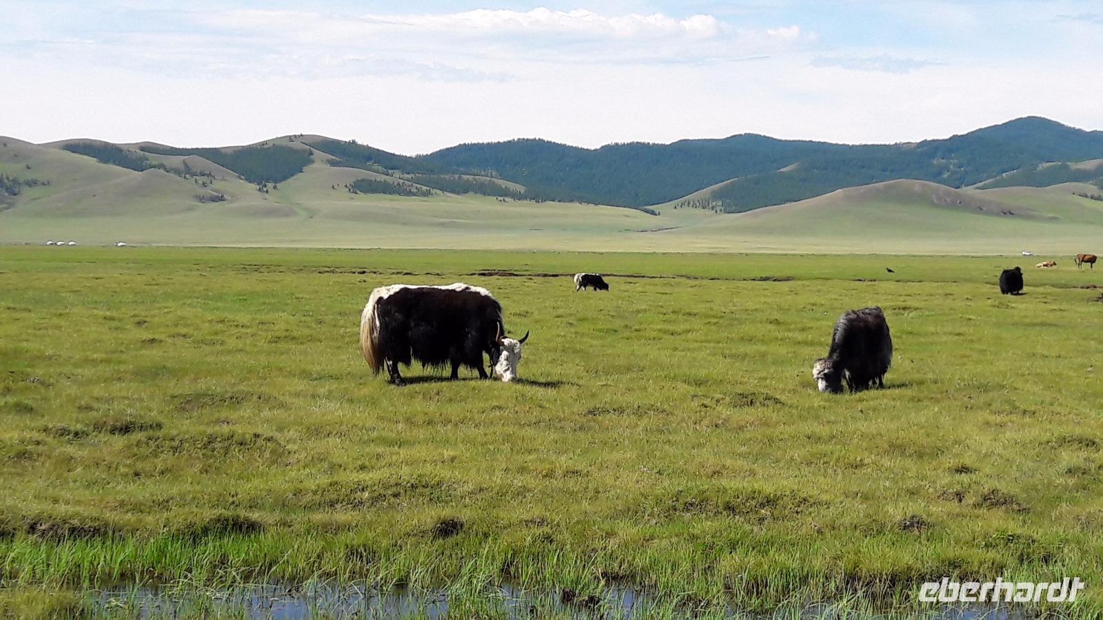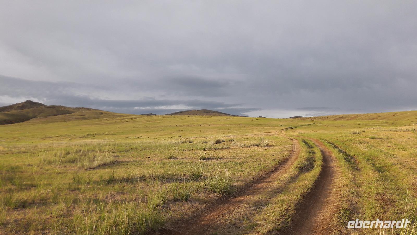 Südlich der Hauptstadt geht die Reise in den ersten Stunden durch die typische mongolische Landschaft mit ihren kargen Grashügeln, durch abwechslungsreiche Bergsteppen, bei weidenden Vieherden und Nomadenzelten vorbei. Da die Landschaft leicht hügelig ist, schleppt sich der Zug nur langsam in Kurven dahin. Mehrere weitläufige Kurven bieten die Möglichkeiten, den Zug in seiner ganzen Länge zu fotografieren.