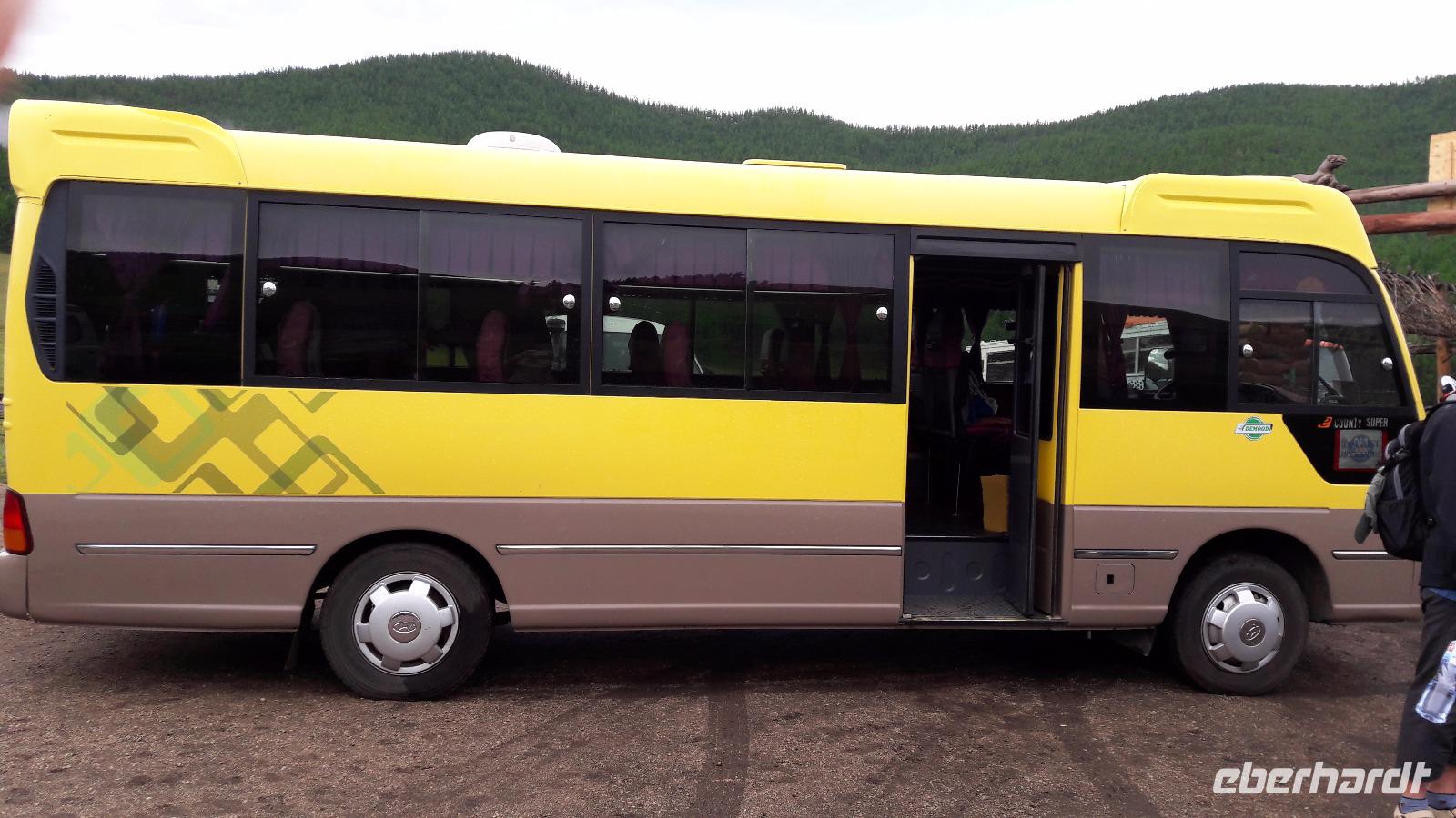 Um 6:20 Uhr holten uns Mandakh und die Managerin der mongolischen Agentur mit dem Bus ab.