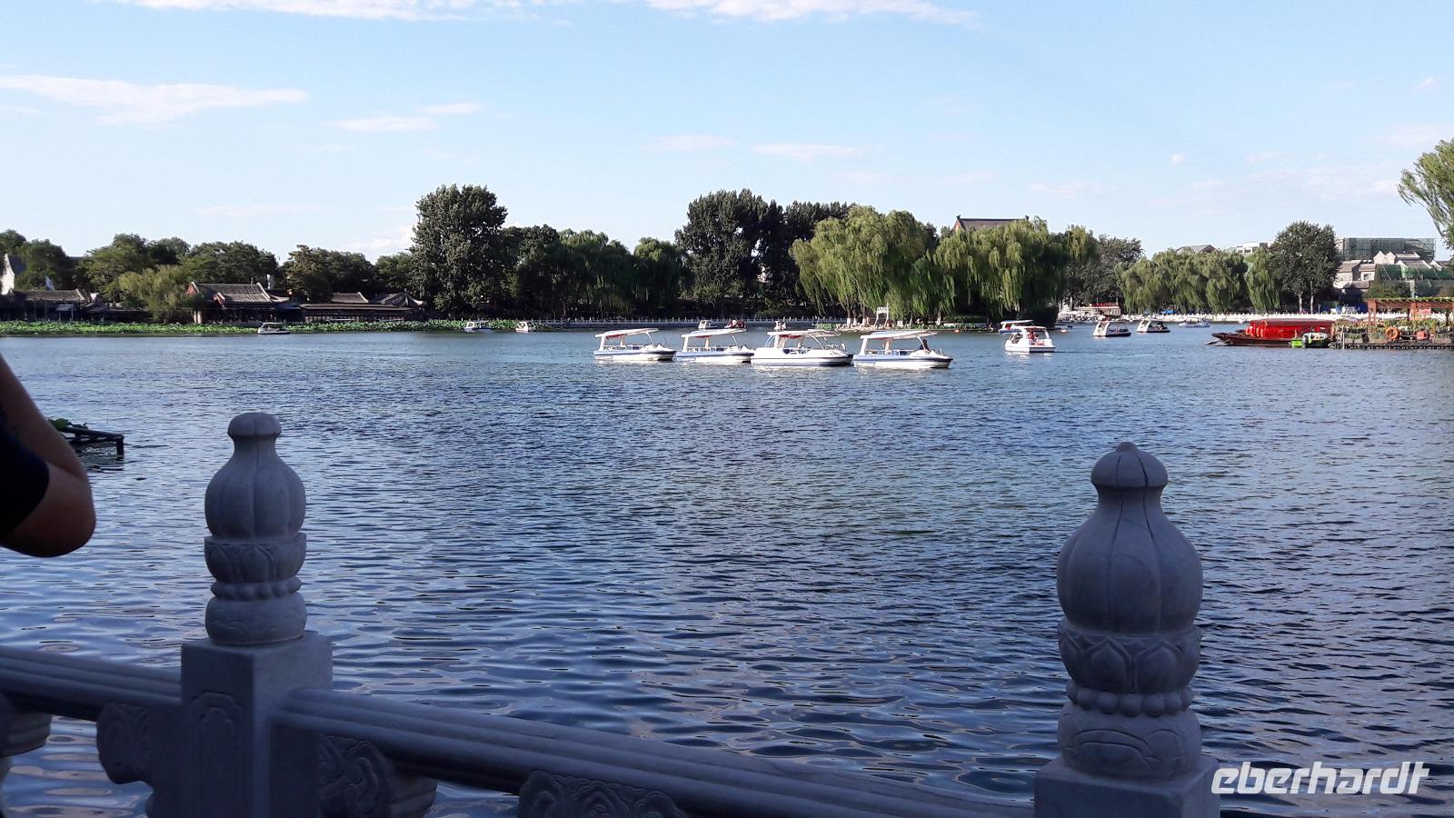Nach dem beeindruckenden Spaziergang durch das Gelände des Sommerpalastes zum Marmorboot sind wir zurück zum Eingang mit dem Boot auf dem Kunming See gefahren. Wir haben ein wunderschönes Panorama vom Wasser genossen und es war eine ruhige und entspannte Pause, weg von den Massen von Touristen.