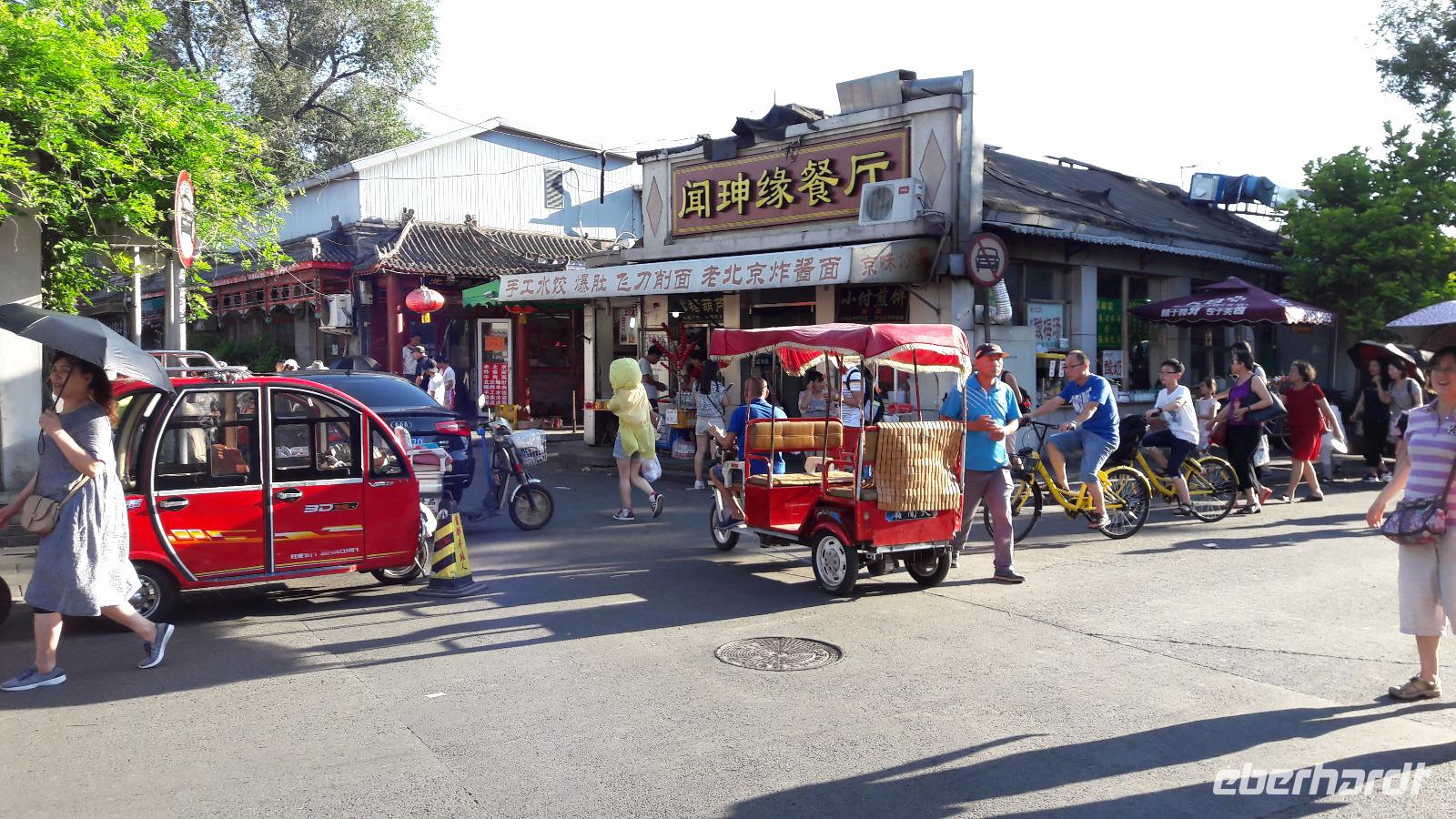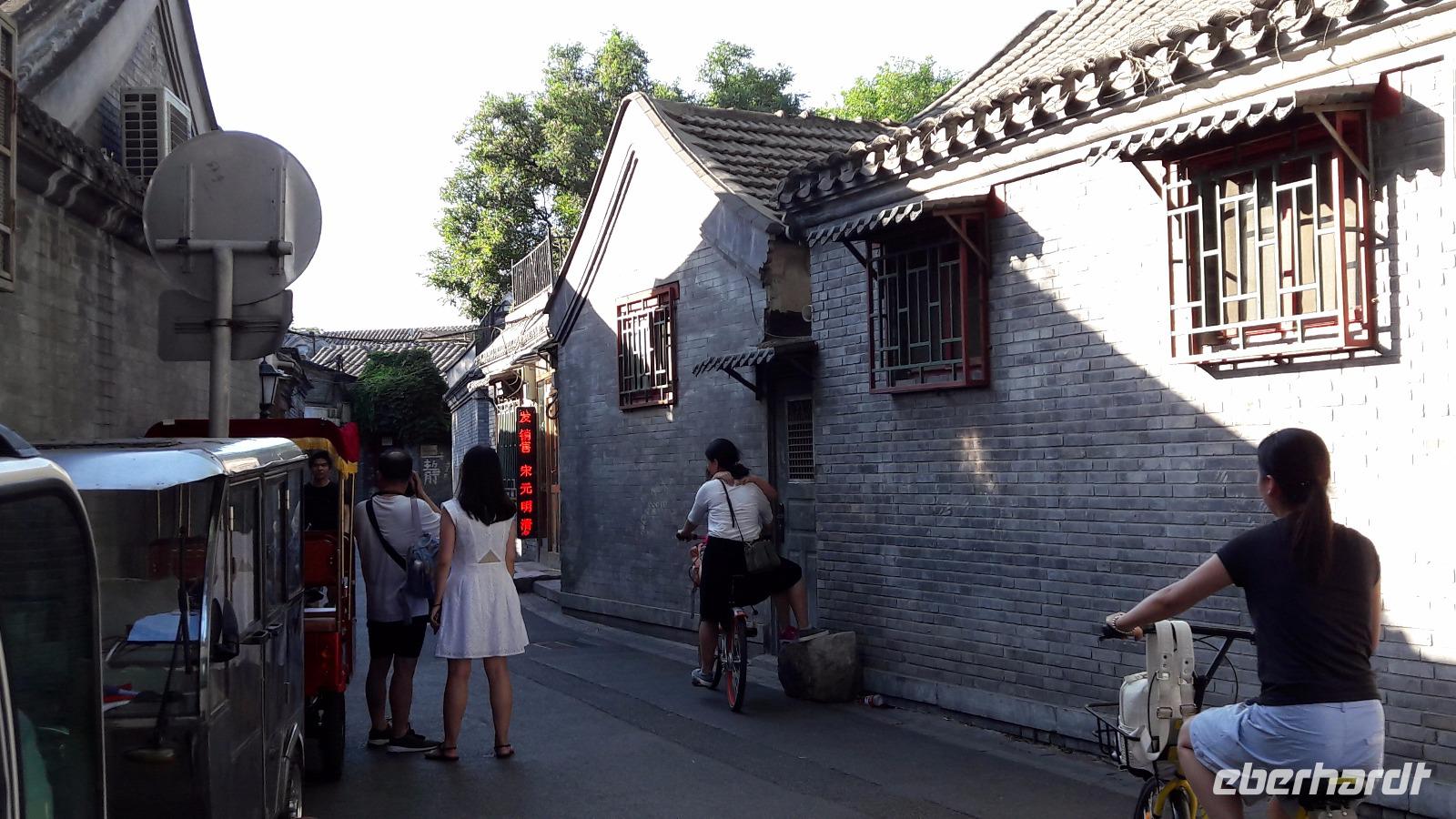 Müde von der stechenden Sonne freuen wir uns, zurück in den klimatisierten Bus zu kehren und wir fahren weiter zum traditionellen Wohnviertel in Beijing - Hutong.