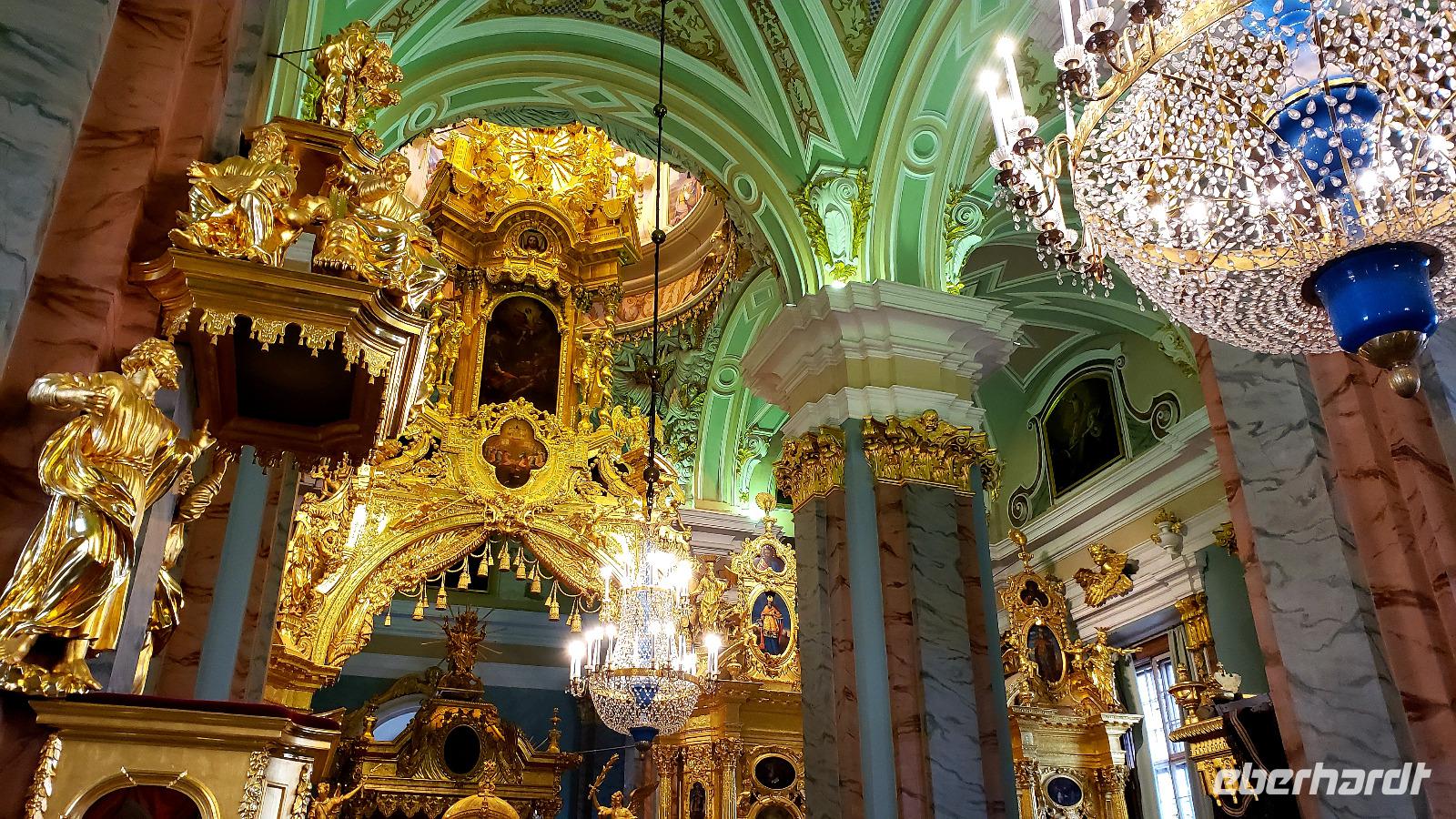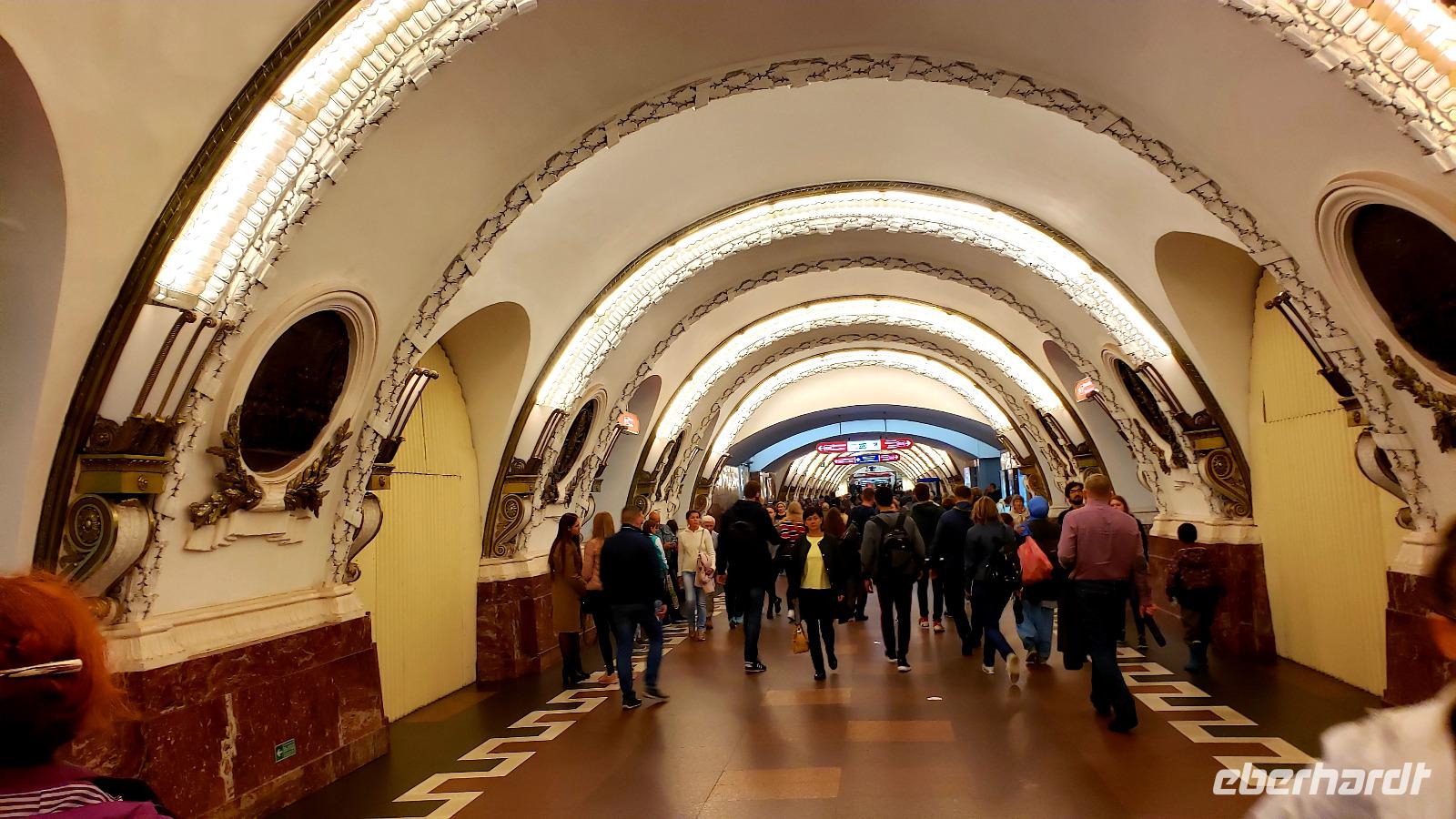 Nach einem reichhaltigen Frühstücksbuffet starteten wir leider im Regen mit der Reiseleiterin Olga zur Stadtrundfahrt. Es gab viele imposante Kirchen und Kathedralen zu sehen und tolle Fotostopps. Dann ging es zur Peter Paul Festung, wo wir die traditionelle Wachablösung mit Kanonenschüssen erlebten. Anschließend hat Olga uns das Innere der imposanten Peter Paul Kathedrale gezeigt und alle Zarengräber erklärt. Hier liegt auch die letzte Zarenfamilie begraben. Nach diesem interessanten Aufenthalt ging es weiter zur Bluterlöserkirche, die hübscheste die wir bisher gesehen haben. Von da an ging es zu Fuß weiter und wir stärkten uns erstmal bei Kaffee und Kuchen (einige auch bei Bier und Herzhaftem) im traditionellen Café Norden auf dem Nevski Prospekt. Dann schlenderten wir noch den berühmten Nevski Prospekt entlang und bewunderten das Feinkostgeschäft Jelissejew. Zum Abschluss dieses tollen Tages lud Olga uns ein mit der Metro zu fahren, was wirklich ein Erlebnis war. Es ging 60m in die Tiefe und die Stationen sind architektonische Glanzleistungen. Vor dem Abendessen im Hotel konnten wir noch etwas entspannen. Nach dem Essen ging es auf eine interessante Bootstour auf die Neva und umliegende Kanäle, die Martina optional empfohlen hatte, leider schon wieder im Regen. Aber Olga hat viel erklärt und es war schön die Stadt vom Wasser aus zu sehen.