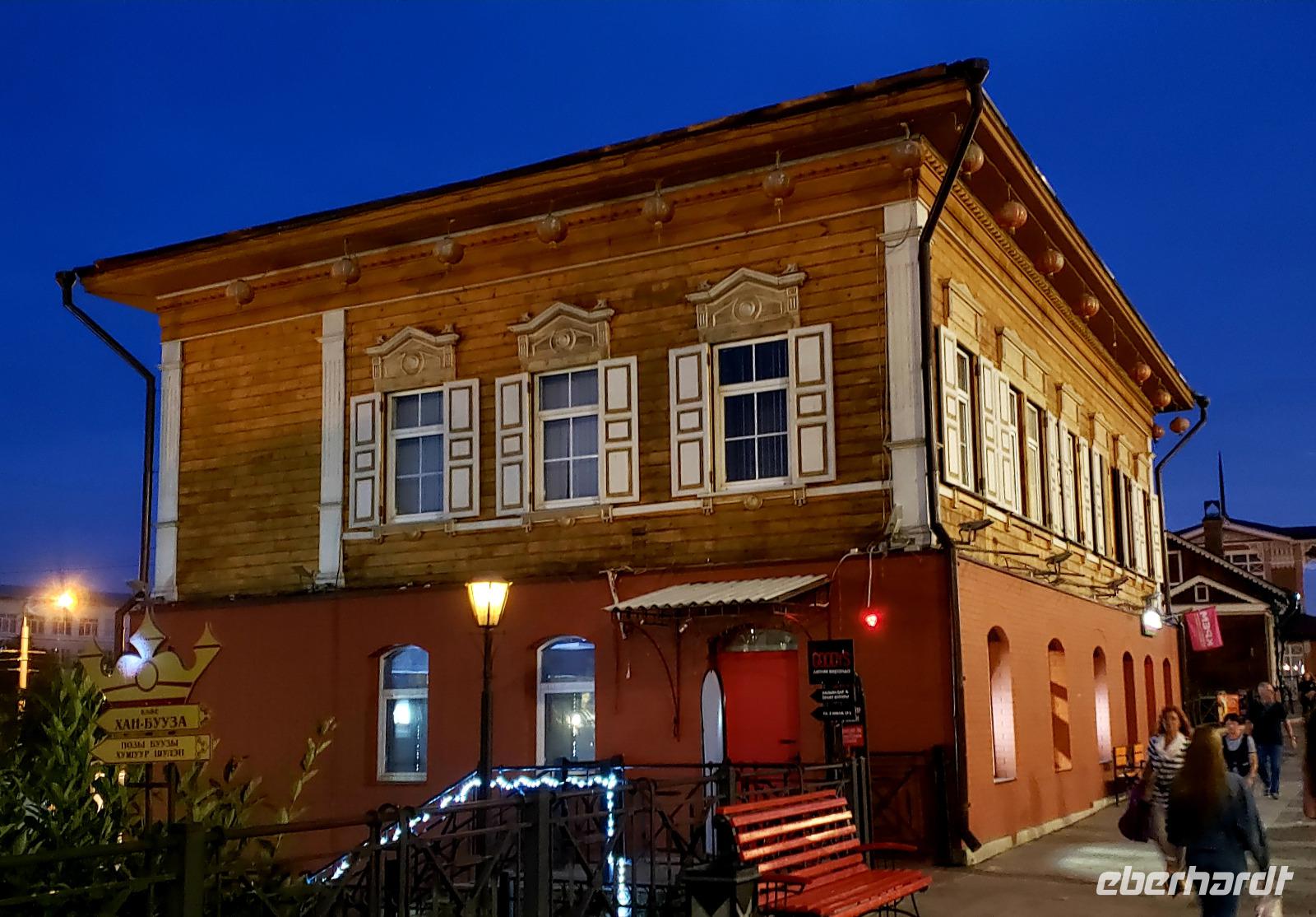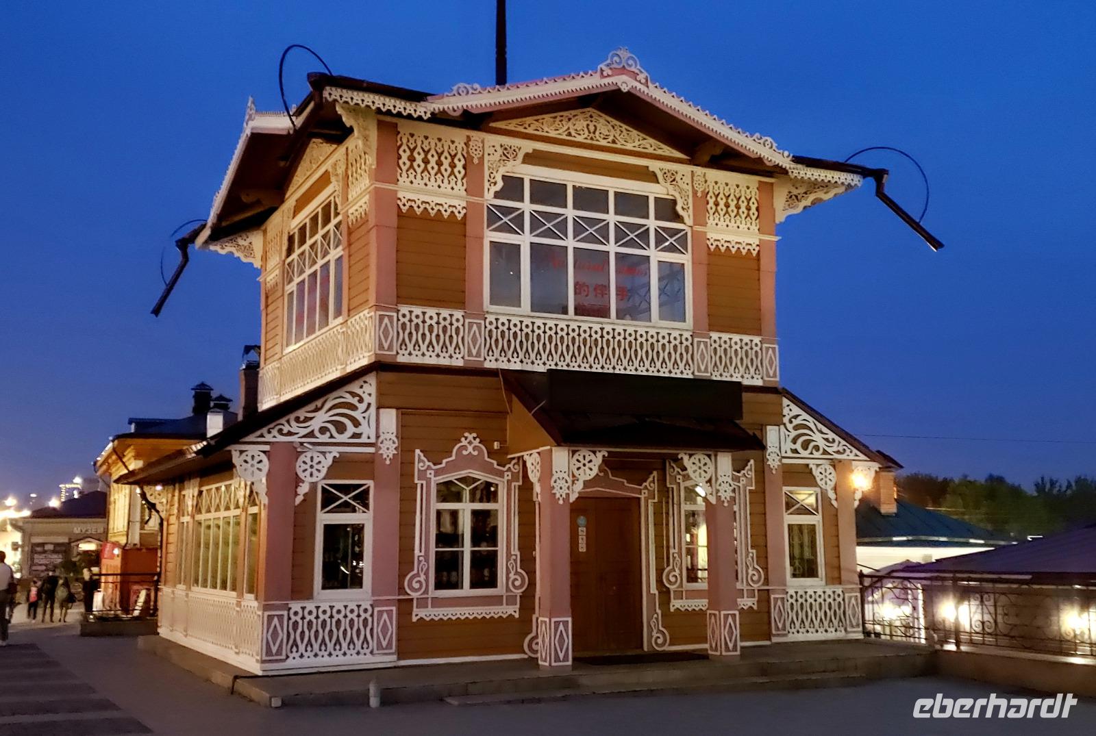 Heute hatten wir Zeit, dass bisher Gesehene zu verdauen und schon mal Fotos zu sortieren. Früh verließen wir Moskau und flogen nach Irkutsk. Wir verloren einen halben Tag durch die Zeitzonen und so kamen wir erst zum Abendessen in Irkutsk an. Ludmilla, unsere Reiseleiterin für die Baikalregion erwartete uns schon und brachte uns mit dem Reisebus ins Hotel. Wir ließen die Koffer an der Rezeption des besten Hotels am Ort, des Marriot Courtyard stehen und nahmen sofort ein sehr leckeres Abendessen ein. Danach schnell die Koffer aufs Zimmer und schon machte Martina mit uns einen geführten Spaziergang mit interessanten Erklärungen durch die Stadt. Wir flanierten am Ufer des Angara Flusses, bogen in die Karl- Marx- Straße ein bis zum Lenin Denkmal und landeten schließlich in der Siedlung der alten Holzhäuser, die liebevoll saniert wurden und heute Restaurants und Galerien beherbergen. Irkutsk bestand früher ausschließlich aus Holzhäusern mit wunderschönen geschnitzten Traufen und Fensterläden. Aber vor 140 Jahren gab es einen großen Brand in der Stadt, der 2/3 aller Häuser in Irkutsk zerstörte. Nach dem Rundgang ging es auch gleich ins Bett, denn morgen fahren wir schon früh zum Baikalsee!