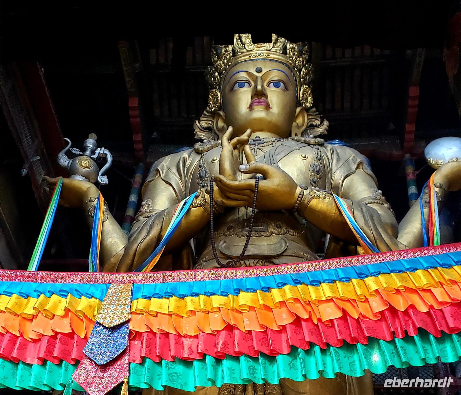 Wie langweilig! Ohne Panne und super im Zeitplan kamen wir in Ulan Bator an. Gleich ging es zum Kaschmir Shop um nach Schnäppchen zu schauen und dann zum Gandan Kloster, wo wir die riesige Buddha Statue bewunderten. Es gab viel Stau in der aufstrebenden Hauptstadt. Mit atemberaubendem Blick auf das Zentrum von Ulan Bator nahmen wir ein sehr leckeres Mittagessen im 17. Stock des MGC Gebäudes ein. Anschließend wollten lieber alle zum „Schwarzmarkt" statt ins Nationalmuseum. Auf dem Markt gab es Bekleidung, Haushaltswaren und Obst. Weil es schon spät war und immer noch viel Verkehr, sind wir direkt zum Konzert und Folkloretanz in ein typisch mongolisches Theater gefahren. Es wurde eine bunte Mischung aus Kehlkopf- und Operngesang, Folkloretanz und Akrobatik gegeben. Das hat uns allen super gefallen. Anschließend sind wir gleich zum indischen Restaurant wo wir ausgezeichnet gegessen haben. Dann endlich konnten wir in unser Hotel einchecken. Endlich wieder Luxus nach so viel Jurten Camping.