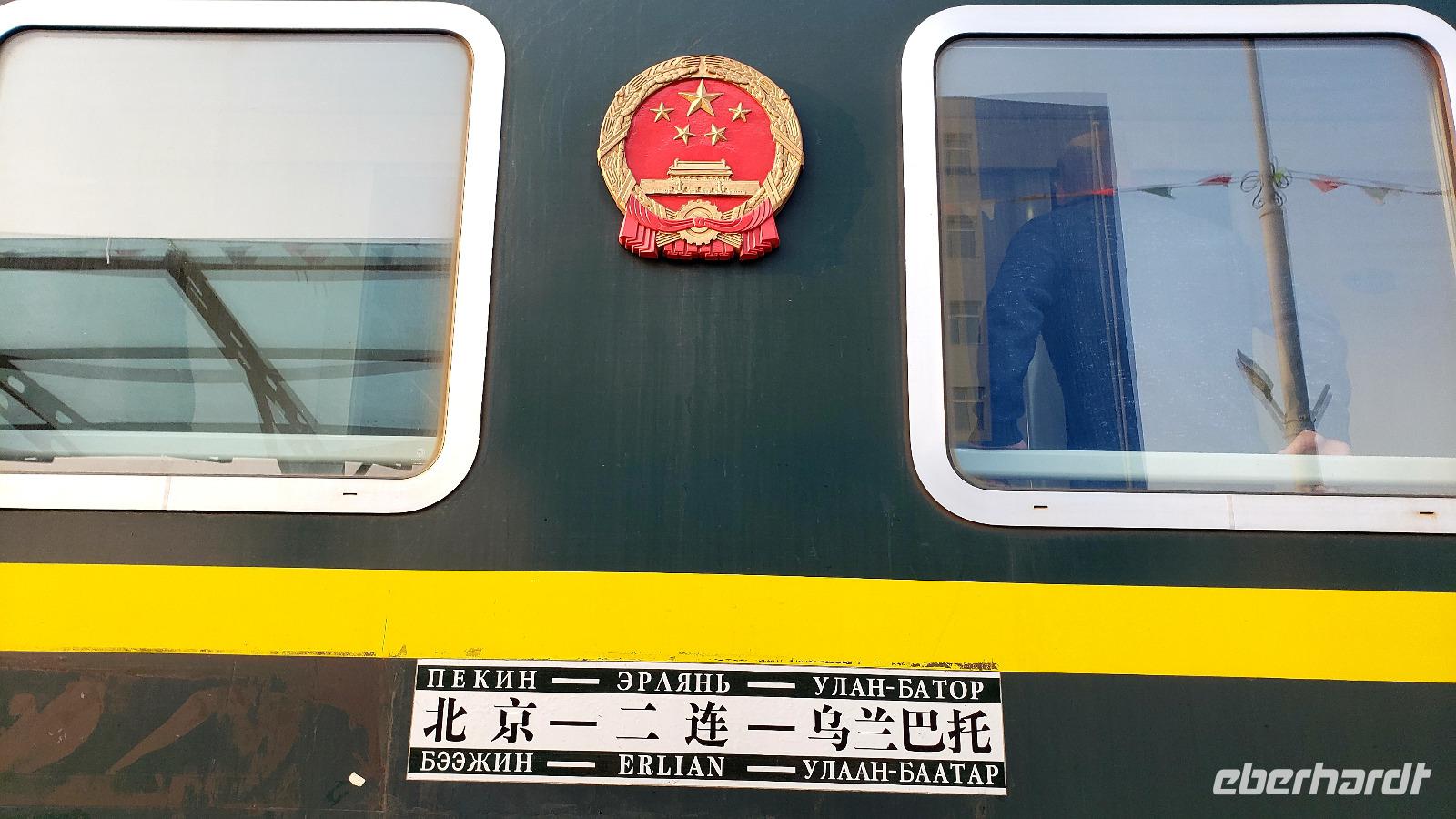 Heute ging es los mit der Transmongolischen Eisenbahn. Wir waren alle ganz aufgeregt! Unsere Reiseleiterin Mandakh begleitete uns zum Zug und verabschiedete sich, als alle ihre Plätze gefunden hatten. Der Zug füllte sich bis auf den letzten Platz und pünktlich setzte er sich in Bewegung Richtung Peking. Vom Hotel hatte jeder ein Frühstückspaket erhalten und es gab schon heißes Wasser im Zug, sodass wir uns Pulverkaffee oder Tee bereiten konnten. Martina hatte reichlich Lebensmittel und Säfte mit, sodass wir weder verhungern noch verdursten würden. Die mongolische Steppe zog an uns vorbei, obwohl es wenig Abwechslung gab, konnte man sich nicht sattsehen. Zum Mittag servierte Martina uns heiße Würstchen und Brötchen. Dann schauten wir wieder aus dem Fenster und langsam zogen die Ausläufer der Wüste Gobi an uns vorbei. Bei 2 kurzen Stopps konnten wir aussteigen und einmal gab es einen Kiosk, wo einige sich ein Eis gönnten. Der Zug hatte auch ein Bordrestaurant, dort habe ich mir ein Bier geholt, weiter bin ich noch nie für ein Bier gelaufen - der Zug ist sooo lang! Die Zeit verging irgendwie schnell und schon waren wir an der mongolischen Grenze und kurz darauf an der chinesischen. Hier mussten wir mit all unserem Gepäck aussteigen und einmal durch die Sicherheitskontrolle. Dann hieß es 3 Stunden warten in der Abfertigungshalle und so konnten wir leider nicht zuschauen wie der komplette Zug hochgehoben wird und die russischen Breitspur Räder gegen die chinesischen Schmalspur Räder ausgetauscht werden. Früher musste man im Zug sitzen bleiben und konnte zugucken. Dafür hatten wir in der Halle Toiletten und einen Minimarkt. Um 1 Uhr morgens durften wir wieder in den Zug und sind sofort schlafen gegangen.
