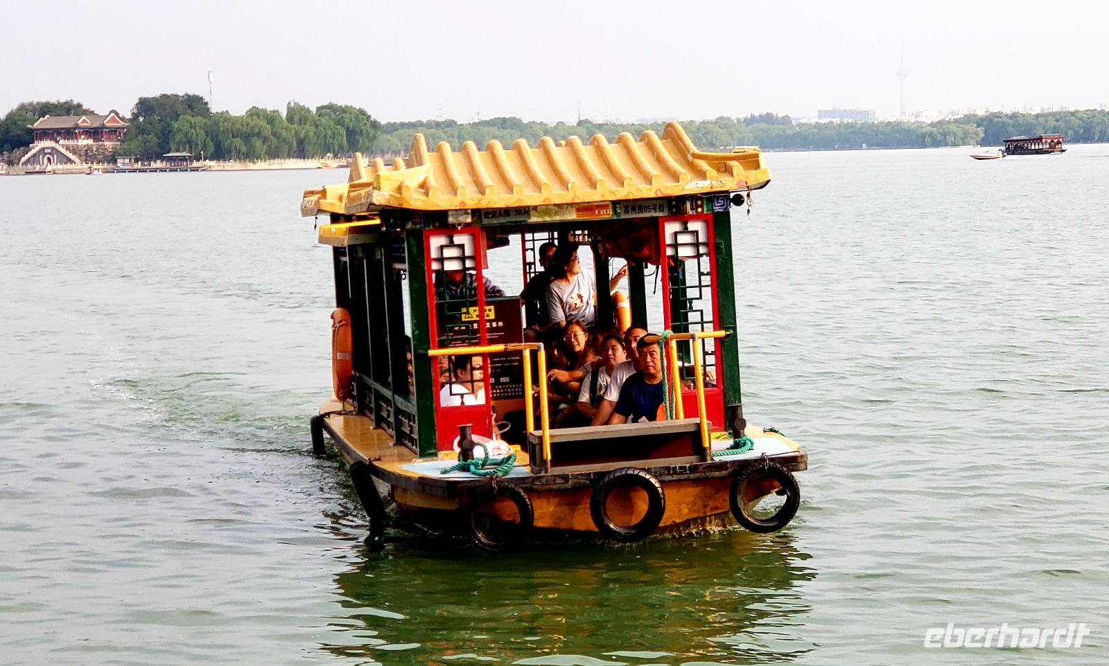 Wir waren auf der großen Mauer!!! Das war wirklich beeindruckend und viele sind ziemlich hochgelaufen, trotz der Hitze. Wir hatten fast 2 Stunden Zeit, rauf und runter zu klettern, viele Fotos zu schießen und bei Kaffee oder Wasser einfach die Sicht zu genießen. Danach ging es zu den Ming Gräbern und zu einem Spaziergang auf dem heiligen Pfad der von Riesen Tierskulpturen gesäumt wird. Dann stand der Sommerpalast auf dem Programm. Wir sahen uns einen Großteil der riesigen Anlage an, entspannten am Lotusblüten Teich und am Schluss fuhren wir mit einem Boot über den See, das hatte Martina spontan organisiert mit Hilfe von Lin. Unser Bus wartete schon auf der anderen Seite und wir fuhren wieder in das gleiche Restaurant, weil es uns dort so gut geschmeckt hatte. Für einen Teil der Gruppe reichte das für heute, die anderen gingen nochmal auf Achse.