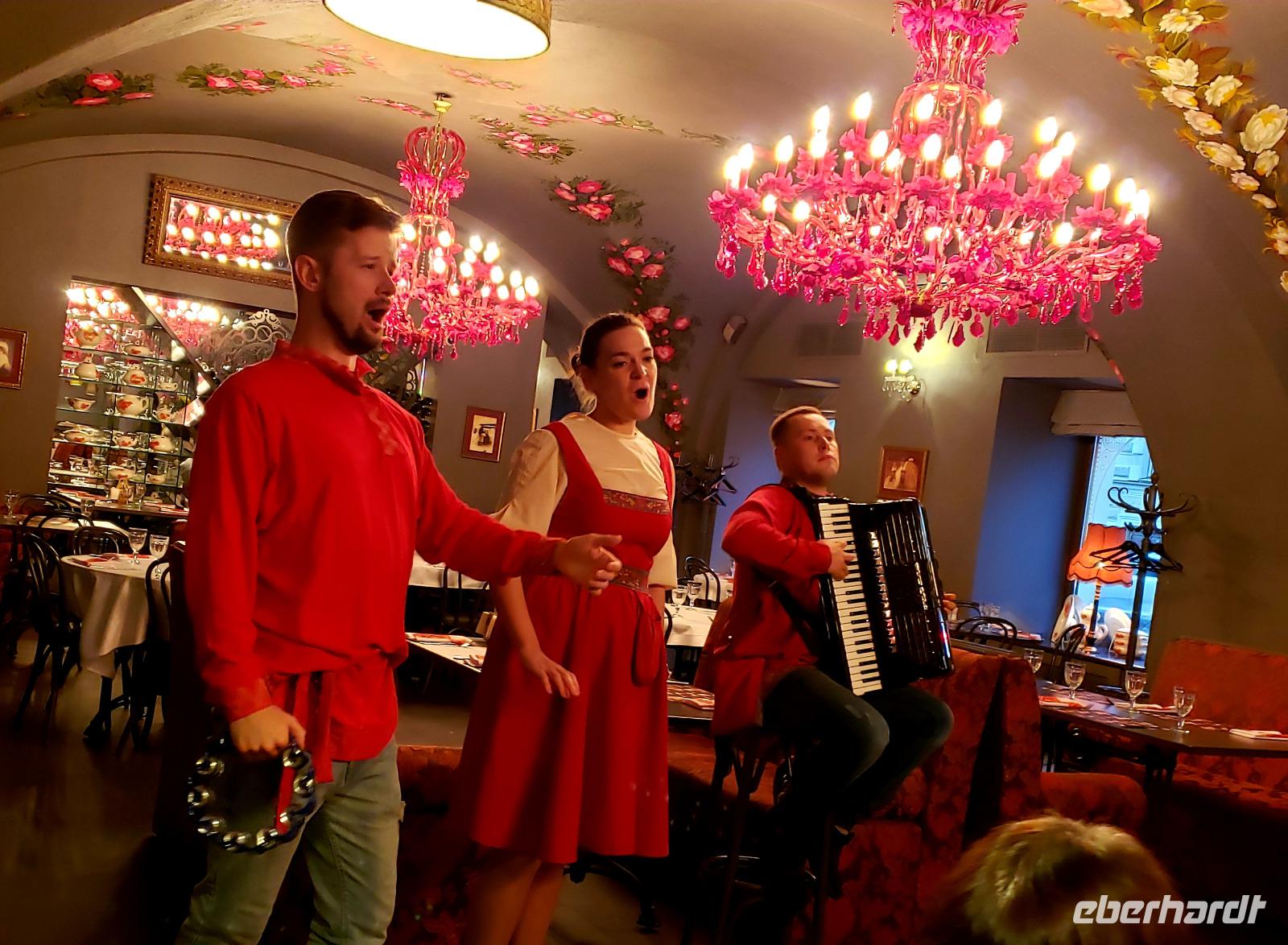 Heute ging es los in unbekannte Gefilde! Wir flogen von verschiedenen Flughäfen über Frankfurt - wo unsere Reisebegleiterin Martina uns schon erwartete - nach St Petersburg. Bei der Landung haben wir gleich endlose Birkenwälder gesehen - so stelle ich mir Russland vor! Alle kamen zügig durch mit der Gepäck Abfertigung, Sankt Petersburg hat einen modernen Flughafen. Dann gab es allerdings sehr viel Verkehr und Regen, deshalb kamen wir erst ca. 15.30 Uhr im Hotel an. Wir haben ein paar Rubel aus dem Automaten gezogen und auf den Zimmern entspannt. In der Stadt rumlaufen wollte bei dem Regen niemand. Um 18.15Uhr fuhren wir mit dem Reisebus zum Restaurant Sadko. Es wurden uns leckere typisch russische Spezialitäten serviert und Folklore Live Musik. Das war ein guter Start in Russland!