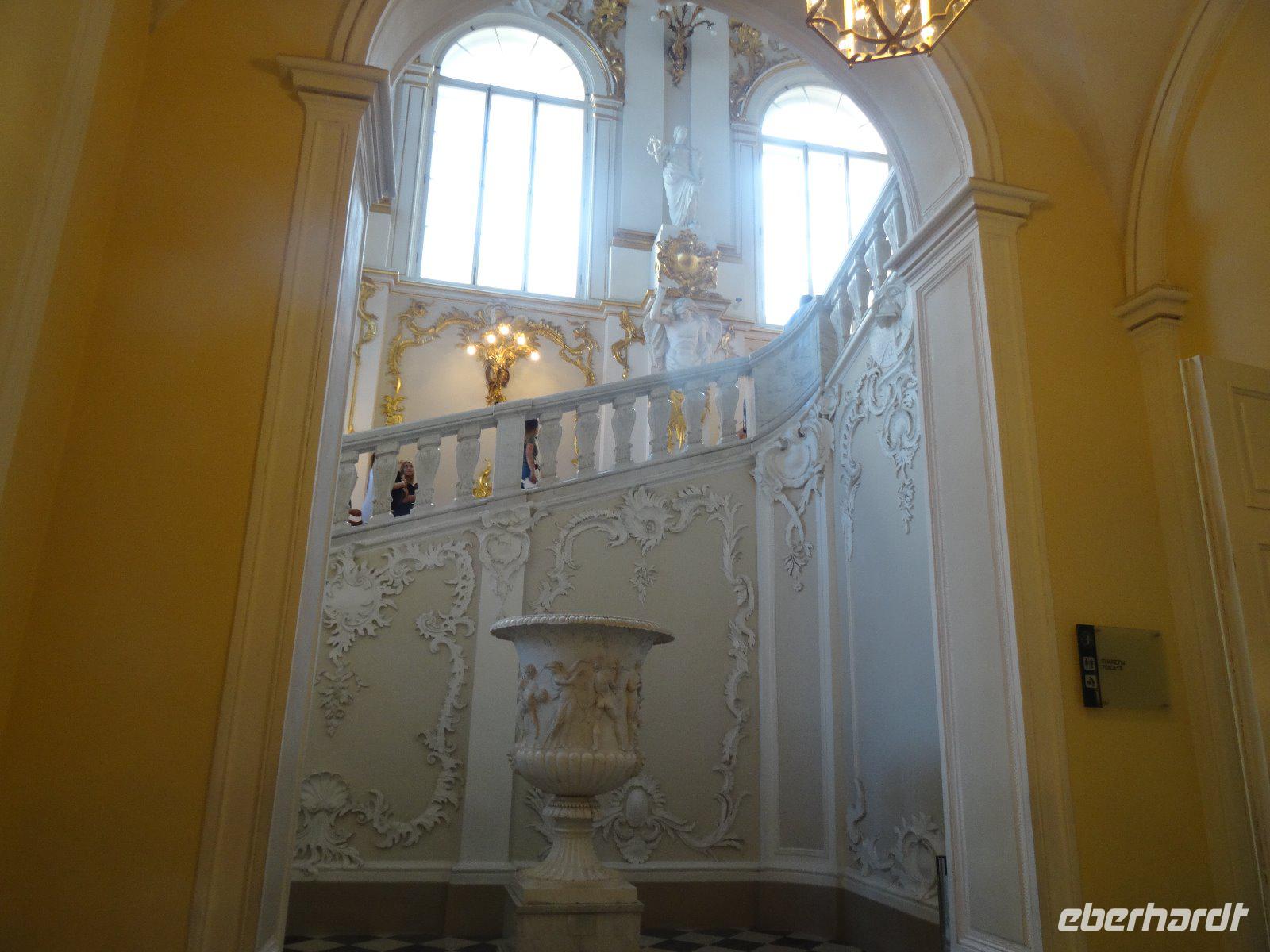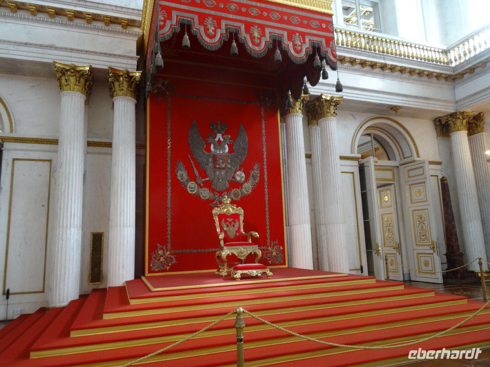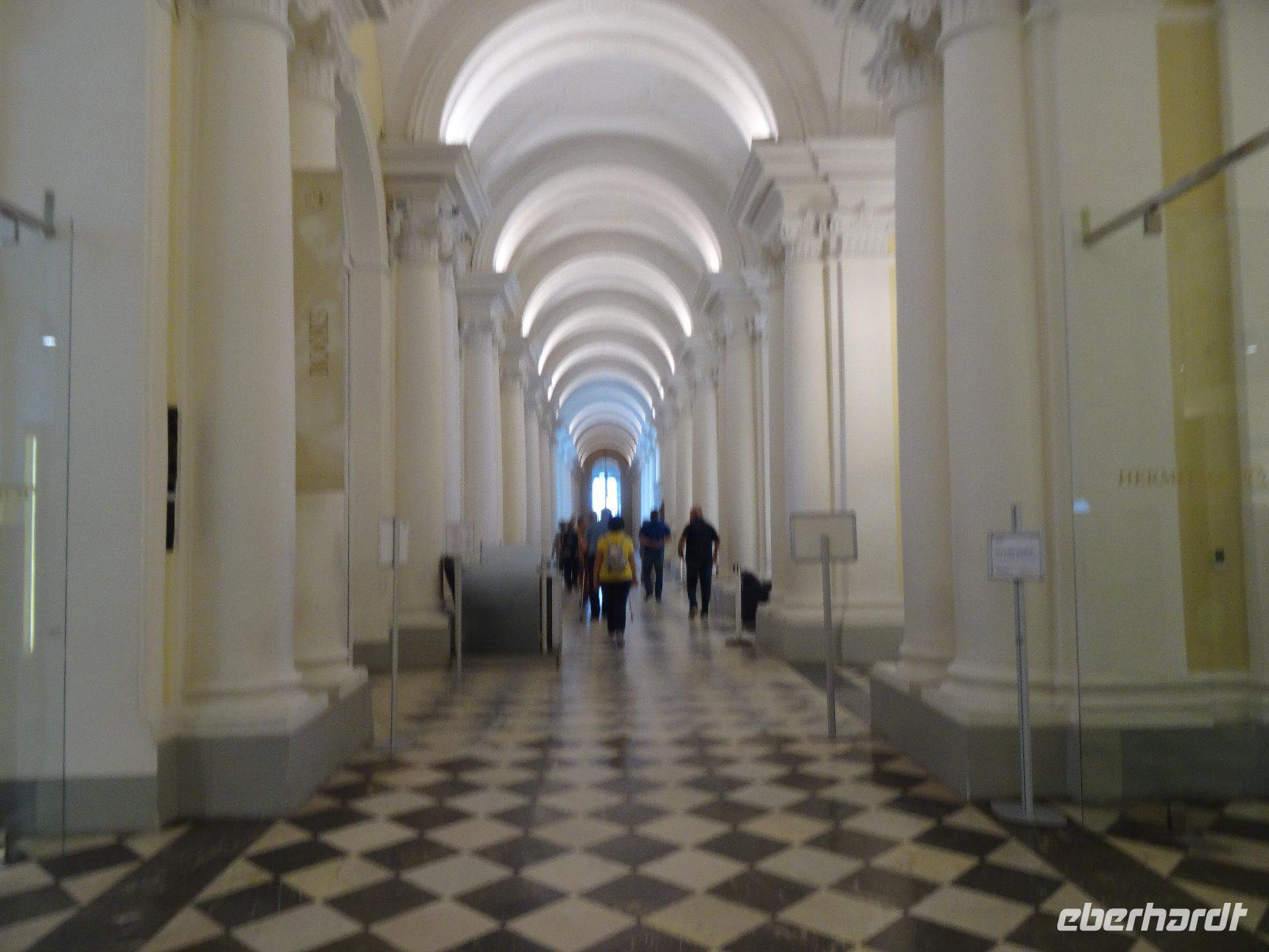 Zumindest einen Teil des Museumskomplexes Eremitage wollen wir uns noch ansehen, bevor wir St. Petersburg verlassen. Wir gehen in den Winterpalast und wandern durch die reich dekorierten Säle mit den prächtigen Fußböden und stuckverzierten Decken. Olga, unsere russiche Stadtführerin erklärt uns die wichtigsten Sammlungen und wir versuchen, diese Vielfalt aufzunehmen. Die umfangreiche Gemäldesammlung streifen wir nur, es ist für einen halben Tag zu viel. Nach vier Stundennehmen wir uns eine kleine Pause für einen Imbiss und danch fahren wir zum Moskauer Bahnhof um von hier aus mit dem Schnellzug "Sapsan" nach Moskau zu fahren. Für die lange Fahrt habe ich Teigtaschen mit verschiedenen Füllungen, etwas Süßes und natürlich Wodka gekauft. Im Zug darf man keinen Alkohol trinken, aber wir sind da sehr diskret....