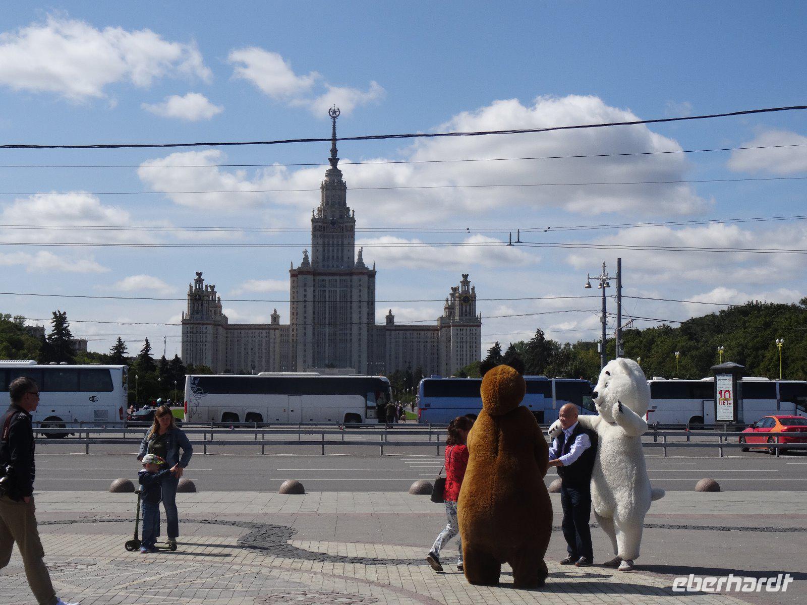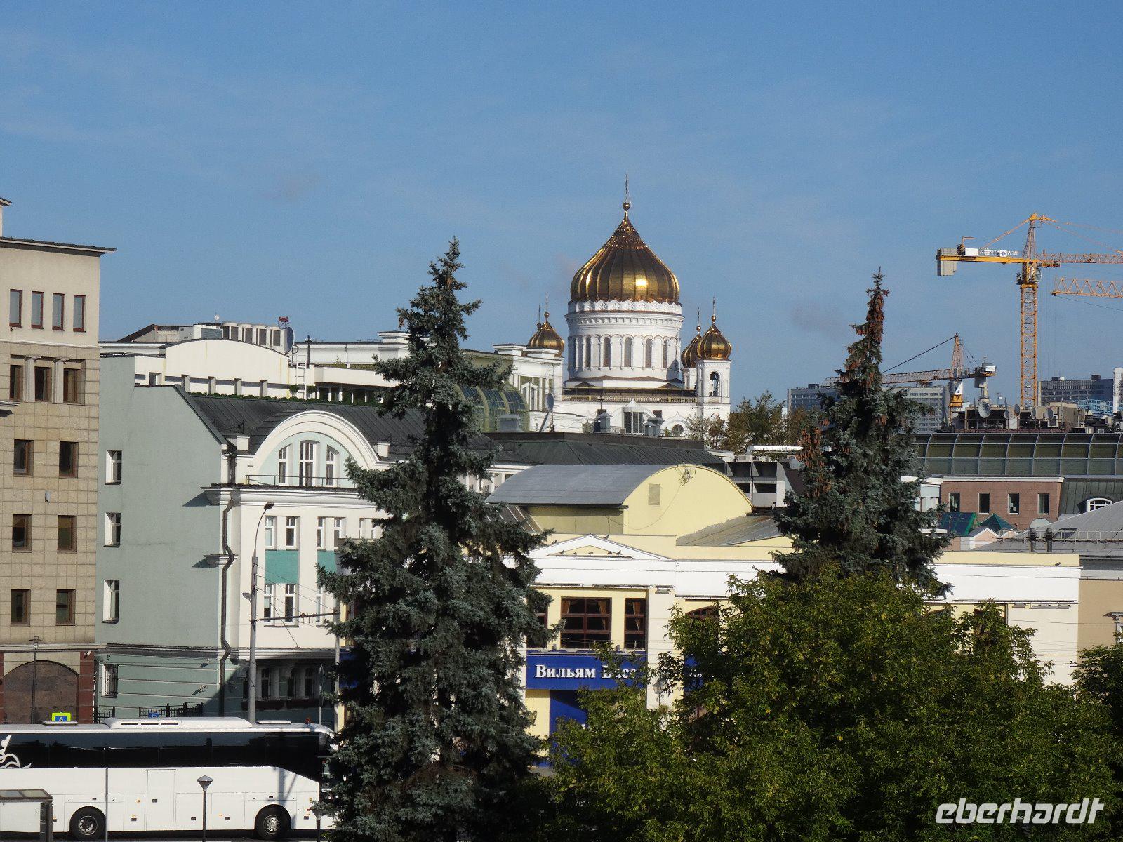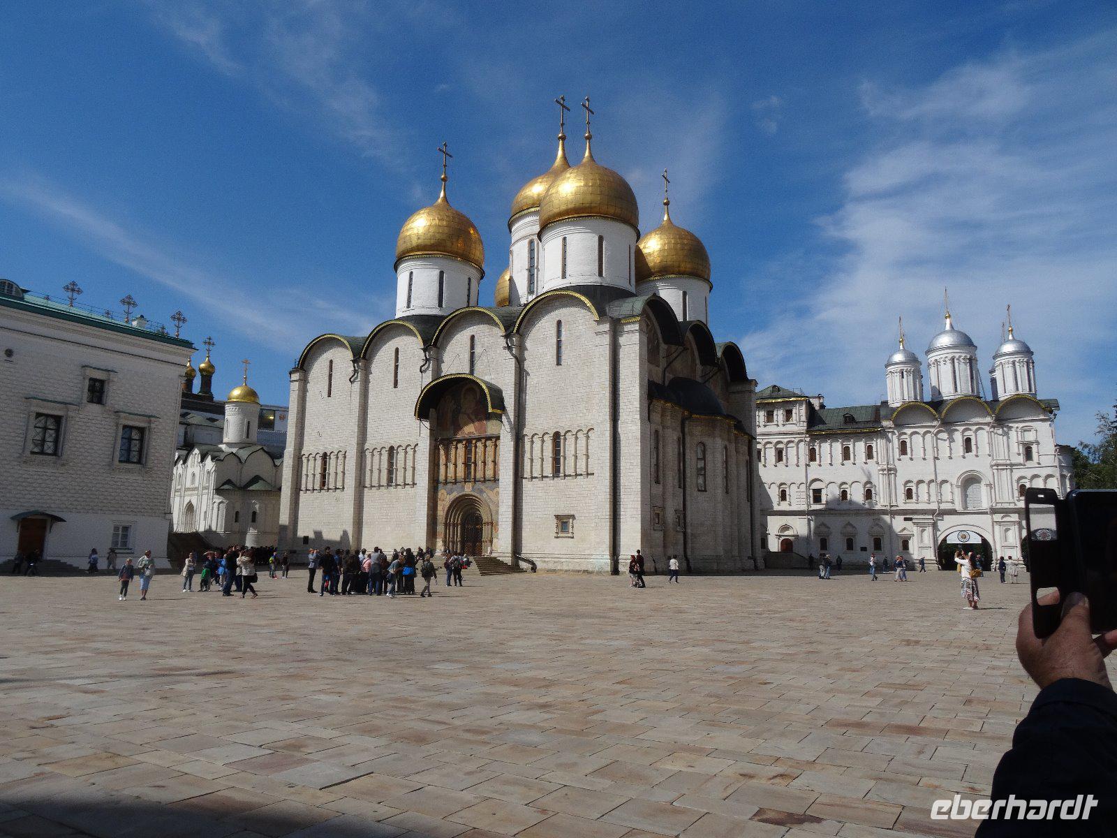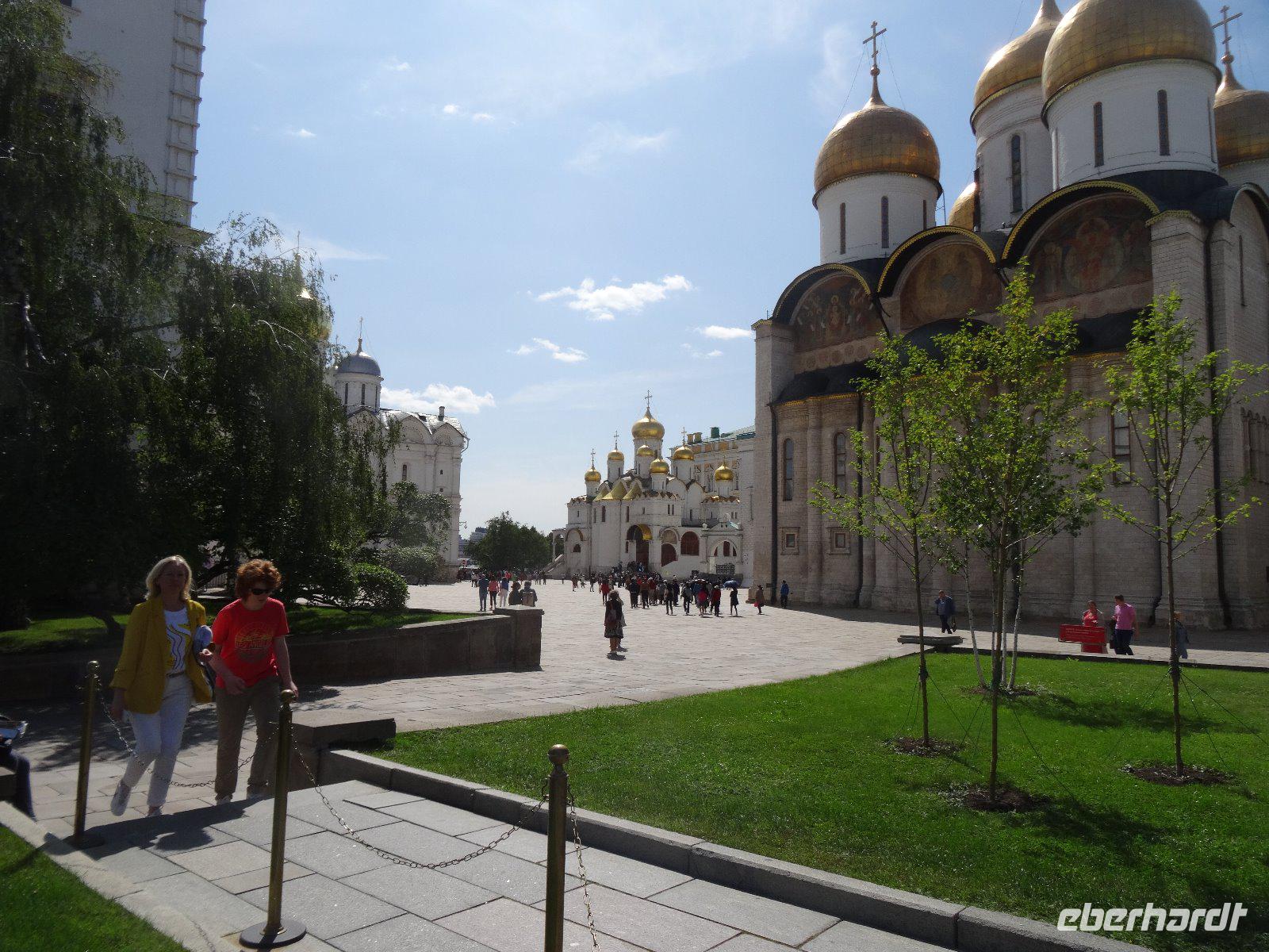 Um 9:00 Uhr holt uns Elena ab und wir beginnen mit unserer Stadtrundfahrt. Elena erzählt von der Entstehung der Stadt, welche vom 15. Jahrhundert bis 1712 und wieder ab 1918 Russlands Hauptstadt ist. Wir sehen, dass Moskau auch eine recht grüne Stadt ist und bei einem Bummel durch den Park zum Neujungfrauenkloster aus dem 16. Jahrhundert vergisst man ein wenig die große Stadt mit ihrem Lärm. Vom Aussichtspunkt auf den Sperlingsbergen kann man die Ausmaße der Stadt gut erkennen. Wir tauchen wieder ein ins Getriebe und fahren zum Kreml und zum Roten Platz. Das ist eine umfangreiche Besichtigungsaufgabe und wir müssen uns auf das Wichtigste konzentrieren und begrenzen. Wir gehen durch den Kremlgarten und dann sehen wir das große Ensemble von Kirchen und Palästen, eingefasst von der Kremlmauer. Über mehrere Jahrhunderte hinweg war er das Machtzentrum von Kirche und Staat. Die Mariä-Verkündigungs-Kathedrale war die Hauskirche der Zaren und Großfürsten, sie wurde im 15. Jahrhundert errichtet und später mehrfach umgebaut. Die Maria-Entschlafens-Kathedrale war dagegen die Hauptkirche für offizielle Anlässe, hier wurden die Zaren gekrönt und die Patriarchen und Metropoliten begraben. Die Erzengel Kathedrale wiederum ist die Begräbniskirche meherer Zaren. Ein Besuch des Roten Platzes komplettiert unseren Ausflug in die russische Geschichte mit seiner Bebauung - dem Historischen Museum, der Basilius-Kathedrale, dem Lenin-Mausoleum und schließlich dem Kaufhaus GUM. Dahin gehen wir nun um zu schauen und auch um eine Stärkungspause einzulegen.Danach sind wir wieder aufnahmefähig und werfen noch einen Blick in die Handwerkersiedlung Kitai Gorod hinter dem Kaufhaus und dann geht es mit der berühmten Moskauer Metro zurück zum Hotel. Nach dem Abendessen im Hotel heißt es Koffer packen und schnell schlafen , denn am nächsten Morgen geht es sehr früh weiter.