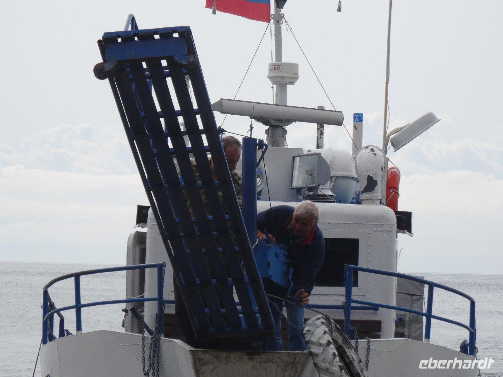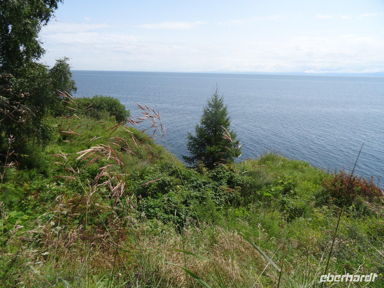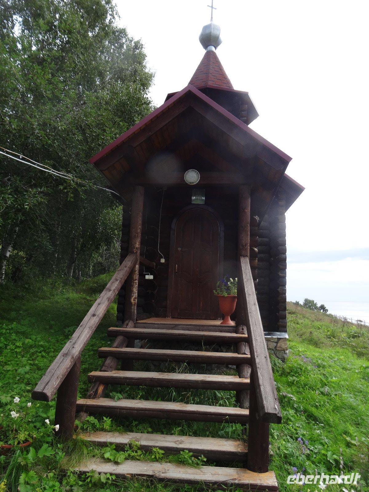 Als erstes erwartet uns heute eine Bootsfahrt auf dem Baikalsee. Unser Ziel ist Bolshie Koty, dort verlassen wir das Schiff und wandern am Steilufer entlang in den Ort. Der Wald begeistert uns mit seiner Vielzahl an Kräutern und so geht unsere Wanderung nur recht langsam voran. Abe schließlich ist es doch geschafft und wir kommen in Tatjanas Datscha an. Sie zeigt uns ihren Garten, Obst und Gemüse baut sie an und besonders stolz ist sie auf die "Liebesbrücke", gebaut von ihrem Mann. Der Tisch ist auch schon gedeckt und wir lassen uns nicht lange bitten und greifen beherzt zu. Auch ein Wodka zur bessren Verdauung fehlt nicht, Tee und Kaffee sowie Beerenkuchen runden das Mahl ab. Satt und zufrieden verlassen wir die gastfreundliche Tatjana und ihre Enkelin und wandern zurück zur Anlegestelle.