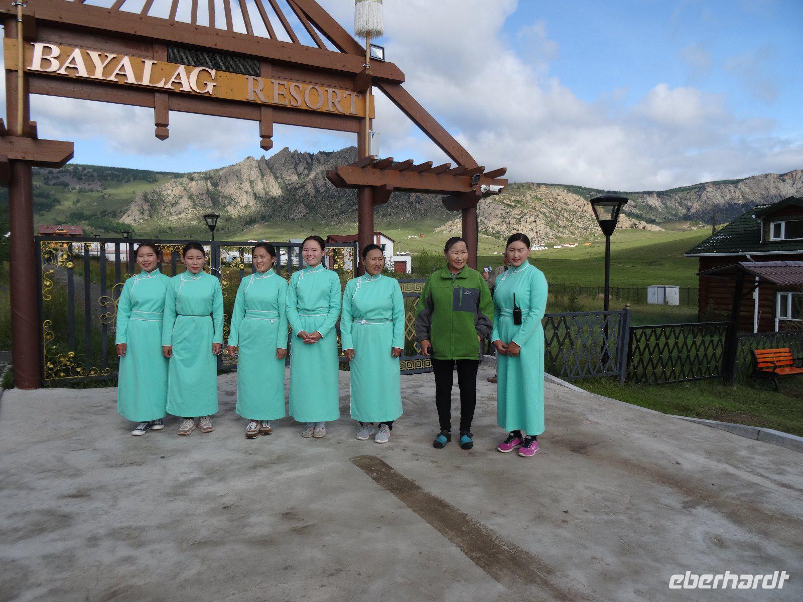 Wieder müssen wir uns den berühmt schlechten Straßen anvertrauen, aber unser Fahrer meistert dies vorzüglich. Um 11:00 Uhr kommen wir in der Hauptstadt an, Tsetsegmaa erzählt uns etwas über die Hauptstadt und auch über die hier beheimatete Kashmirverarbeitung. Wir besuchen auch ein Werk, in dem die Wolle verarbeitet wird und folgerichtig geht es danach zum Shoppen im Werksverkauf. Alle suchen nach Schnäppchen und der eine oder andere wird auch fündig. Diese Anstrengung macht hungrig und so nehmen wir erst noch ein gutes Mittagessen ein bevor wir im Hotel einchecken.