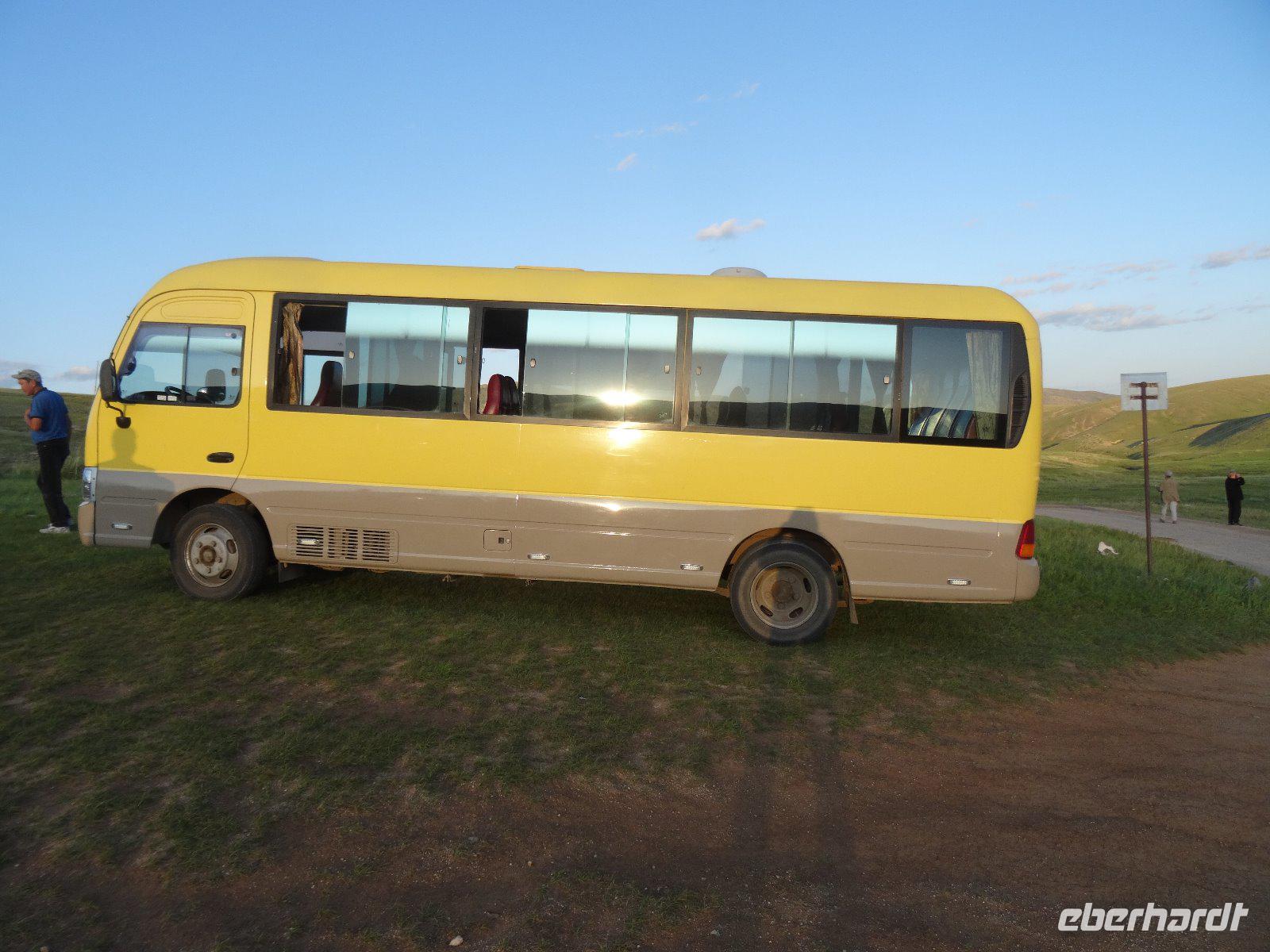 Nach dem Essen fahren wir zum Flugplatz und verabschieden uns von unseren Fahrern und von Tsetsegmaa.
