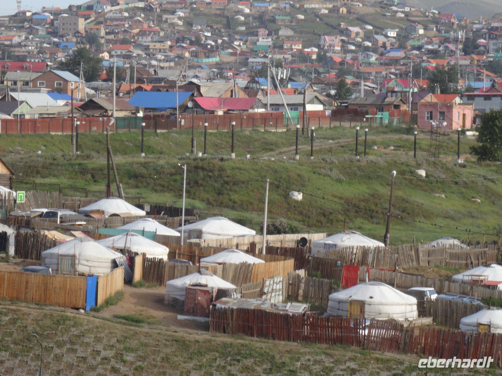 Noch etwas unausgeschlafen kommen wir am Morgen in der mongolischen Hauptstadt an. Tsetsegmaa holt uns am Bahnhof ab und wir gehen zunächst Geld wechseln. Die großen Summen sind leicht verwirrend, man muss sich erst daran gewöhnen.