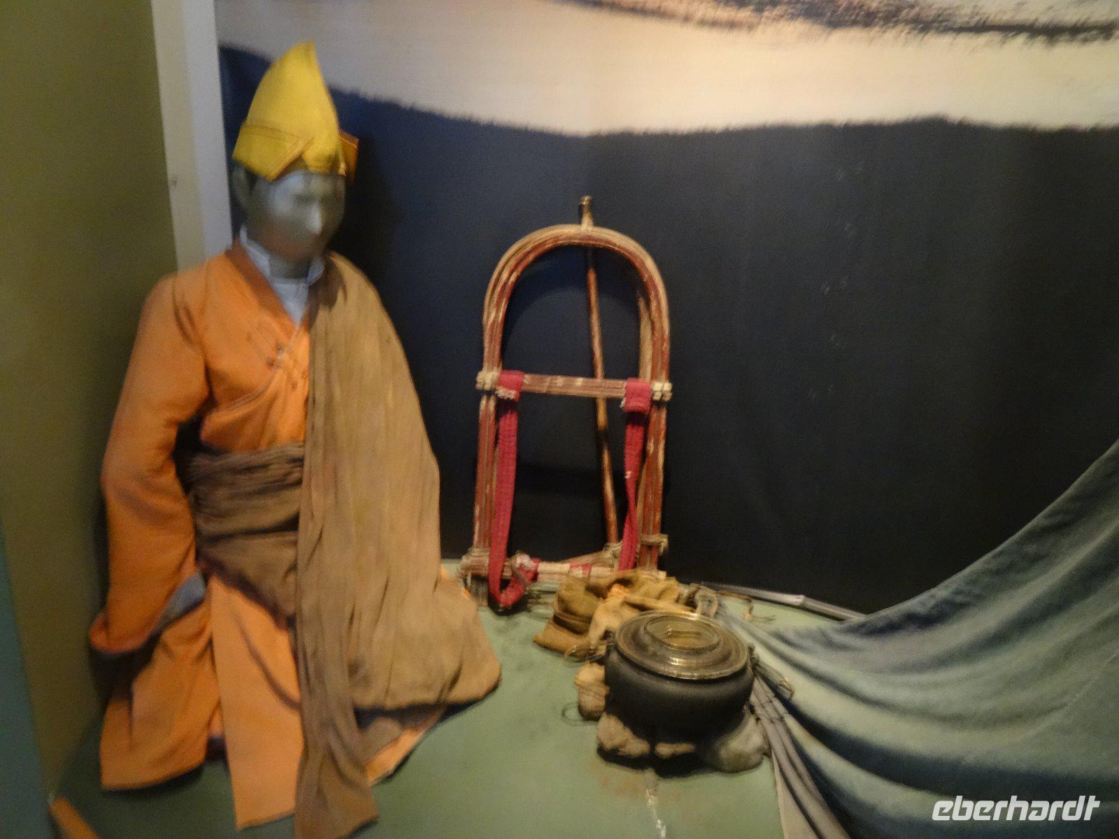 Im Mongolischen Nationalmuseum vertiefen wir noch einmal unsere Kenntnisse zur geschichtlichen Entwicklung der Mongolei, zu den Volksbräuchen und der Kultur. Auch zur Gegenwart, der jüngeren Vergangenheit und der kommunistischen Zeit gibt es interessante Zeugnisse. Die Zeit vergeht sehr schnell und Tsetsegmaa mahnt uns, die Besichtigung zu beenden und zum Mittagessen zu kommen. Es ist ein typisch mongolisches Essen und es schmeckt allen sehr gut, vor allem die kräftigen Suppen erfreuen sich großer Beliebtheit.