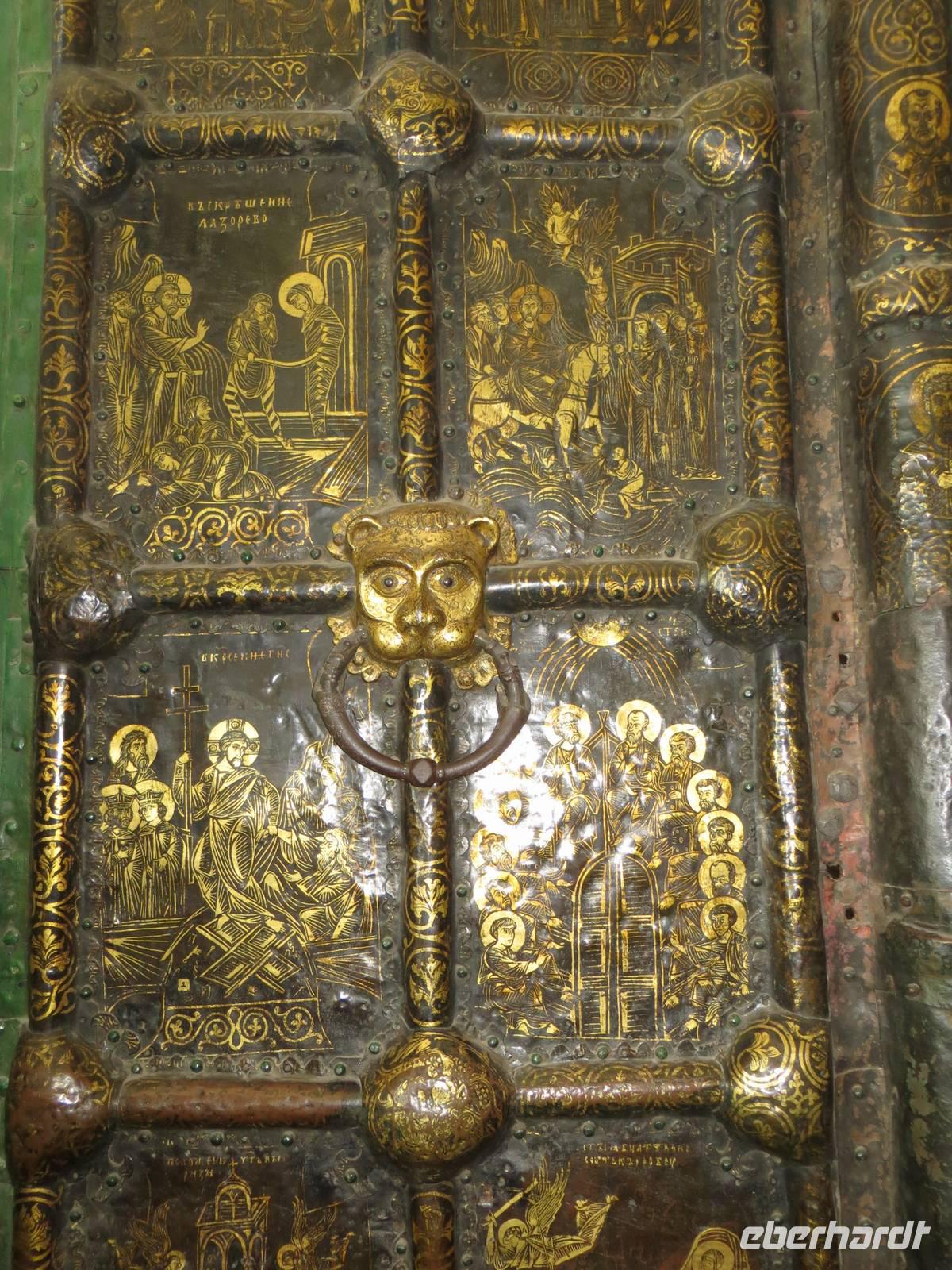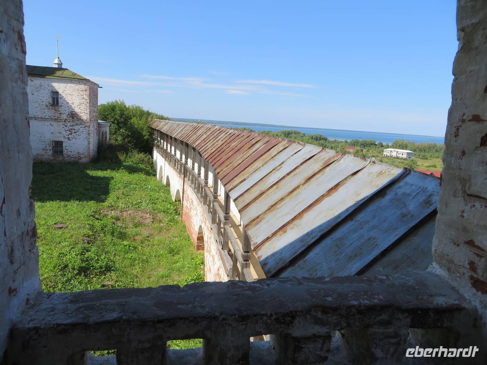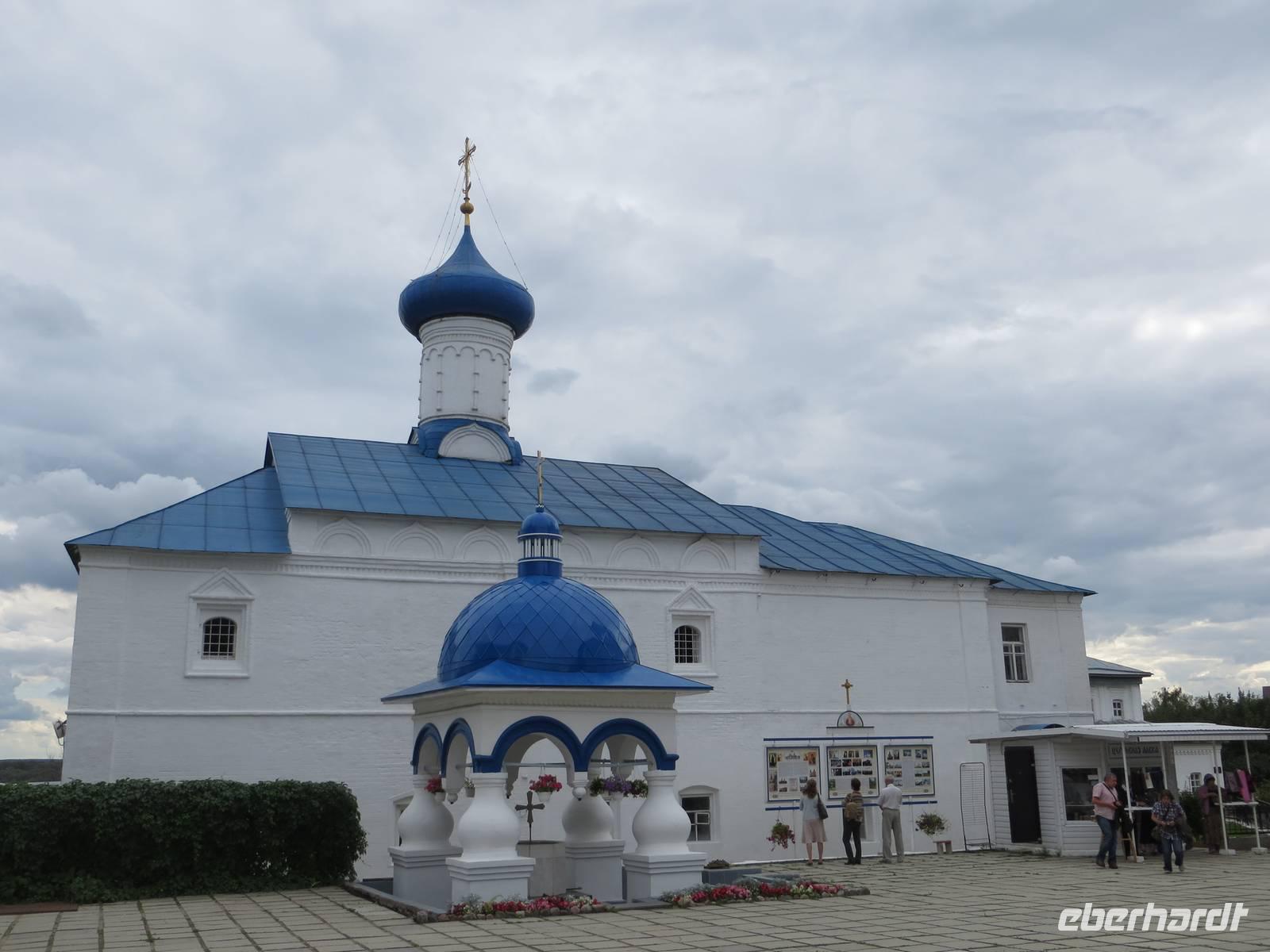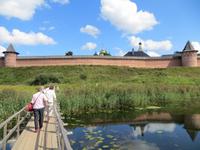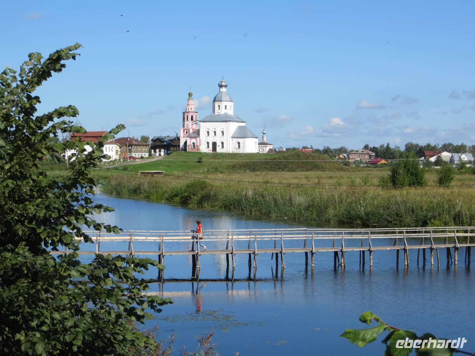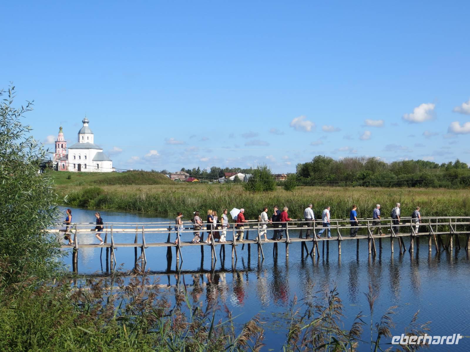 Zum gut ausgeschlafenen Vormittagsstart ging es mit einer kurzen Busfahrt zum Freilichtmuseum für ländliche Kultur zu einem Spaziergang durch Bauernhäuser, in die alte Holzkirche und zum Lauschen russischer Melodien. Zu Fuß überquerten wir dann das Flüsschen Kaminka, um nun leicht auf den alten Wall zum Kreml mit der Kathedrale der Geburt der Gottesmutter zu steigen. Besonders beeindruckend hier die siebenhundert Jahre alten vergoldeten Türen. Im Westen von Susdal am gegenüberliegenden Flusslauf liegt das Maria-Schutz-Kloster, seit einigen Jahren wieder aktives Kloster mit Nonnen. Einst war dies auch „Alterssitz" von Gattinnen russischer Großfürsten und Zaren, so sich die Herren eine neue Auserwählte gesucht hatten. Vom Kloster bummelten wir erneut über den Fluss und stiegen hinauf zum Erlöser-Euthymios-Kloster, einem Wehrkloster aus dem 14. Jahrhundert. Hier begrüßte uns das Glockenspiel von 19 Glocken. In der Erlöser-Verklärungs-Kirche selbst mit strahlend blauen Wandbildern - quasi die gemalte Geschichte der Bibel - lauschten wir dem Gesang eines Männergesangsquartetts in beeindruckender Akustik.