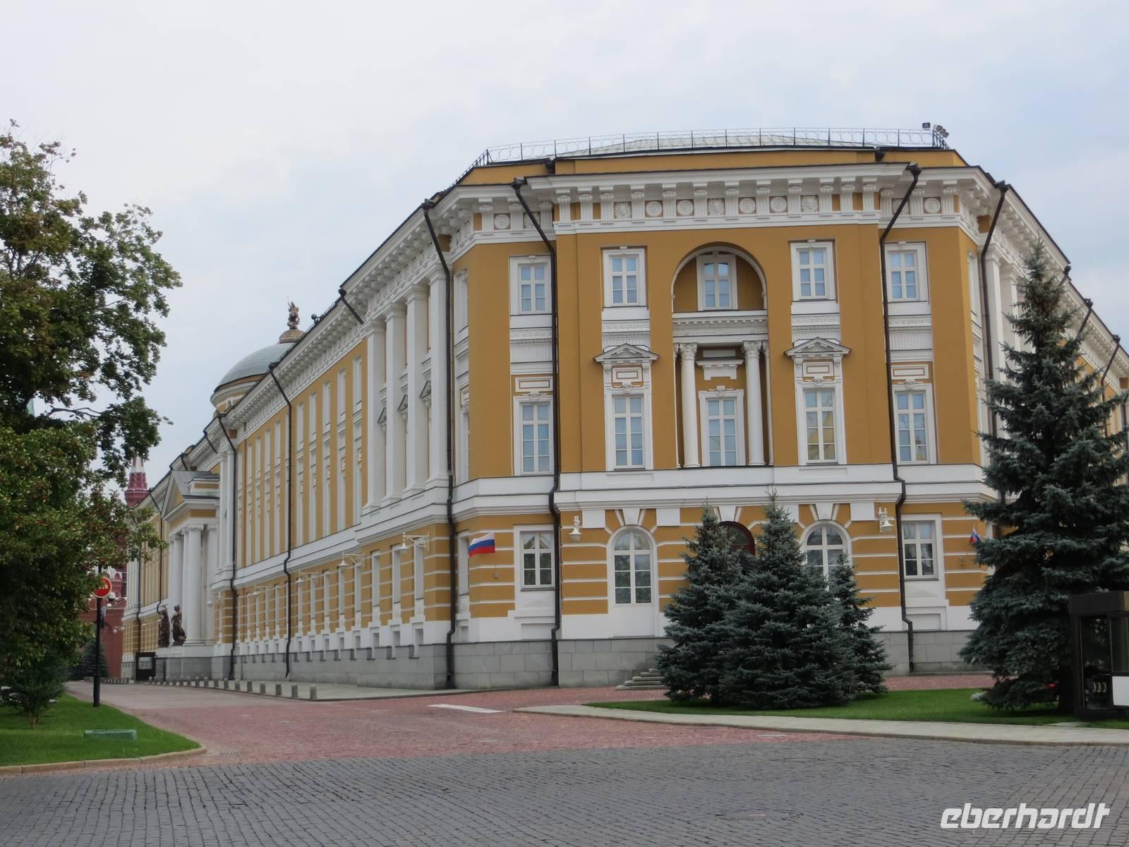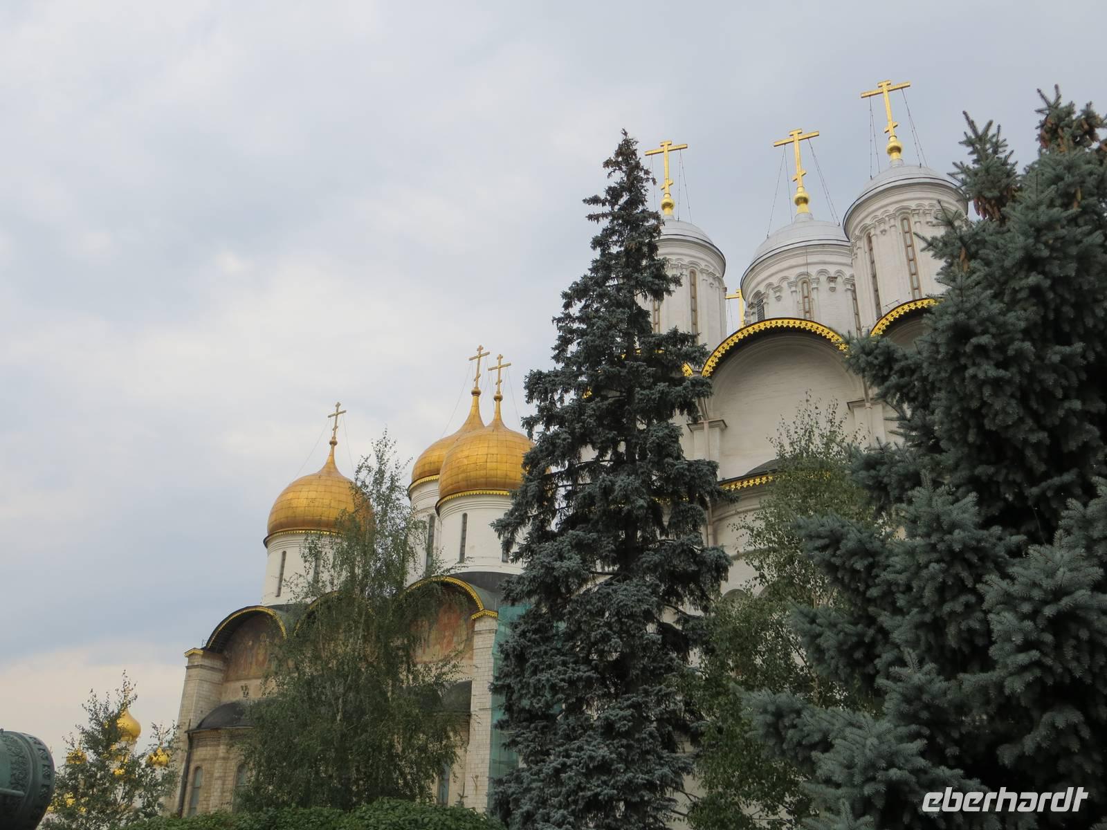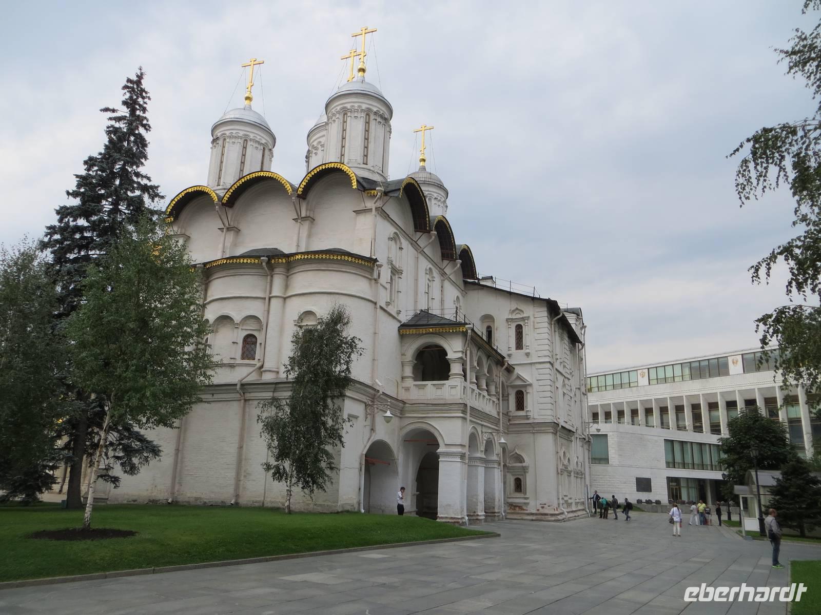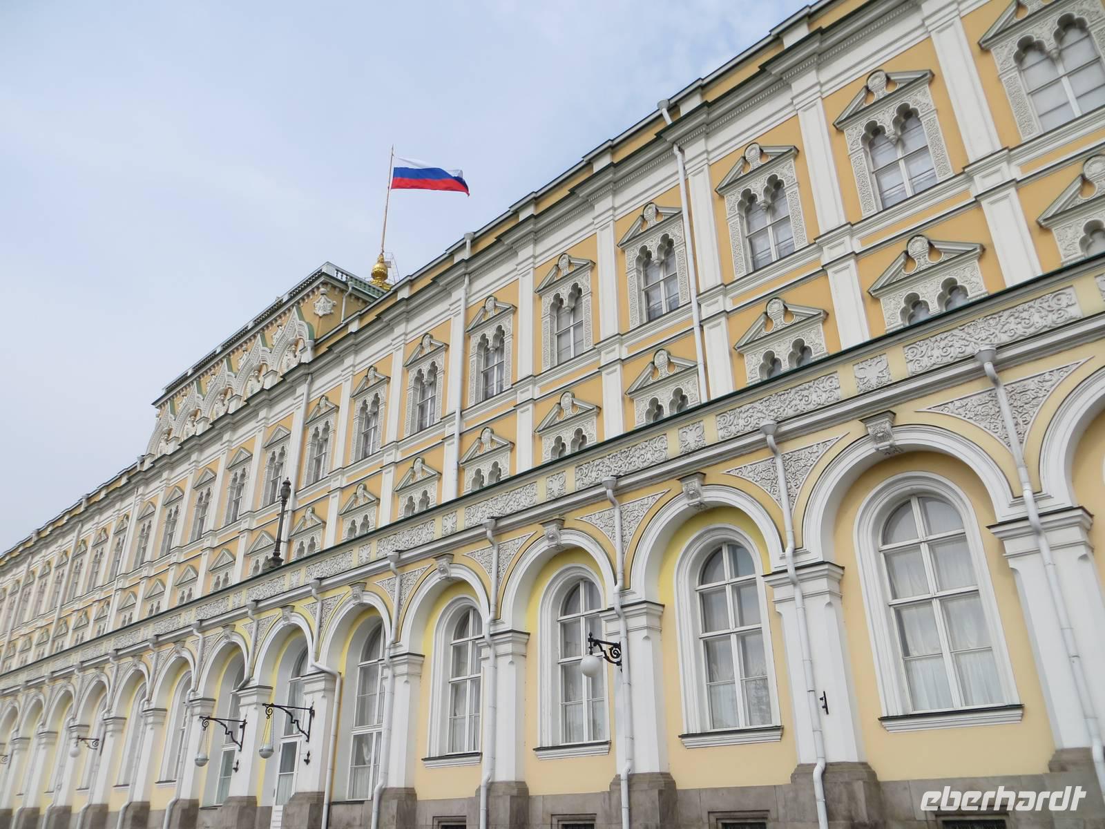 Das Zentrum des geistlichen und weltlichen Zentrums Russland war über Jahrhunderte und ist es seit 1919 wieder: der Moskauer Kreml. Mittlerweile gut gesteuert - oder es gibt nicht mehr so viele Touristen wie einst ? - kommt man recht organisiert in den Kreml. Ein erster Stopp am ehemaligen Konresspalasts, insbesondere aber um den Aufbau der Anlage, einst mit 27 Kirchen und Klöstern, zu erklären. So stehen heute Arsenalgebäude und aktive Regierungsgebäude im Norden des Geländes.