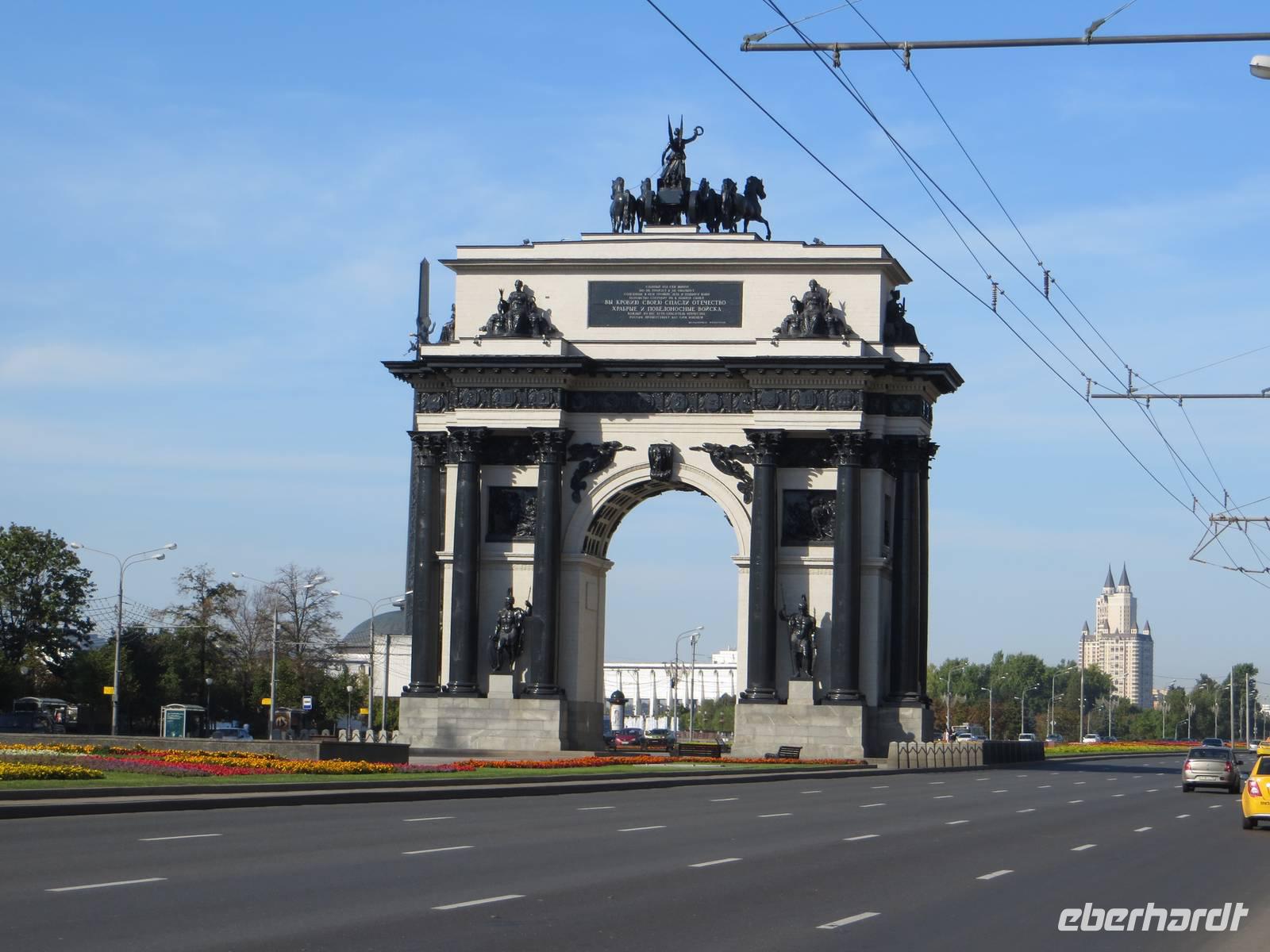 Der Dresdner Heimflug mit Aeroflot startet am Nachmittag. So hatten wir ein wenig Zeit für einen zusätzlichen Stopp auf dem Kutusow-Prospekt am Panorama-Museum Borodino. Ein Rundbild erinnert hier an die Schlacht von Borodino bei Moskau, wo die Russen die Armee Napoleons im Jahre 1812 schlugen. Am Park des Sieges vorbei fuhren wir auf die Rubljowskoe Chaussee, seit achtzig Jahren Verbindungsstraße zwischen dem Stadtzentrum und den Villengebieten, einst und heute der obersten Staatsführung, heute auch manches Oligarchen.