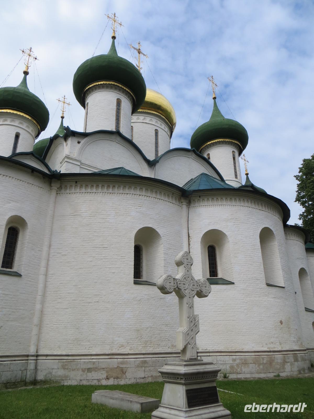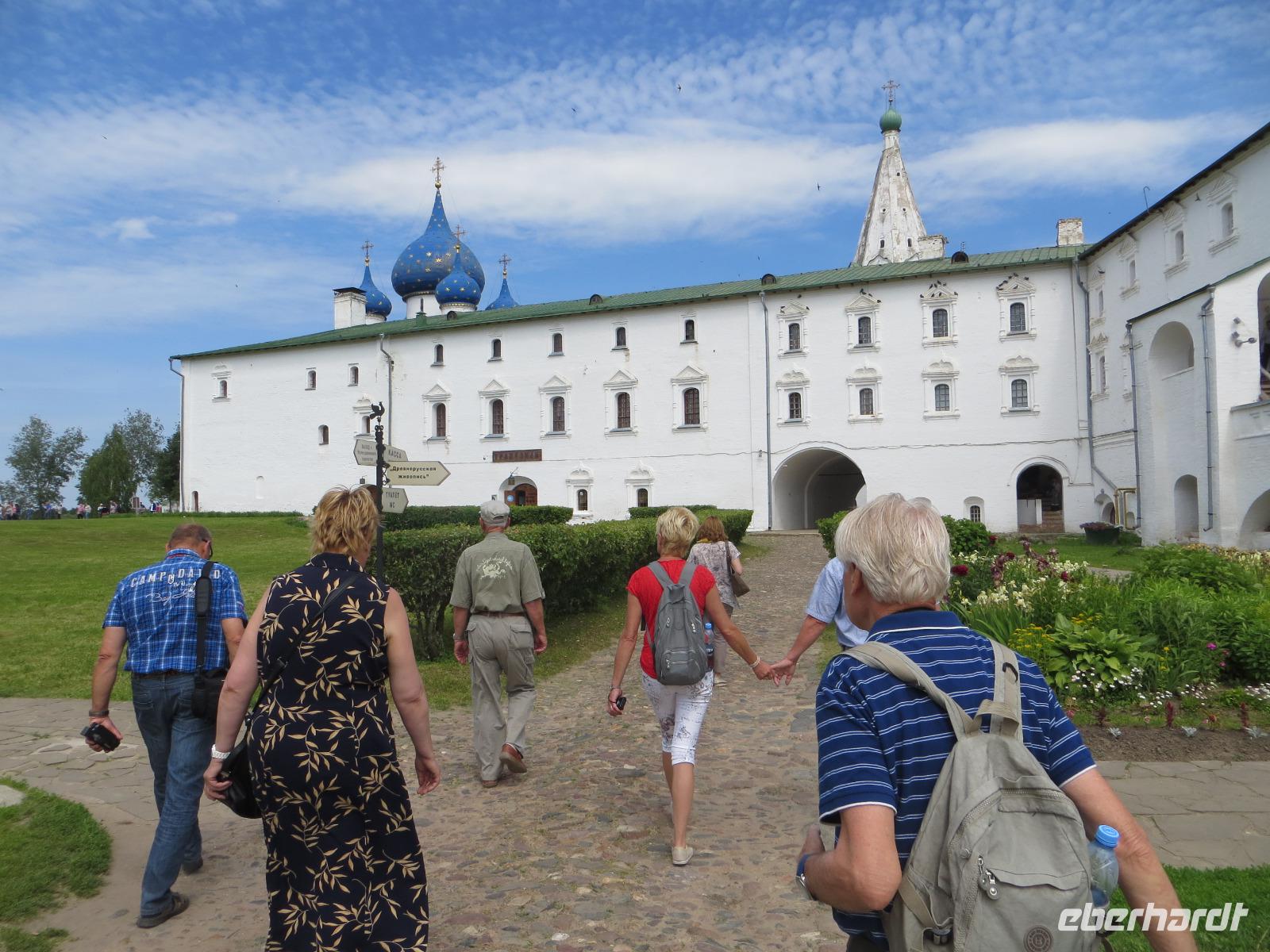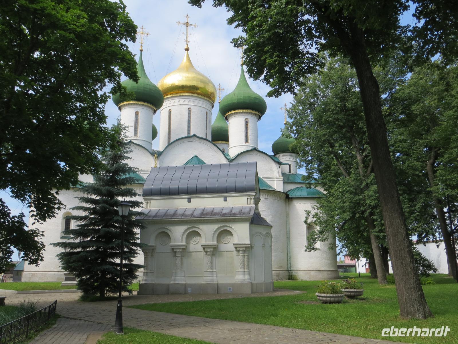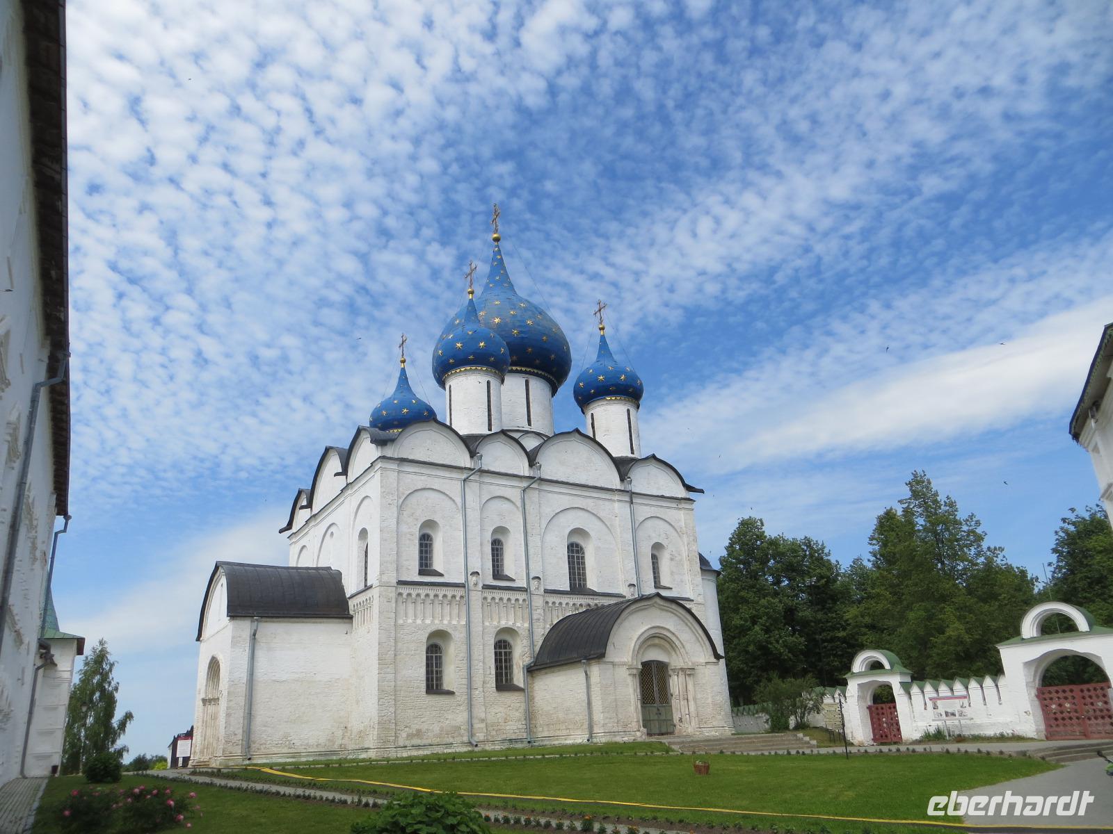 Von hier ist der Kreml von Susdal gut fußläufig zu erreichen. Im Kreml befindet sich die Kathedrale der Geburt der Gottesmutter (blaue Kuppeln künden vom Bezug zu Maria) mit ikonenhafter Kupfer-Gold-Tür. Am Nachmittag hatten alle Gäste individuell Zeit für Erkundungen zu den 33 Kirchspitzen und Kuppeln von Susdal.