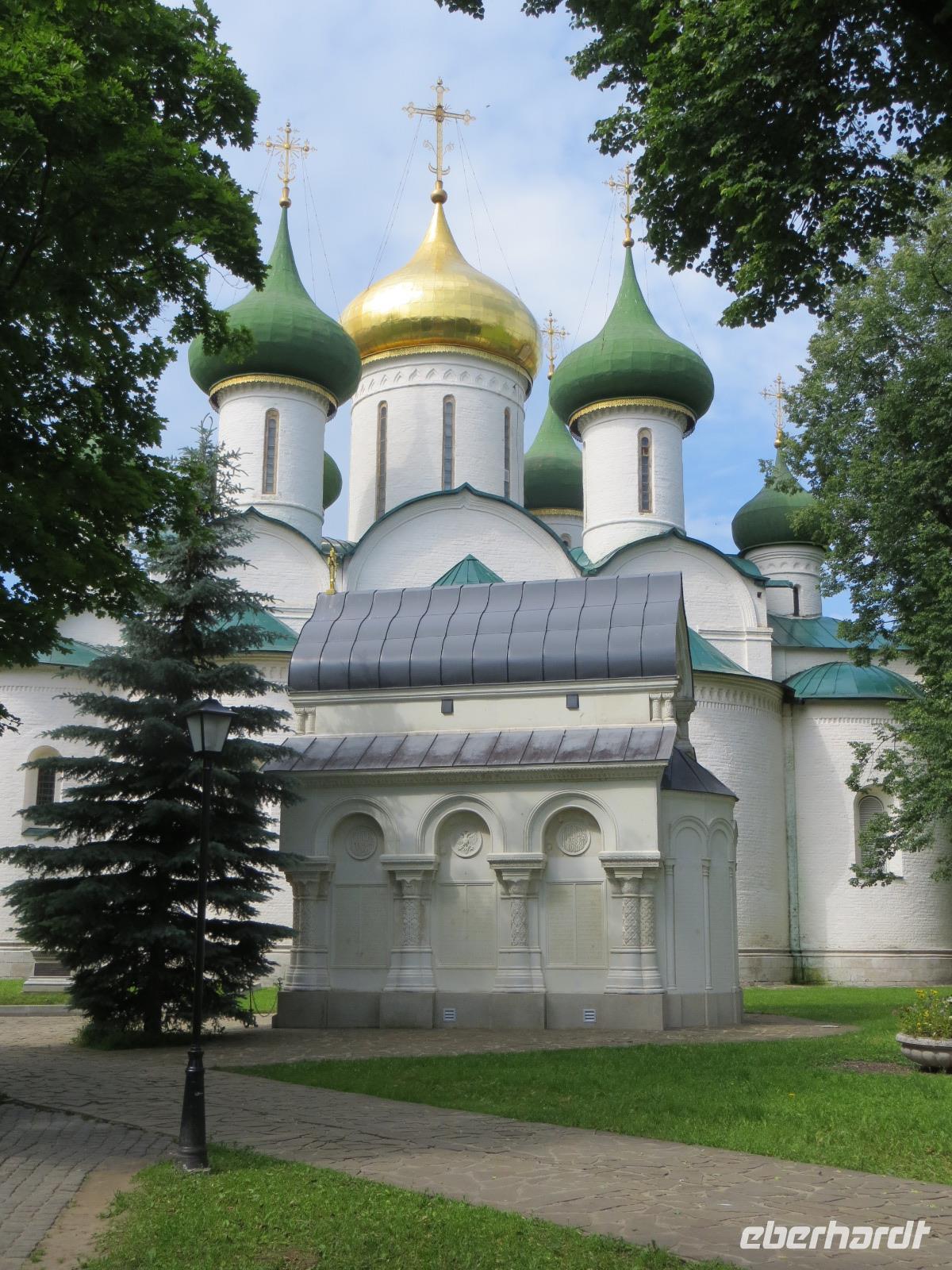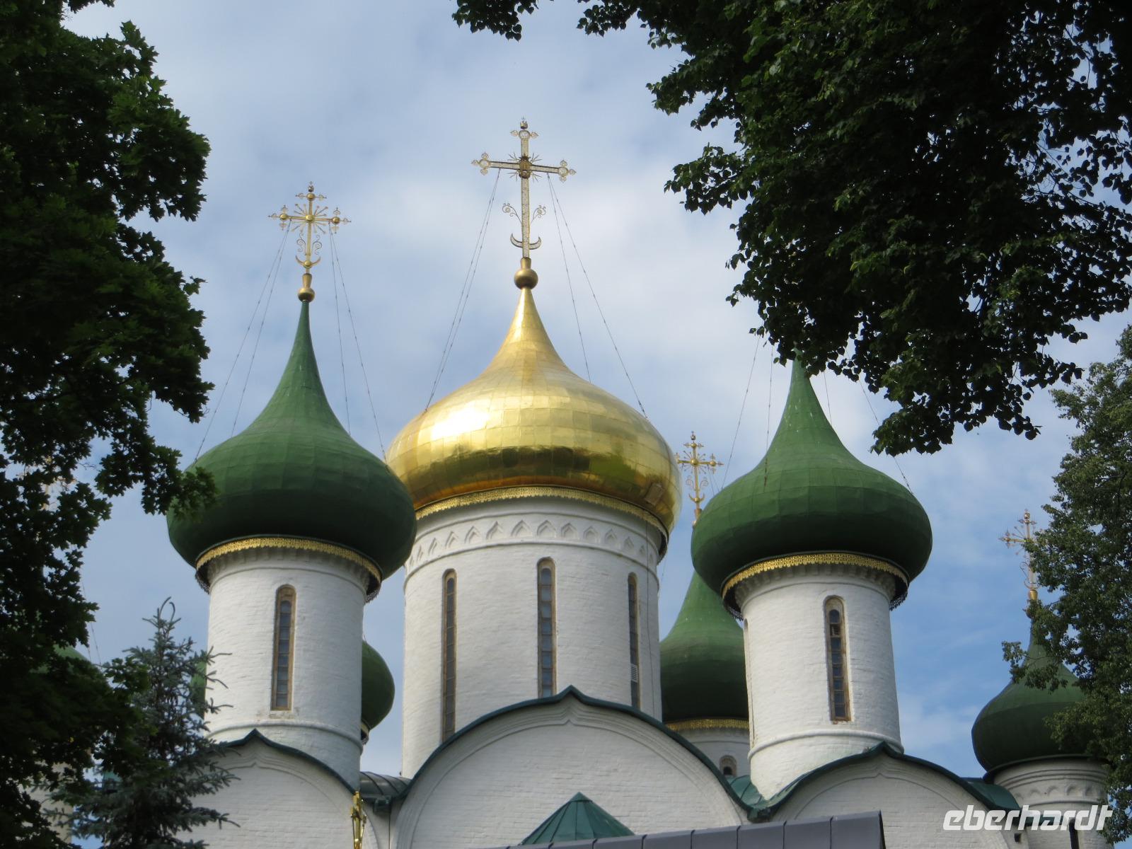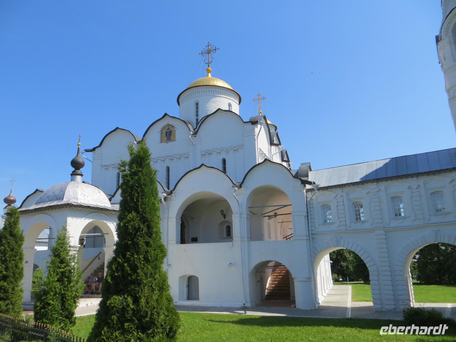 Von hier ist der Kreml von Susdal gut fußläufig zu erreichen. Im Kreml befindet sich die Kathedrale der Geburt der Gottesmutter (blaue Kuppeln künden vom Bezug zu Maria) mit ikonenhafter Kupfer-Gold-Tür. Am Nachmittag hatten alle Gäste individuell Zeit für Erkundungen zu den 33 Kirchspitzen und Kuppeln von Susdal.