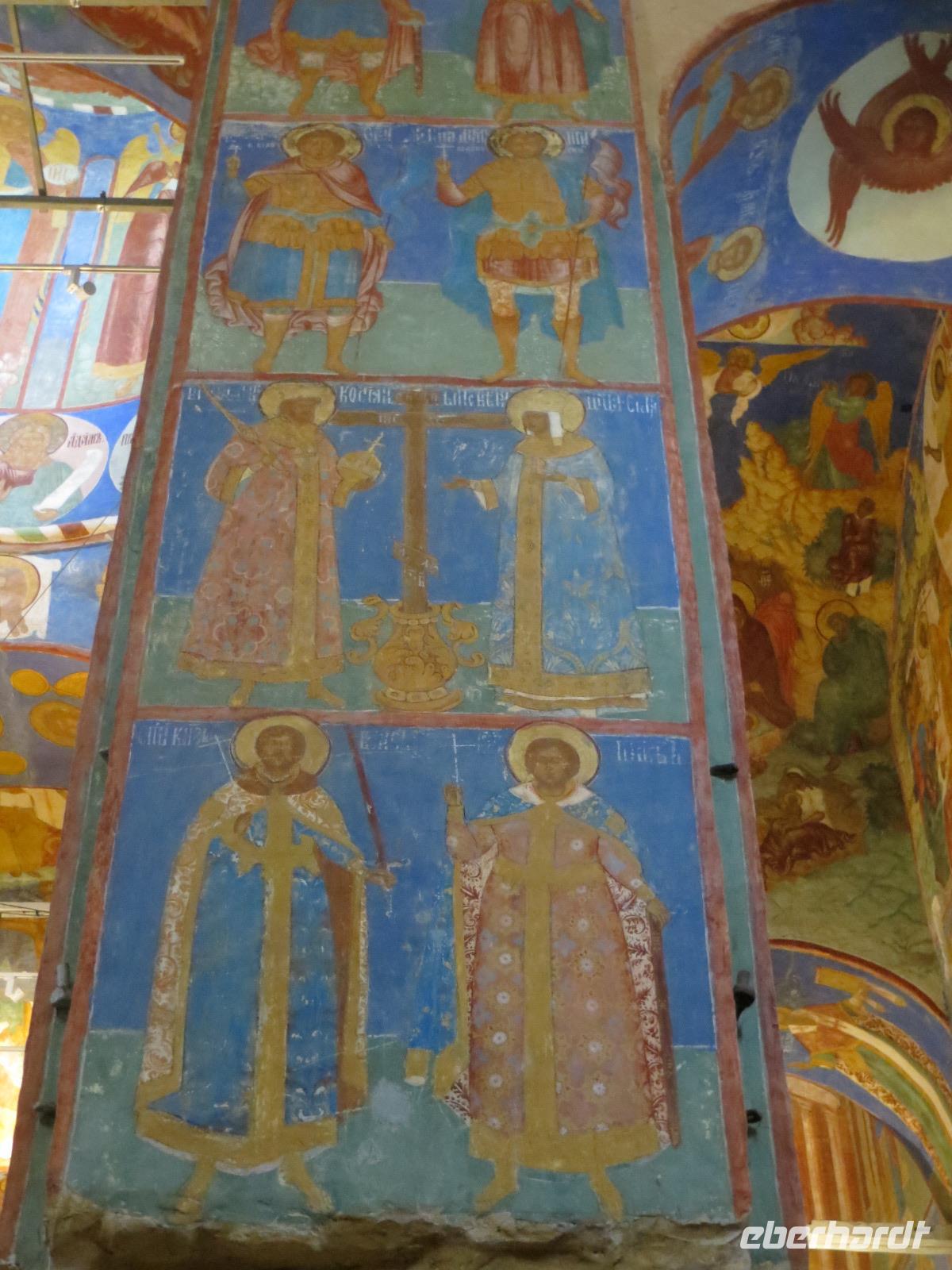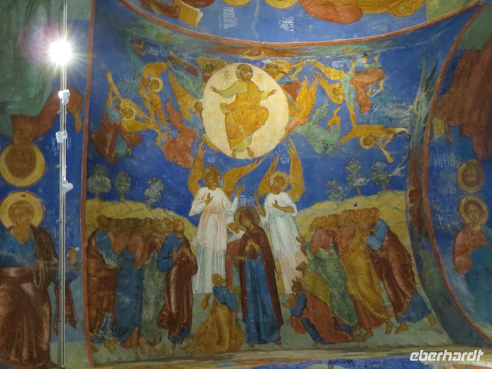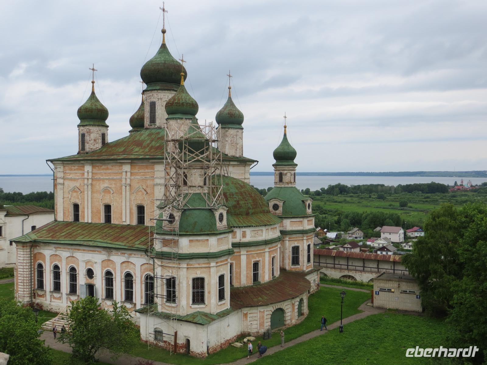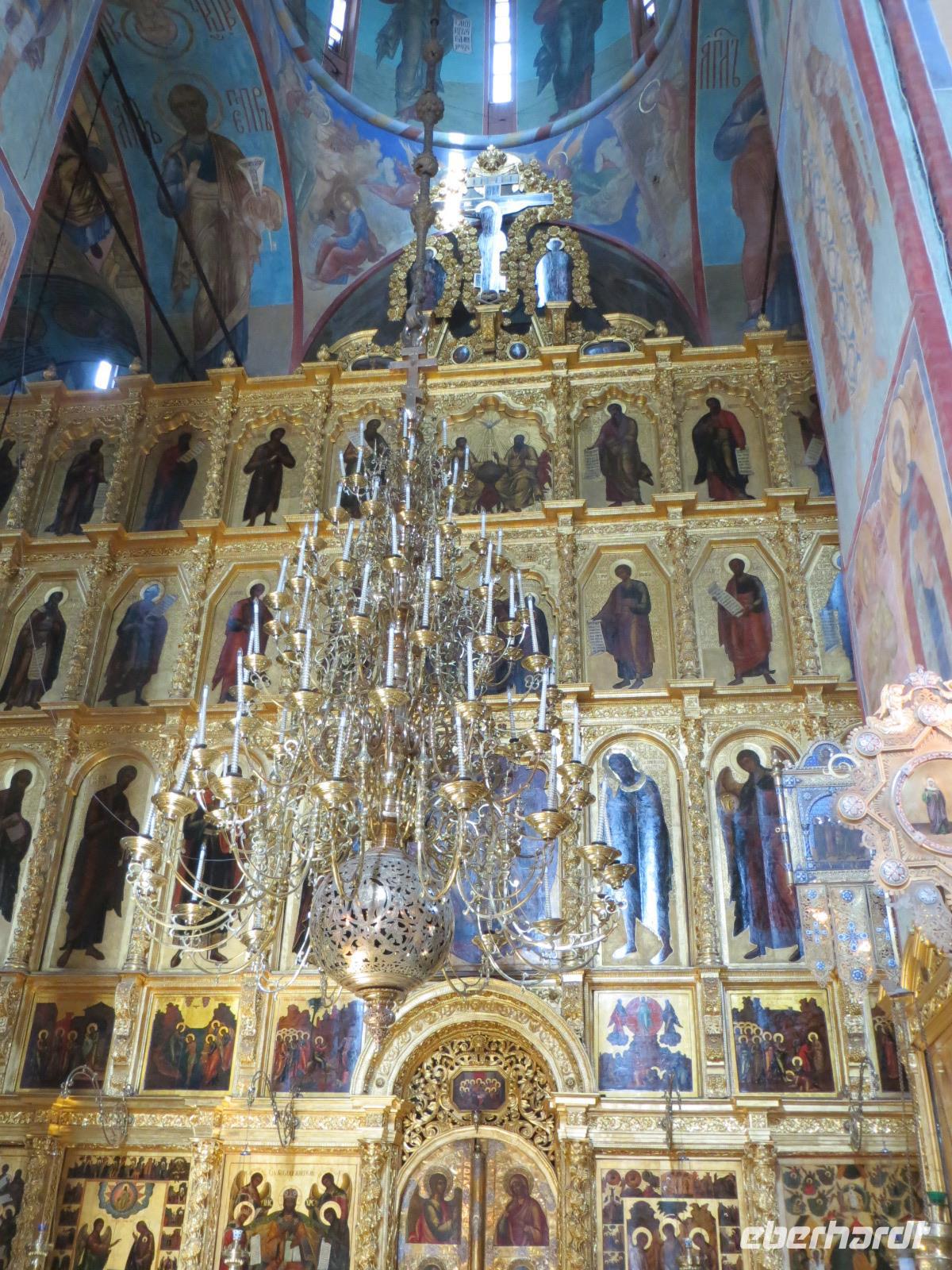Von hier ist der Kreml von Susdal gut fußläufig zu erreichen. Im Kreml befindet sich die Kathedrale der Geburt der Gottesmutter (blaue Kuppeln künden vom Bezug zu Maria) mit ikonenhafter Kupfer-Gold-Tür. Am Nachmittag hatten alle Gäste individuell Zeit für Erkundungen zu den 33 Kirchspitzen und Kuppeln von Susdal.