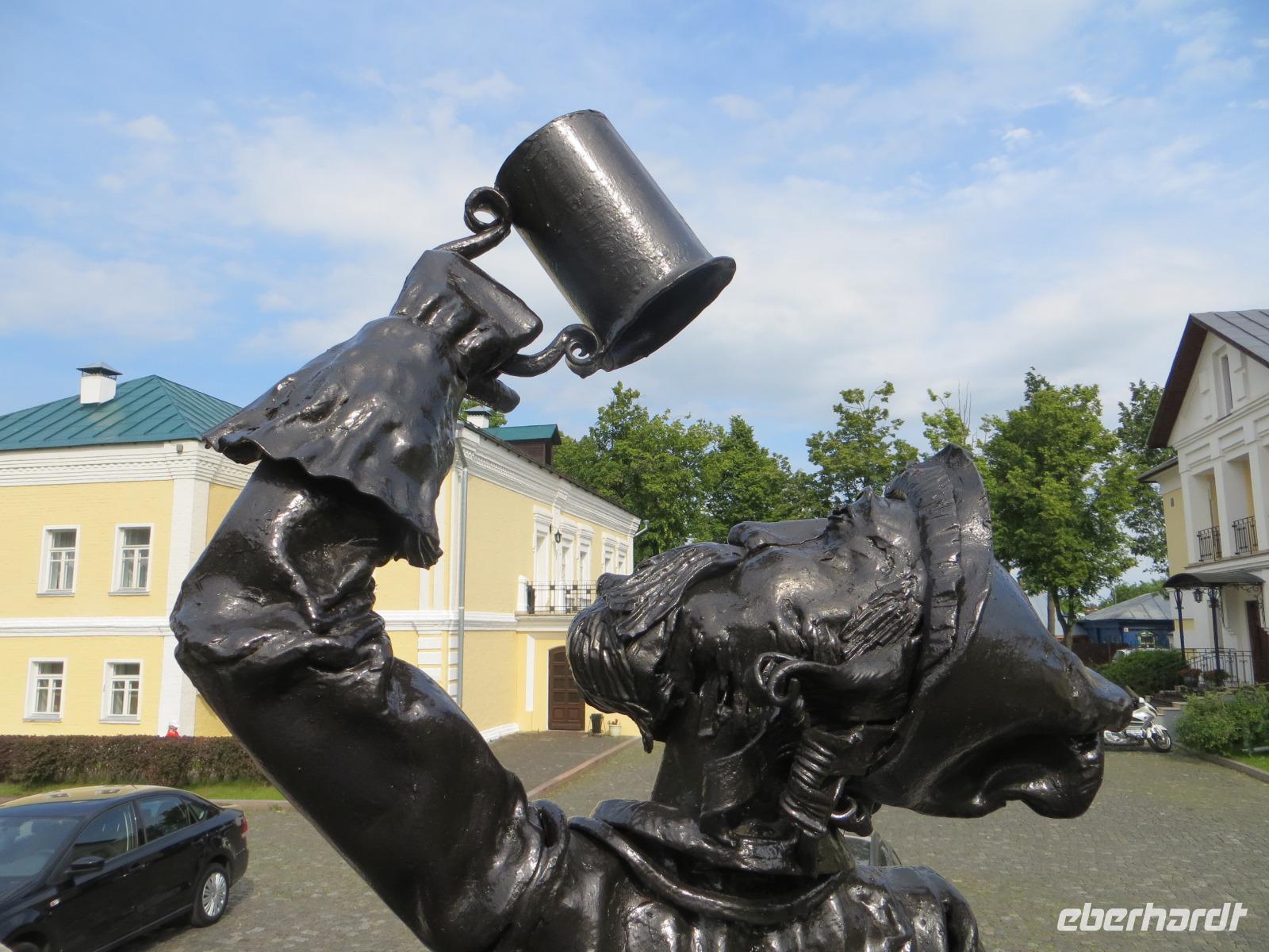 Pünktlich trafen wir in einer Traktir, einem russischen Wirtshaus, ein, um nach Wodka-Auflockerung Köstlichkeiten der russischen Küche zu genießen: frisches Gemüse, Zander in Aspik, Pelmeni, Blini mit rotem Kaviar, Schaschlik, Eis und alles mit Tee (oder Kaffee) nach russischer Sitte zu beenden. Dabei begeisternde Folklore, die zum Mitmachen einlud.