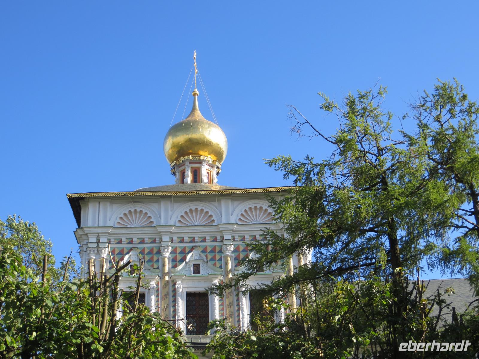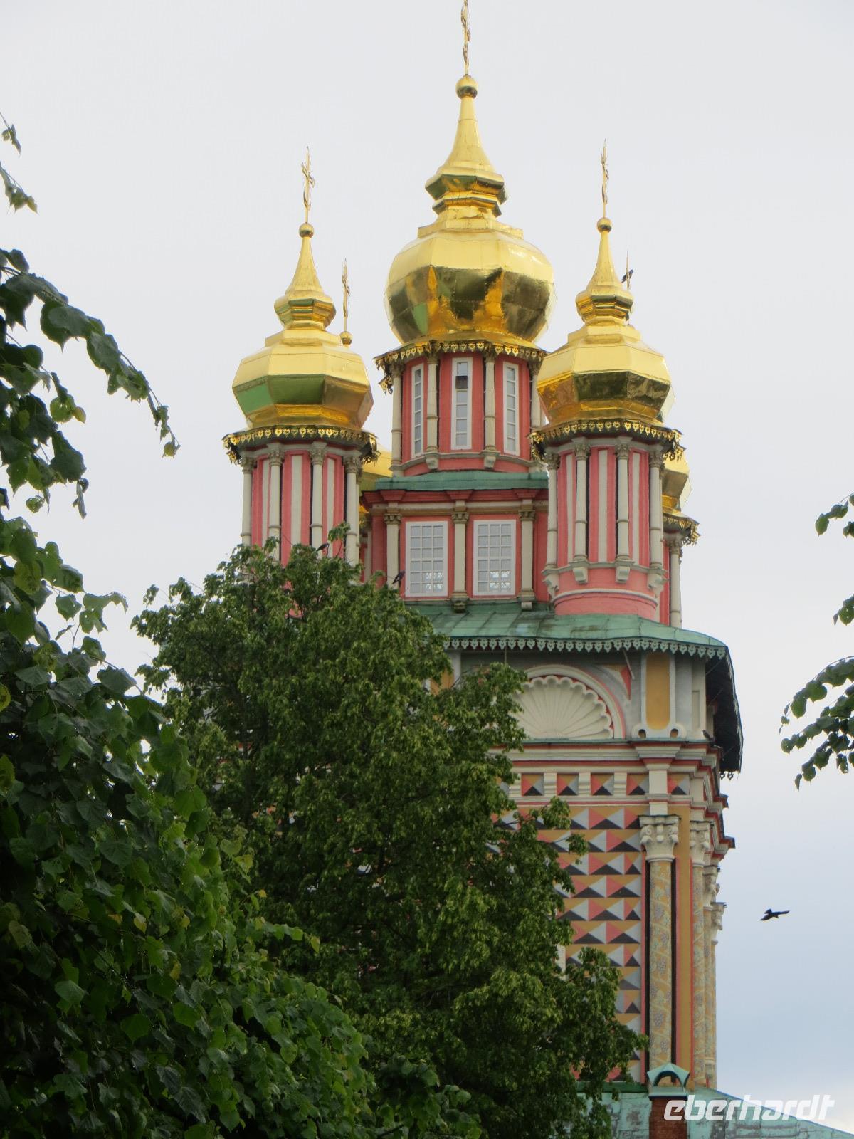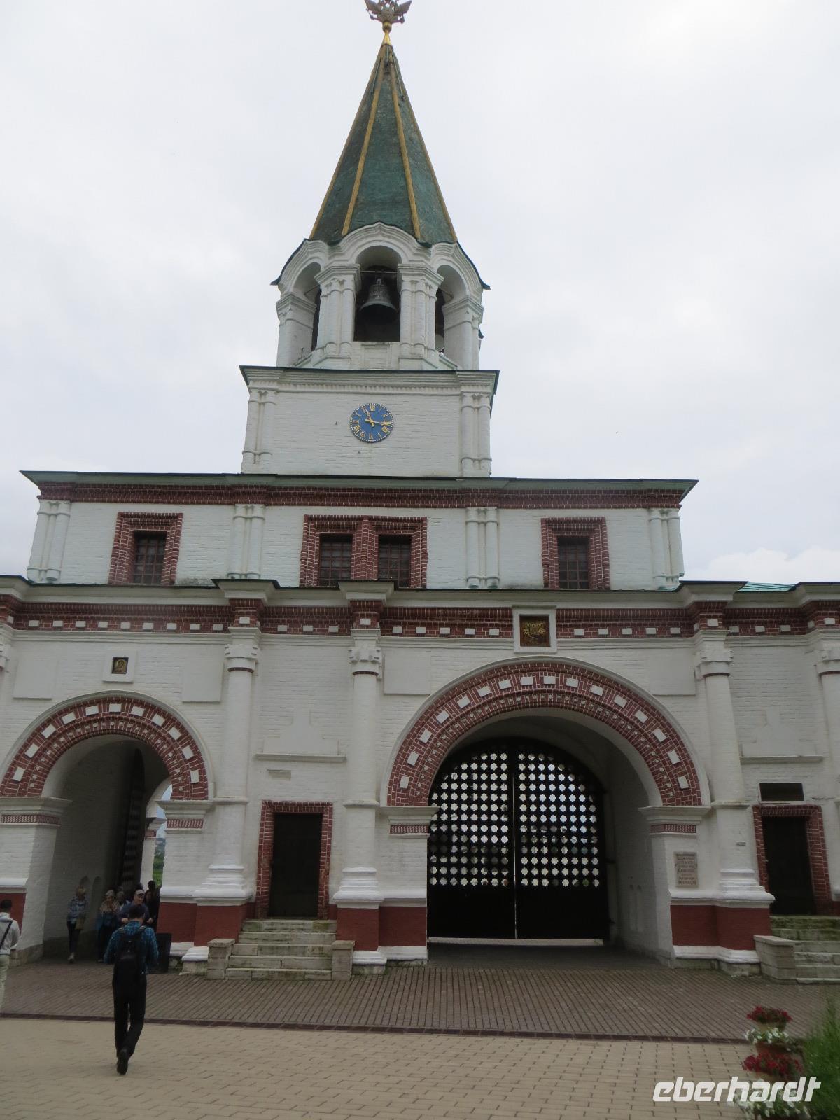 Vom Hotel benötigt man am Sonntag nur eine halbe Stunde, um mit dem Bus nach Kolomenskoje zu gelangen. Im alten Museumsteil, inmitten von Eichenbäumen befinden sich Relikte der Zarenanwesens aus dem 17. Jahrhundert, darunter eine der bedeutendsten weißen Zeltdachkirchen Russlands, die Christi-Himmelfahrt-Kirche. Inmitten von Wiesen leuchten die Gebäude selbst bei grauem Himmel. Wir bummelten hinunter zur Moskwa und hinauf zur Kirche Johannes des Täufers. In weitem Bogen erreichten wir - nicht geplant - den nachgebauten Zarenpalast von Alexej I., des Zarenvaters von Peter I.: es mutet ein wenig wie Disneyland an. Zur frühen Nachmittagszeit erreichten wir in den Stadtteil Zaryzino, also den Ort der Zarin. In grüner Landschaft zwischen Seen lies Katarina II. ein Schloss errichten, das sie selbst nie bewohnte. Sie selbst und deren Nachfolger rissen es teilweise ab, ließen es neu erbauen, dann kam einer der russisch-osmanischen Kriege und das Geld war alle ... jedenfalls wurde es nie fertig und war noch 2004 von zahlreichen Birken begrünt. Ab 2006 erfolgte der Wiederaufbau der Schlossanlagen, sowie eine großzügige Gestaltung des Parks. Zunächst besuchten wir das Brothaus, in dem sich gerade eine argentinische Organiostin für ein Konzert vorbereite. Im Schloss vermitteln zwei prächtige Säle und zahlreiche Ausstellungsräume ein Bild vom zaristischen Leben im 18. und 19. Jahrhundert.