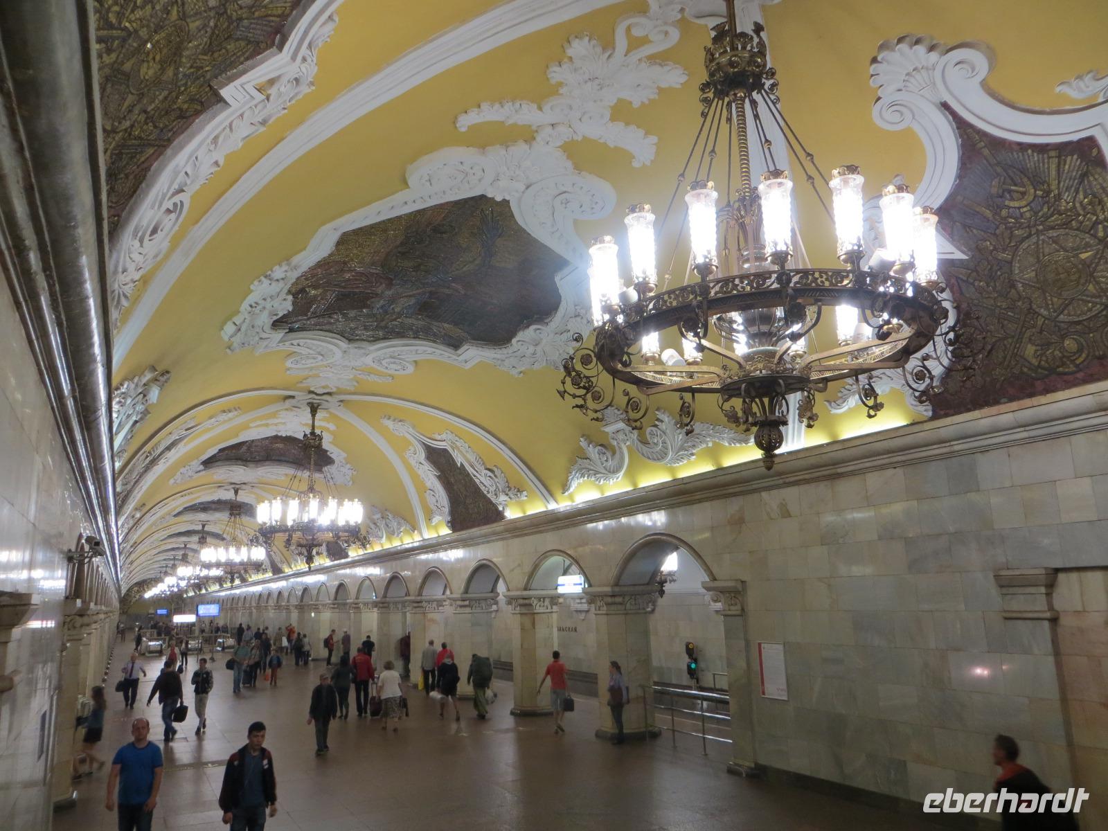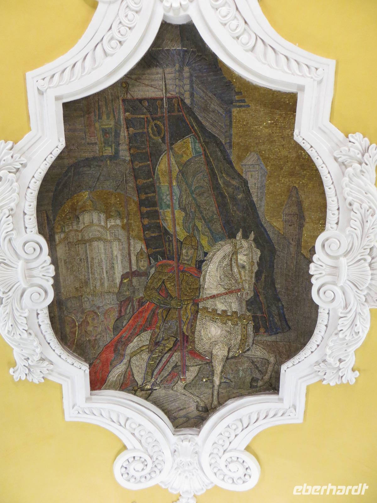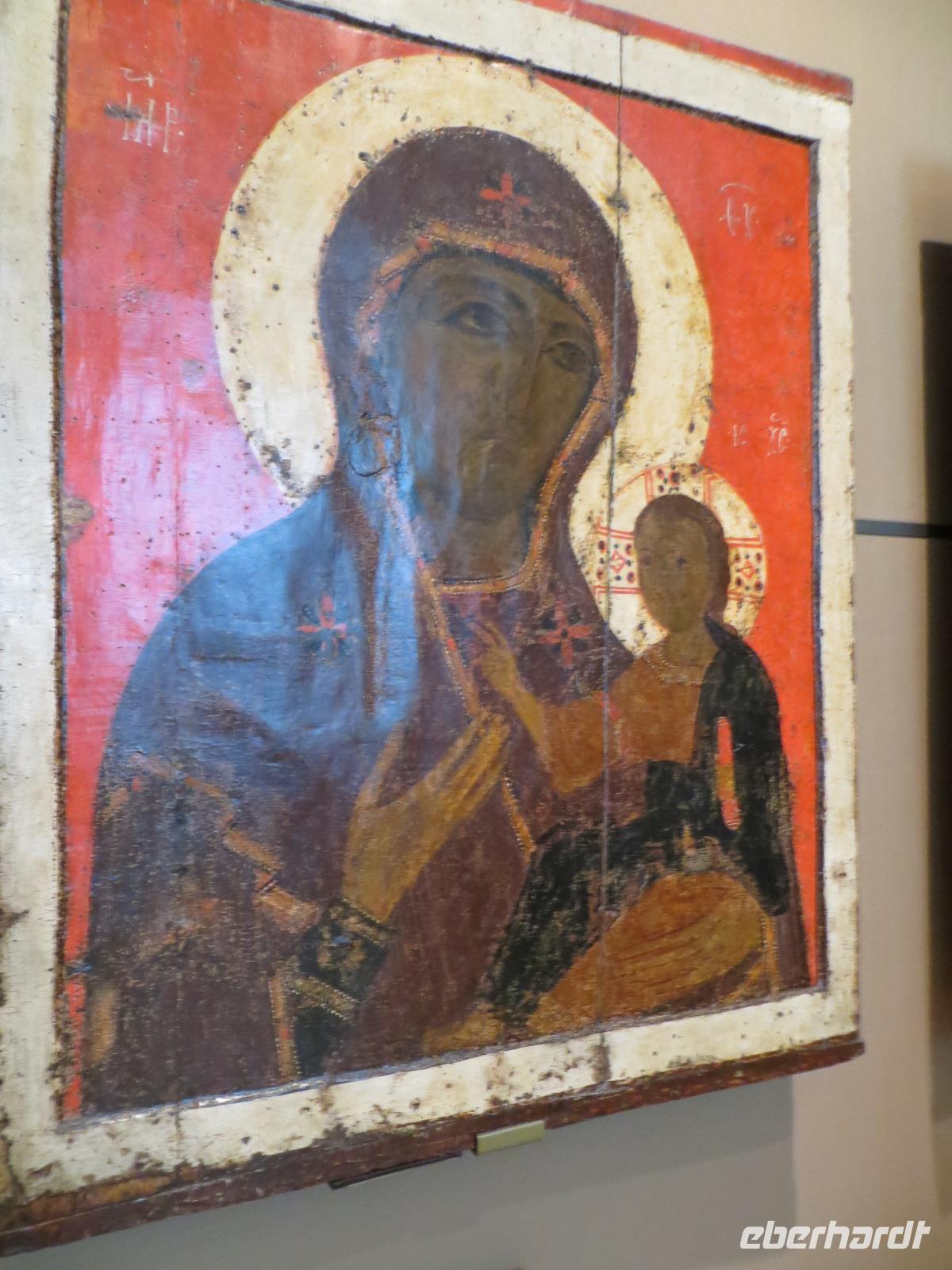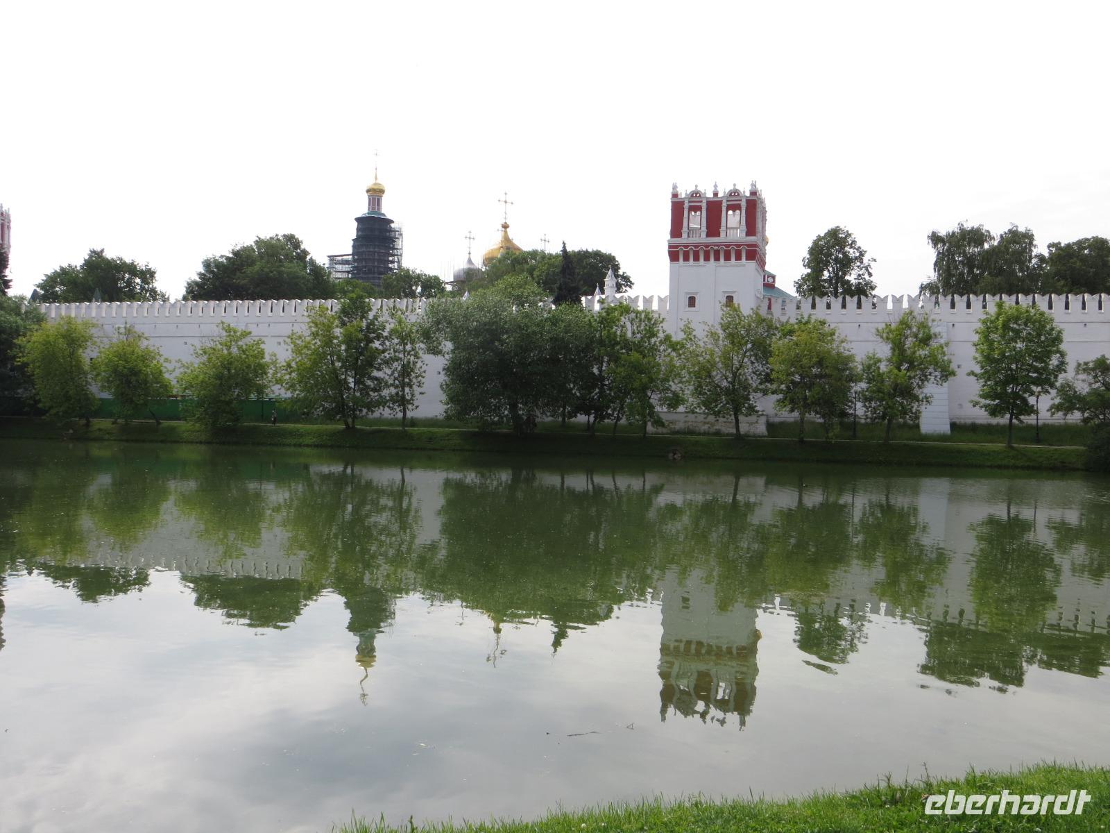 Pünktlich 9:00 Uhr ging es mit dem Bus über den 3. Ring Richtung Neujungfrauenkloster. Traditionell machten wir einen ersten Fotostopp am Teich westlich des Neujungfrauenklosters und „watschelten" mit den Bronzeenten, die Barbara Bush den Kindern der Sowjetunion (!) schenkte. Im Neujungfrauenkloster wird mächtig gewerkelt; die Smolensker Kathedrale ist geschlossen und nach ausreichend Kathedralen und Klöstern auf dem Goldenen Ring war das Interesse für ein weiteres auch nicht so üppig. So besichtigten wir ein Stück des Prominetenfriedhofes mit Grabstellen von Jelzin, Gorbatschova, Lebed, Tupolew, Chrustschov, Shalygin, Gromyko und schlossen mit einigen bekannten Künstlern ab - Regenwolken kündigten sich an. Während der Fahrt zum Puschkinmuseum ergoss es sich wieder heftig: unser Fahrer drehte eine Ehrenrunde um die Christi-Erlöser-Kirche mit wieder tausenden anstehenden Pilgrims. Da am Montag Museen-Ruhetag ist, besuchten wir am Dienstag das Puschkin-Museum: viele Repliken, einige Originale der Malerei (aber, da ist man als Dresdner schon recht anspruchsvoll) und der Schatz, den Heinrich Schliemann in Troja ausgrub und Priamos zuschrieb. Wer hat diese Kunst erbeutet? - die Osmanen von den Trojanern, die Deutschen von den Osmanen, die Sowjets von den Deutschen, die Russen von den Sowjets ---- nehmen wir es doch einfach als Welterbe (auch ohne Award) und behüten und bestaunen es! Nach unserem abendlichen Aufenthalt auf dem Roten Platz wollten wir natürlich auch am Tage darüber schreiten. Vom Karl-Marx-Denkmal mit Blick auf das Bolschoi-Theater bummelten wir durch Kitai Gorod, die Nikolska zum Roten Platz und diesen in ganzer Länge entlang zum Brückenkopf. Mit dem Bus ab hier sind es eigentlich nur noch Sekunden nach Samoskworetschie zur Tretjakow-Galerie. Die Galerie präsentiert eine umfangreiche Sammlung alter Ikonen, die bereits im 13. Jahrhundert und unter Rubljow zu Beginn des 15. Jahrhunderts entstanden. Nach viel Kirchengeschichte auf der Reise blieb uns ausreichend Zeit, um die bedeutendsten Gemälde der russischen Maler des 19. Jahrhunderts und der russischen Impressionisten zu betrachten. Das war dann russische Geschichte in Bildern: Iwan der Schreckliche, die Strelitzen, die russisch-osmanischen Kriege, die Altgläubigen; aber auch hervorragende Porträts und Landschaftsmalerei.