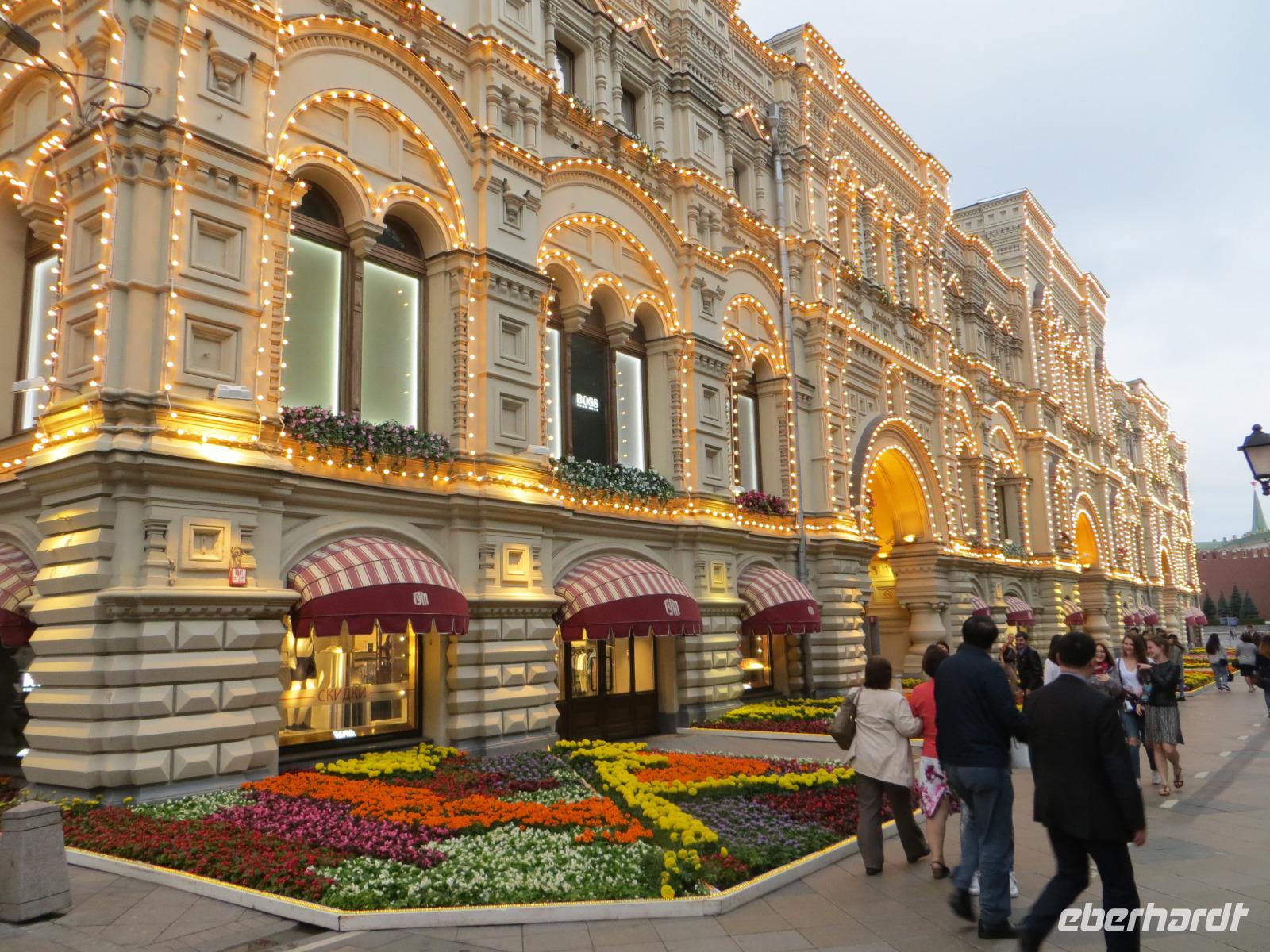 Die Mitte Juni bereits durchgeführte 12-tägige Reise nach Moskau und dem Goldenen Ring, die Wolgastädte einschließt, hatte in diesem Jahr wohl doch zahlreiche Interessen so stark begeistert, dass für die 8-tägige Reise nur wenige Gäste buchten. Dennoch wollten wir von Eberhardt Travel auch diesen Gästen einen Hauch Russland bieten. So reisten fünf Gäste ab Dresden und zwei aus Berlin nach Moskau. Die Dresdner Gäste flogen mit einem modernen russischen Flugzeug, einer Suchoi 95 B. Bereits beim Landeanflug über die Seen nordwestlich von Moskau bekamen die links im Flugzeug Sitzenden einen ersten Sichtkontakt zu Moskau. Vom Flughafen Scheremetjewo ging es dann durch Chimki und weiter auf der der Leningrader (!)- Chaussee bis zum 3. Stadtring, auf diesem dann in zügiger Fahrt an Moskau City vorbei in den Süden der Stadt. Das ehemalige Hotel Katarina Park heißt nunmehr Sunflower Park und hat damit einen weiteren Besitzerwechsel - nachdem es früher ein Holiday Inn war - hinter sich. Ausdruck der wirtschaftlichen Veränderungen in Russland oder Austausch der Millionäre?