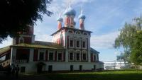 Nachmittags erreichten wir Uglitsch und unser Stadtrundgang startete. Uglitsch befindet sich am Oberlauf der Wolga und liegt ca. 200 km nördlich von Moskau. Mit ca. 320.000 Einwohner ist sie eine der ältesten Städte Russlands. An der Stelle, wo 1591 der jüngste Sohn Iwan des Schrecklichen (Dimitri) ermordet wurde, errichtete man zu seinem Gedenken die Dimitri-Blut-Kirche. Zusammen mit der Christi Verklärungs-Kathedrale eines der bekanntesten Bauwerke Uglitschs.