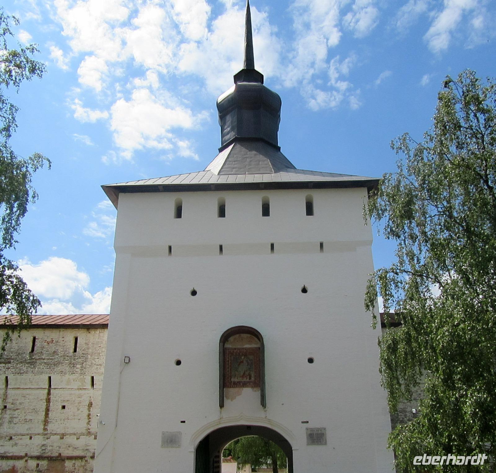 Mit 5 Hektar Fläche ist es die größte Klosteranlage Russlands, wurde im Jahre 1397 gegründet und liegt gemeinsam mit der gleichnamigen Stadt um 2 Seen. Der Eingang nennt sich das heilige Tor und von dort aus gelangt man zur Kathedrale mit den drei weißen Kuppeln. Kurz besuchen wir auch eine Stickereiausstellung und sehen typisch handgefertige Sachen aus der hiesigen Region. Anschließend führt unser Weg zum Siwerskoje See, welcher der größere von beiden ist und bis zu 27 Meter Tiefe misst. Im Winter ist dieser See zugefroren und ab Ende April erstrahlt er mitten im Grünen und bis zur Stadt Kirillow in seiner vollen Schönheit. Einer Sage nach, sollte man in dem See baden und man wirkt mindestens 10 Jahre jünger. Unsere letzte Stadion auf dem Klostergelände ist das Klostermuseum, welches 1924 eröffnet wurde und eine Mischung aus Geschichte, Architektur und History darstellt. Wir sehen unter anderem Handstickereien aus dem 17. Jahrhundert, sowie eine einmalige Ikonenausstellung.