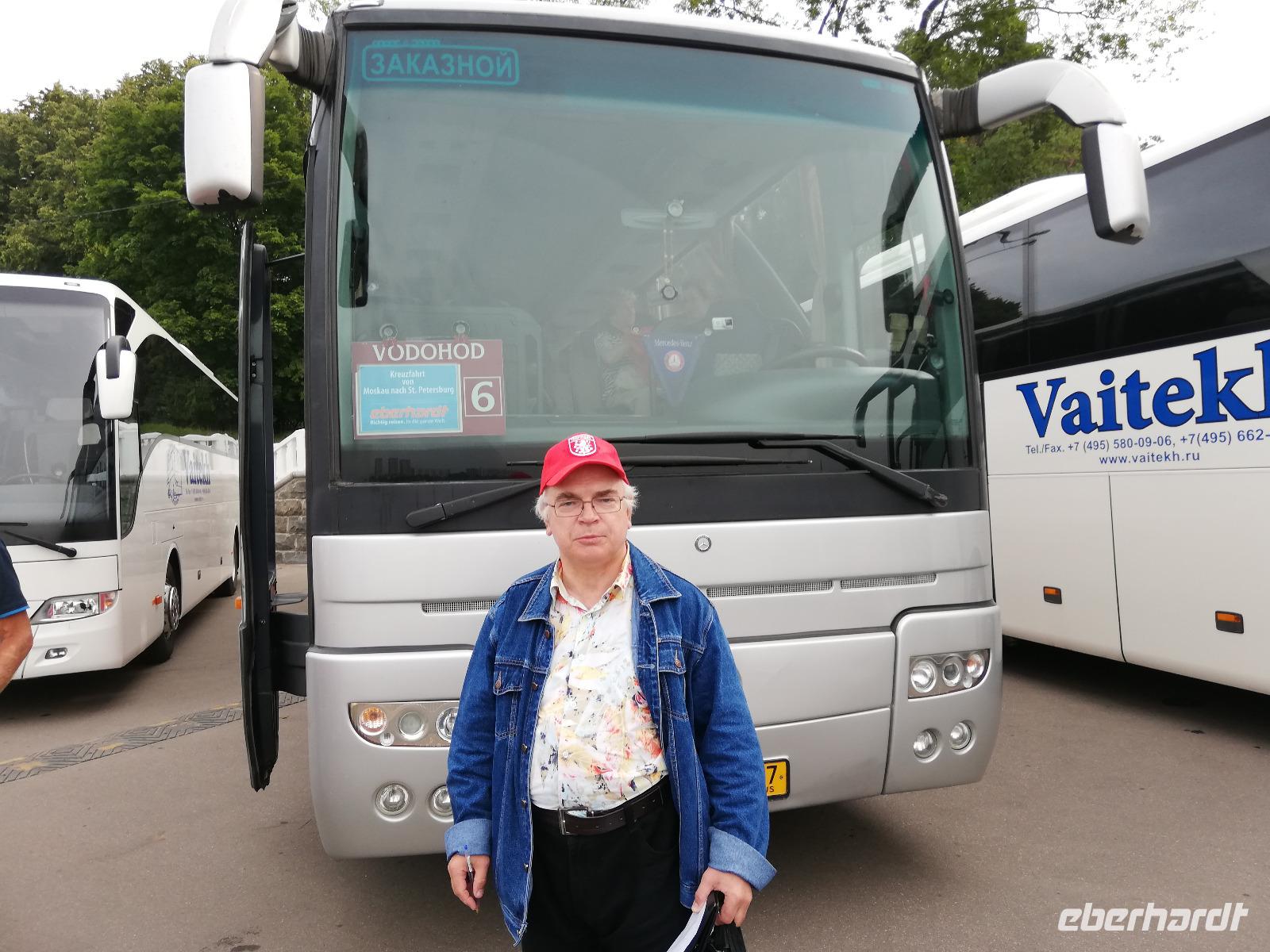 Gegen 6.50 Uhr trifft sich unsere Gruppe auf den Flughafen in Dresden. Wir fliegen mit der Lufthansa nach Frankfurt und begrüßen hier weitere Gäste, die aus Leipzig und direkt nach Frankfurt gekommen sind. 13.45 Uhr starten wir. Nach einem entspannten Flug landen wir 17.40 Uhr in Moskau, Flughafen Domodedovo. Nach einer Passkontrolle gelangen wir schnell an unsere Koffer und werden auch schon von unserer Bordreiseleiterin Walarija begrüßt. Nach dem wir unsere Uhren eine Stunde vorgestellt haben kann unsere Busfahrt durch Moskau beginnen. Nach reichlich 2 Stunden haben wir unsere Schiffsanlegestelle mit dem Bus erreicht. Während unsere Koffer auf unseren Kabinen gebracht werden, nehme wir unser erstes Abendessen im Restaurant Newa ein. Die russische Küche verspricht gutes Essen auch für die nächsten Tage. Nach einem kurzen Blick in die Kabinen treffen wir uns zu einer Informationsstunde, in der wir die Bordreiseleiterin Anastasia kennenlernen, die uns in den nächsten Tagen zur Seite stehen wird. Nach der Information zu fakultativen Ausflügen fallen wir zufrieden und müde in die Betten. (Coje)