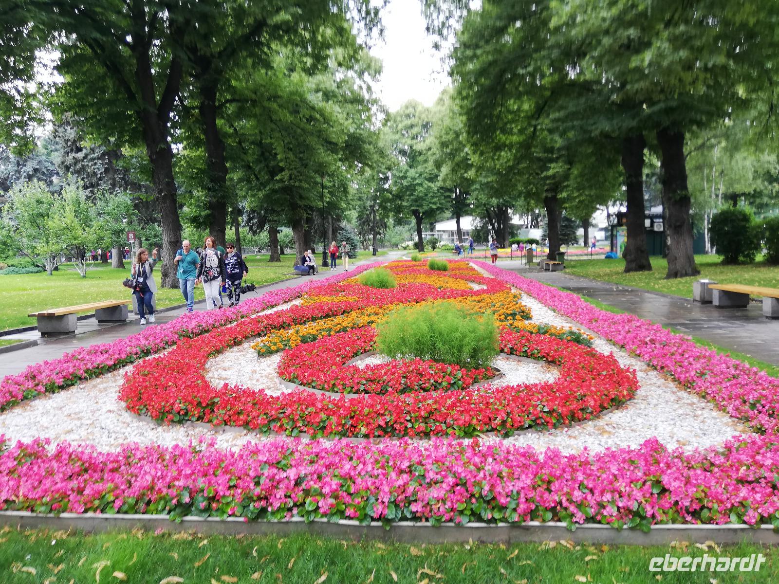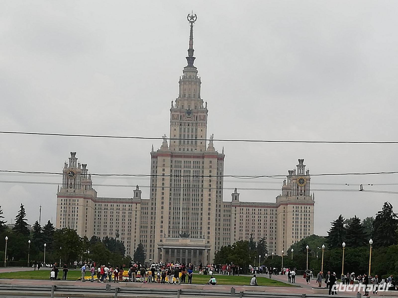 Nach einem guten Frühstück beginnen wir mit unserer Stadtrundfahrt mit dem örtlichen Stadtführer Alexander. Wir erkennen sofort, dass er diese Stadt liebt und er uns viele Informationen in guter deutscher Sprache geben kann. Wir fahren Richtung Centrum erfahren einiges über die Autobahnringe in der Stadt, über den Bau einer Neuen Metro, wir sehen z.B. den Triumpfpalast, das Dynamo Stadium und vieles mehr. Am Park Novodevichy Prudy am Novodevichy Convent planen wir eine Fotopause . Auf den Bildern wird nicht nur das Kloster festgehalten, sondern auch die aufgestellten Enten. Einen weiteren Stopp planen wir auf Plattform der 70 Meter hohen Sperlingsberge. Von hieraus haben wir eine herrliche Sicht auf die Stadt und dem Hauptgebäude der Lomonossow-Universität. Die größte Universität Russlands in der gegenwärtig ca. 40 000 Studenten ihr Studium absolvieren.