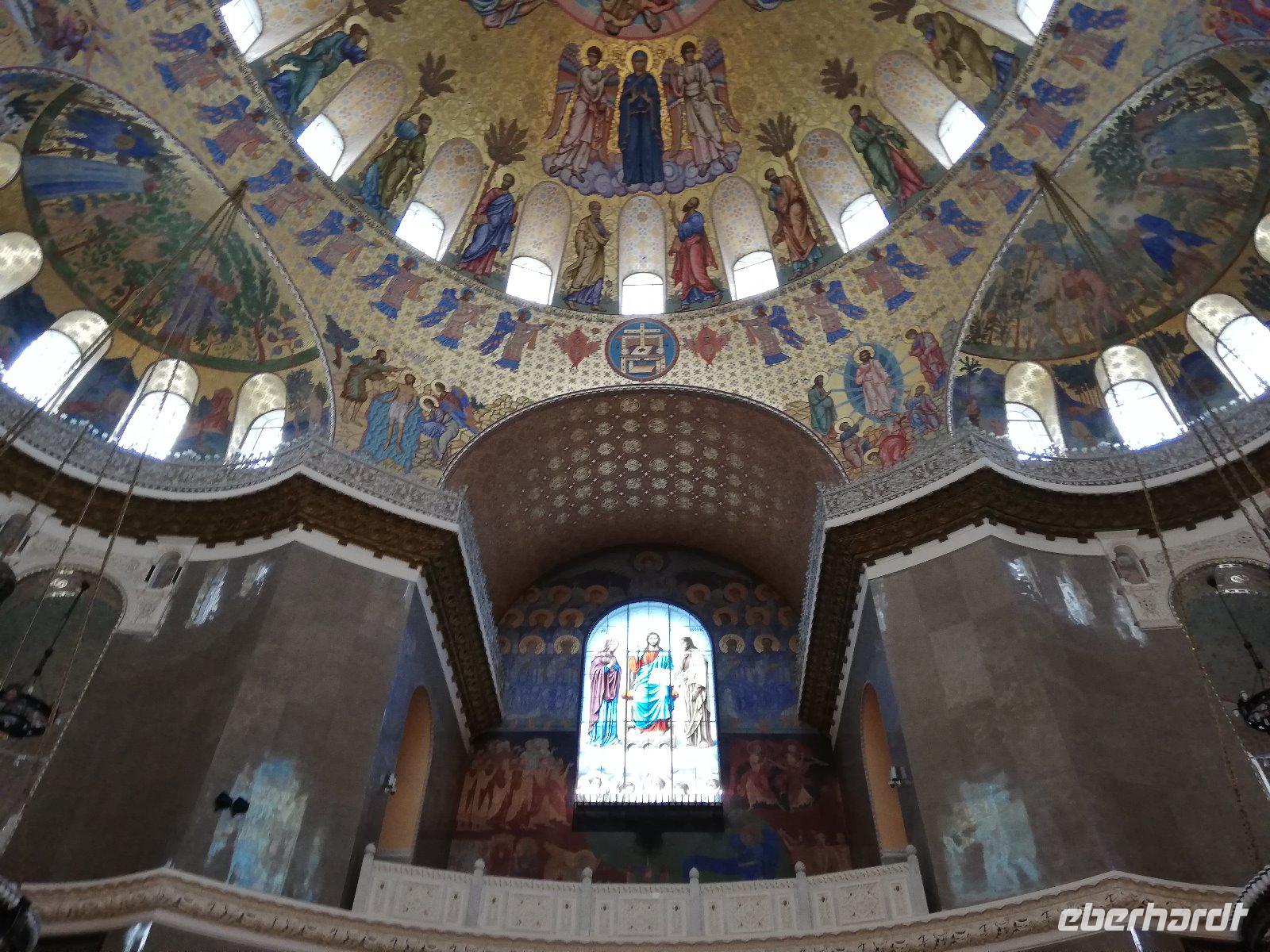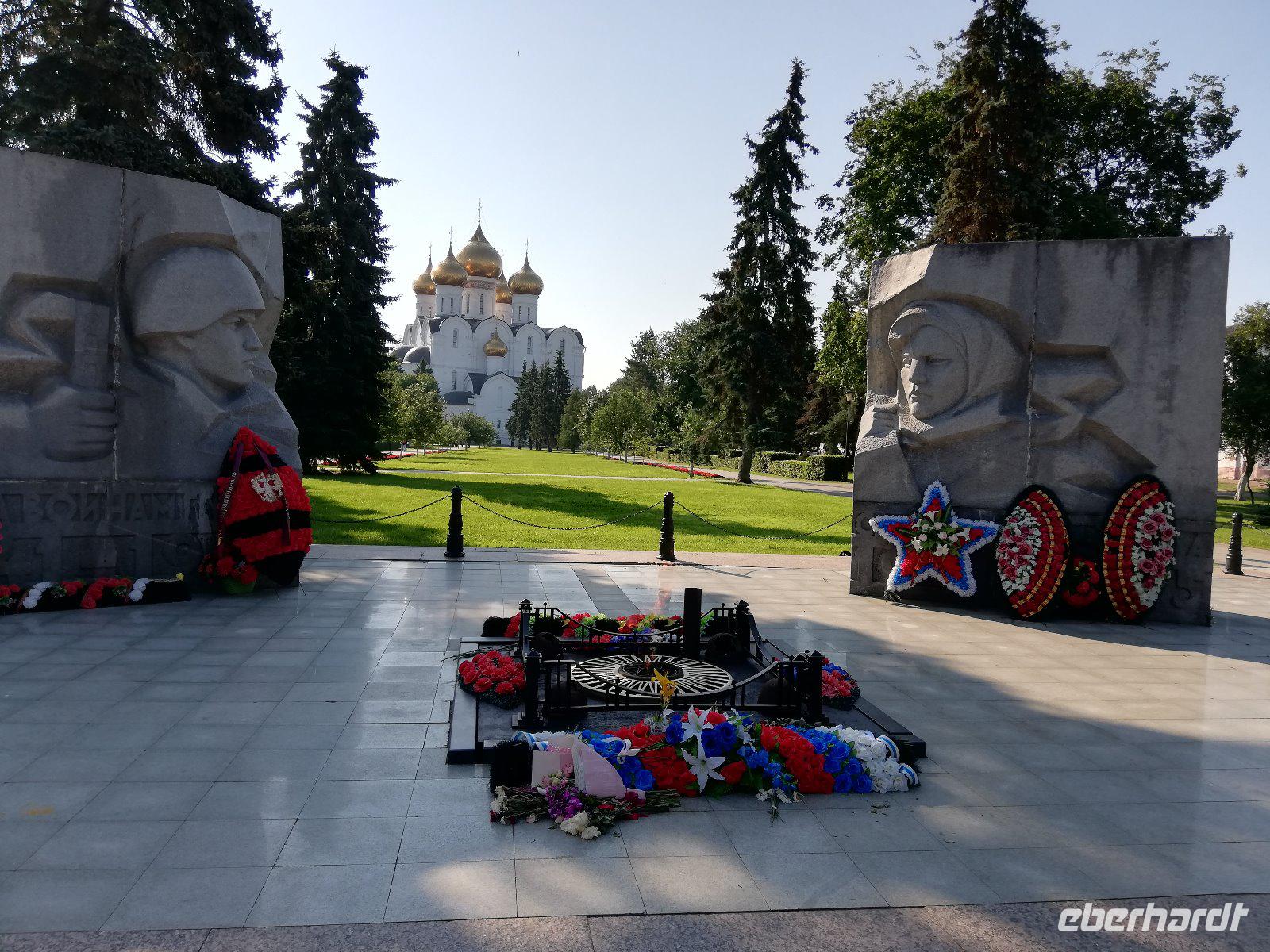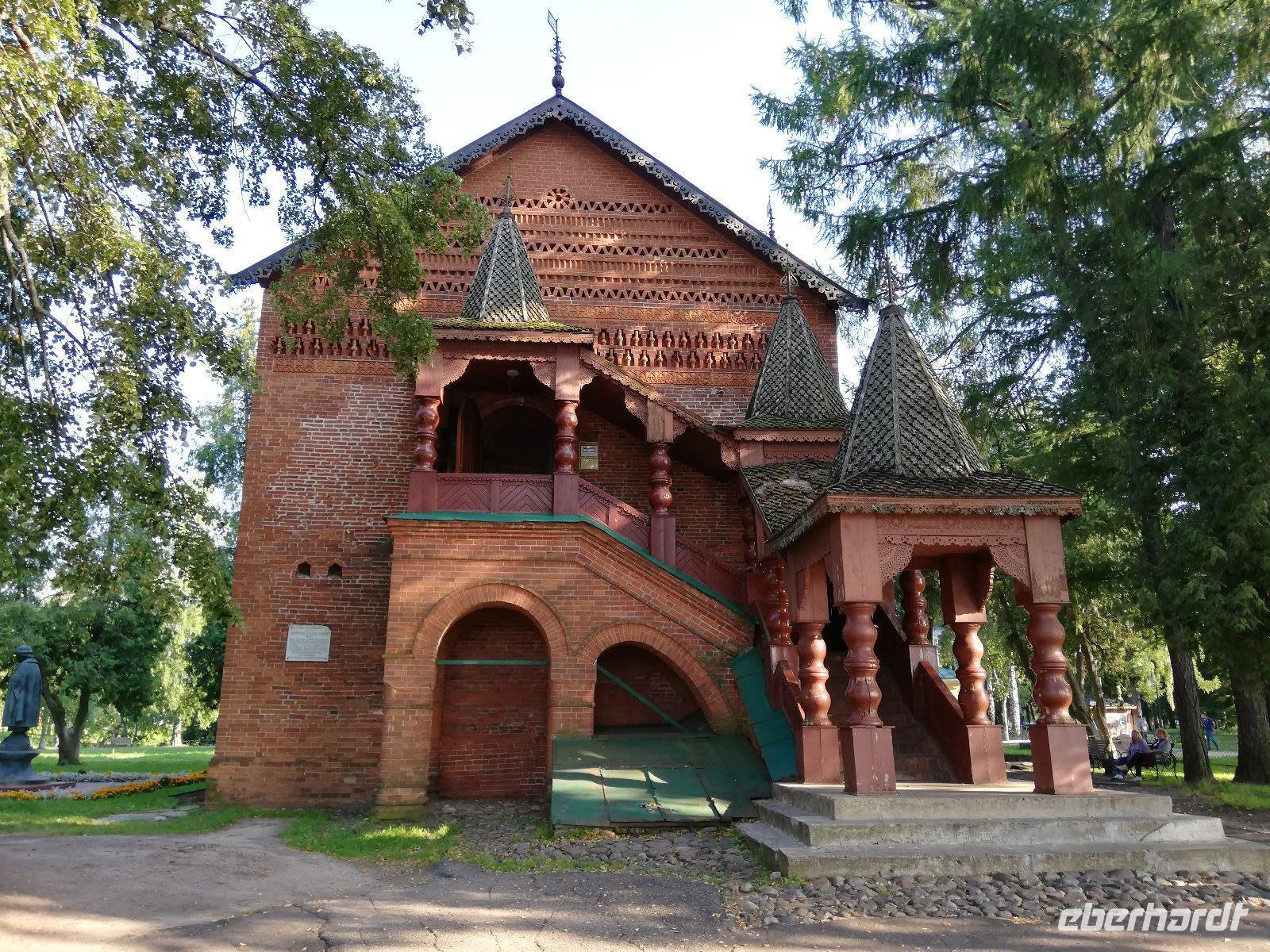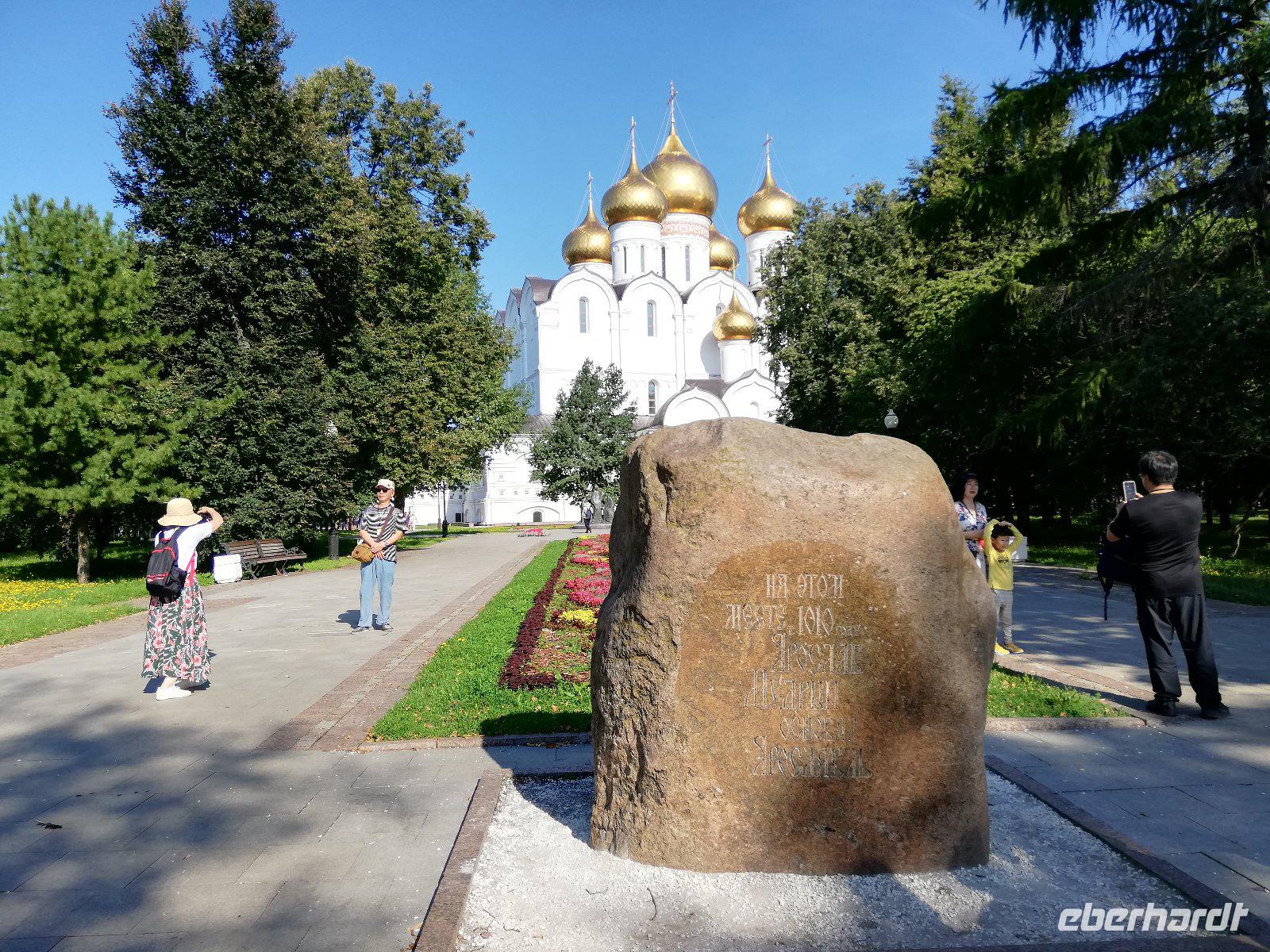 Zeitig beginnen wir unsere Stadtführung. Bereits 08.00 wartet unser Bus mit dem örtl. Reiseleiter auf uns und wir fahren in das Zentrum der rund 600 Tausend Einwohnern. Auf der Fahrt erfahren wir von der Geschichte der Stadt, die reich an Sagen und historischen Ereignissen ist. Sie beginnt mit einer slawischen Ansiedlung Medweshij Ugol (Bärenwinkel) die im 9.und 10. Jahrhundert an diesem Ort lag. Zur damaligen Zeit war in dieser Gegend der Kult des Heiligen Tieres (Bären) weit verbreitet. Fürst Jaroslawl der Weise unterwarf 1010 die Bewohner dieser Ansiedlung und gab ihn seinen Namen. Die Legende besagt, dass die Einwohner dieser Ansiedlung einen Bären auf den Fürsten hetzten , der diesen besiegte und mit einer Axt erschlagen konnte. Heute sehen wir auf dem Stadtwappen den Bären mit einer Streitaxt. In der Stadt halten wie am ewigen Feuer Memorial. Im Hintergrund sehen wir bereits die 2004 wieder erbaute Maria-Entschlafens Kathedrale.Die wir nach einem kurzen Spaziergang besuchen. Nach dem Besuch der Kirche laufen wir entlang der Wolgapromenade und haben einen schönen Blick auf den Strelkapark und der Mündung des Flusses Kotorosl in die Wolga. Anschließend besuchen wir die Nikolauskirche bevor wir zum ehemaligen Palast des Gouverneurs kommen. Olga, die Tochter des Gouverneurs ist zufällig zu Hause und führt uns durch das Haus. Sie erklärt uns einige Gemälde, überrascht uns auch mit einem Blumenstrauß und der Erklärung zur Bedeutung der einzelnen Blüten. Ein Jeder von uns hatte am Ende der Erläuterung eine Blume in der Hand. Sehr unterhaltsam.Anschließend führt Sie uns noch einmal in den Ballsaal und es ertönt Musik. Ein Trio spielt auf und wir sehen die unterschiedlichen Tänze. Beginnend mit einem Walzer hat ein mancher von uns Lust zu tanzen. Diese Erwartung erfüllt sich. Ob Frau oder Mann, es durfte getanzt werden und die Freude darüber stand allen Tänzern im Gesicht geschrieben. Nach einer herzlichen Verabschiedung steigen wir wieder in unseren Bus und fahren zur Prophet-Eliga Kirche, die durch ihre Innenbemalung bekannt ist. Wir haben noch etwas Freizeit und während es einige in die Markthalle zieht, besuchen andere die Prophet-Eliga Kirche.